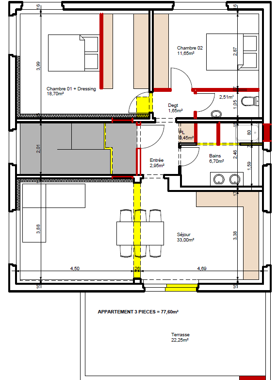 Le bien se compose de 3 appartements (un 2 pièces de 45 m2 et deux 3 pièces de 77 et 53 m2) et d'un comble à aménager en studio.