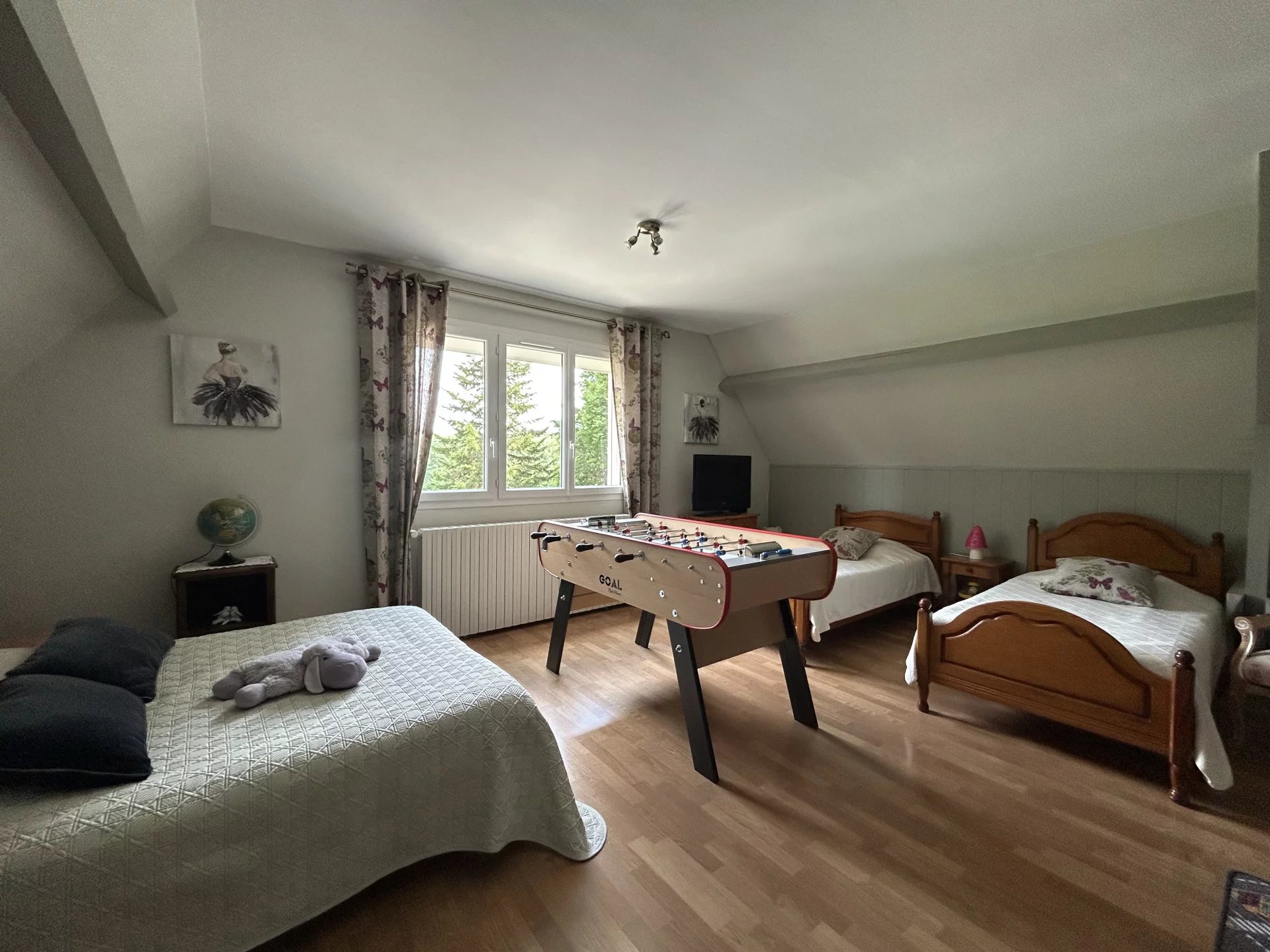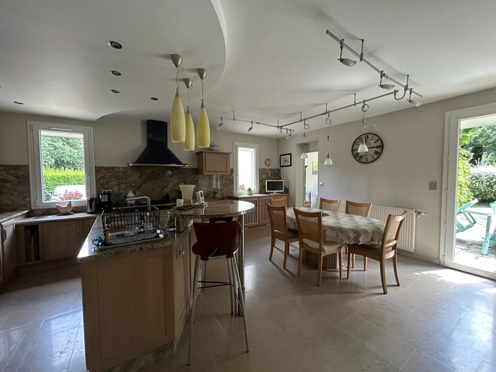 A seulement 10 kilomètres de Mortagne-au-Perche, maison construite en 1980 totalement restaurée, offrant sur deux niveaux et 250 m²: au rez-de-chaussée, une entrée, un grand salon salle à manger cathédrale (50 m²), une cuisine indépendante et équipée, une véranda, une buanderie/ lingerie, un couloir desservant deux chambres, une salle de bains avec douche et deux wc séparés; à l'étage, un palier desservant trois chambres, une salle de bains et un wc. Cette propriété dispose également d'une dépendance avec un double garage, un atelier, un préau, un bûcher et un parc arboré et clos d'un hectare.