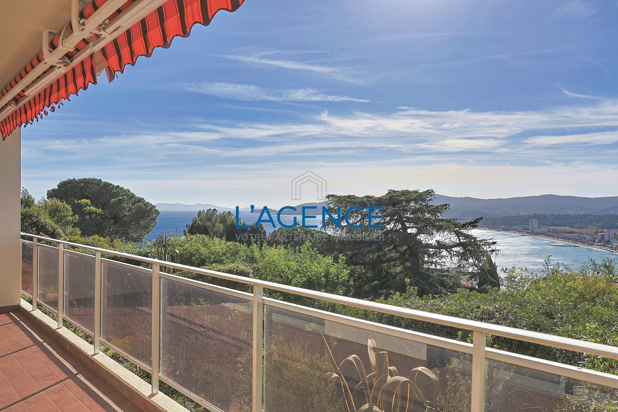 LE LAVANDOU, EXCLUSIVITE, situé sur les hauteurs, dans un environnement ultra résidentiel privilégié et au coeur d'un véritable écrin de verdure, ce bel appartement de type 4 vous séduira par sa magnifique vue dominante sur la verdure et sur la mer méditerranée. Au sein d'une copropriété gardiennée et sécurisée, l'appartement offre une surface habitable de 75m2 avec des possiblités de réagencement, la pièce de vie et une chambre ouvrent sur la terrasse de 14.50m2, idéale pour profiter de la vue tel un tableau vivant.Vous apprécierez sa luminosité, avec son exposition sud ouest, son environnement paisible et verdoyant, ainsi que sa situation dominante sans être isolée. En effet les plages et les commodités sont rapidement accessibles.Un parking privé, et une cave de 10m2 viennent compléter ce bien, idéal aussi bien en résidence secondaire que principale.