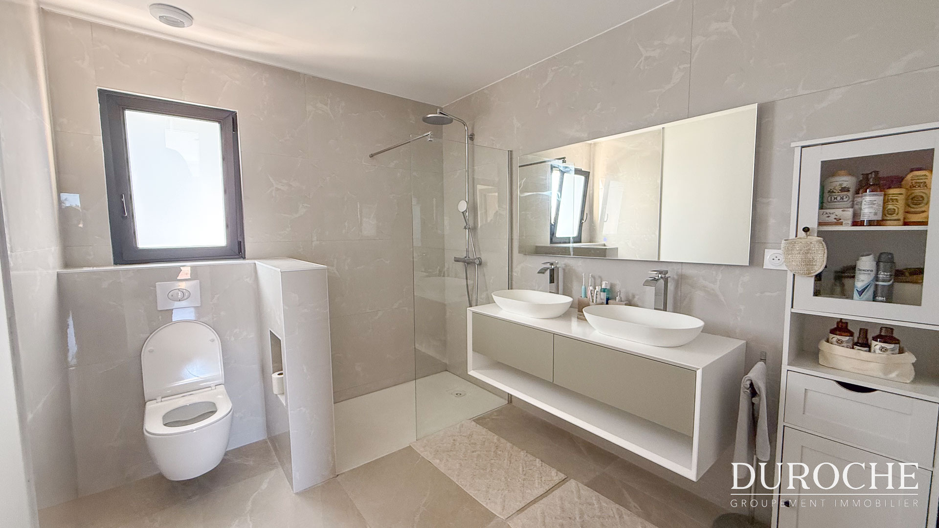 La maison bénéficie de prestations récentes, de qualités et performantes : volets roulants, menuiseries double vitrage, chauffe-eau thermodynamique, climatisation et chauffage gainable. Les finitions sont soignées, réalisées avec des matériaux de qualité dans des tons neutres, permettant une installation immédiate.