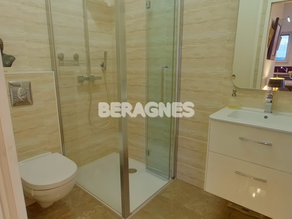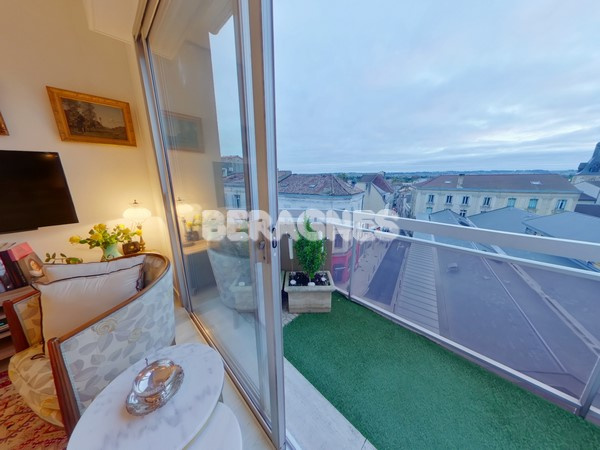 Hyper Centre ville de Bergerac, cet Appartement T3 très confortable, lumineux, au dernier étage avec une très belle vue panoramique est situé dans une résidence de standing avec ascenseur : une belle entrée, 2 chambres de taille confortable, un dégagement avec dressing aménagé et porte coulissante-miroir, un séjour ouvert sur cuisine équipée et aménagée (lave vaisselle - Frigo/congélateur- Micro onde et four encastré - Plaque de cuisson vitrocéramique à induction - Hôte aspirante design), une salle d'eau avec douche italienne et wc, un wc japonais indépendant, un cellier avec - Sèche linge et Lave linge. Les plus : volets électriques motorisés dans toutes les pièces, fenêtres double vitrage Alu et PVC, grandes baies vitrées, chauffage électrique par radiateurs à fluide caloporteur et une climatisation réversible (chaud/froid) dans le salon, variateur de lumière, sol parquet flottant de belle qualité. Grand emplacement de stationnement en souterrain. Balcon avec store banne. Appartement relié à la fibre. Interphone. Cumulus pour eau chaude. Entrée de l'immeuble sécurisé avec Vigik par badge. UNIQUE : très belle vue sur la ville, les toits et la nature. Mon coup de coeur. Colette RIVALS BERAGNES IMMOBILIER BERGERAC 06 860 860 98.