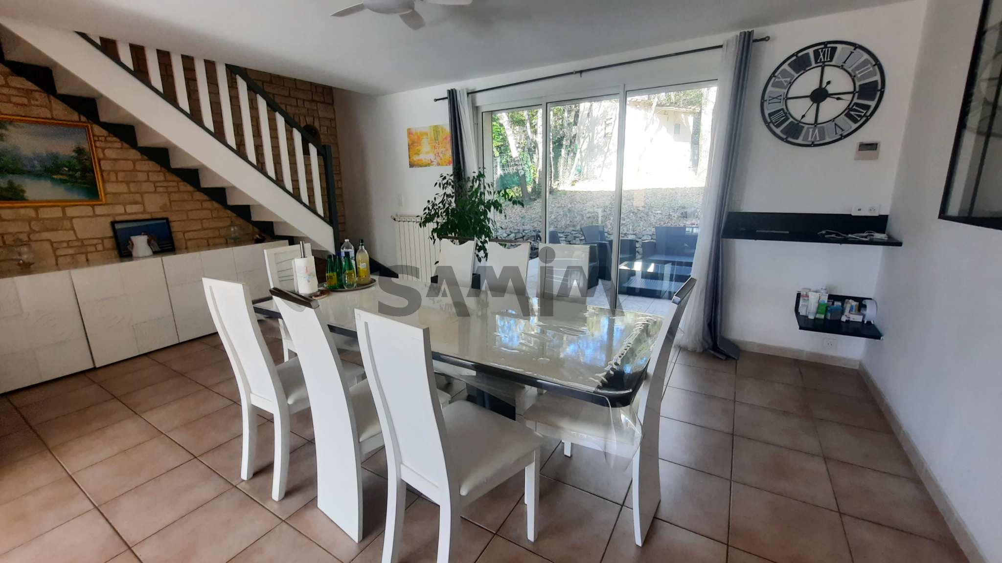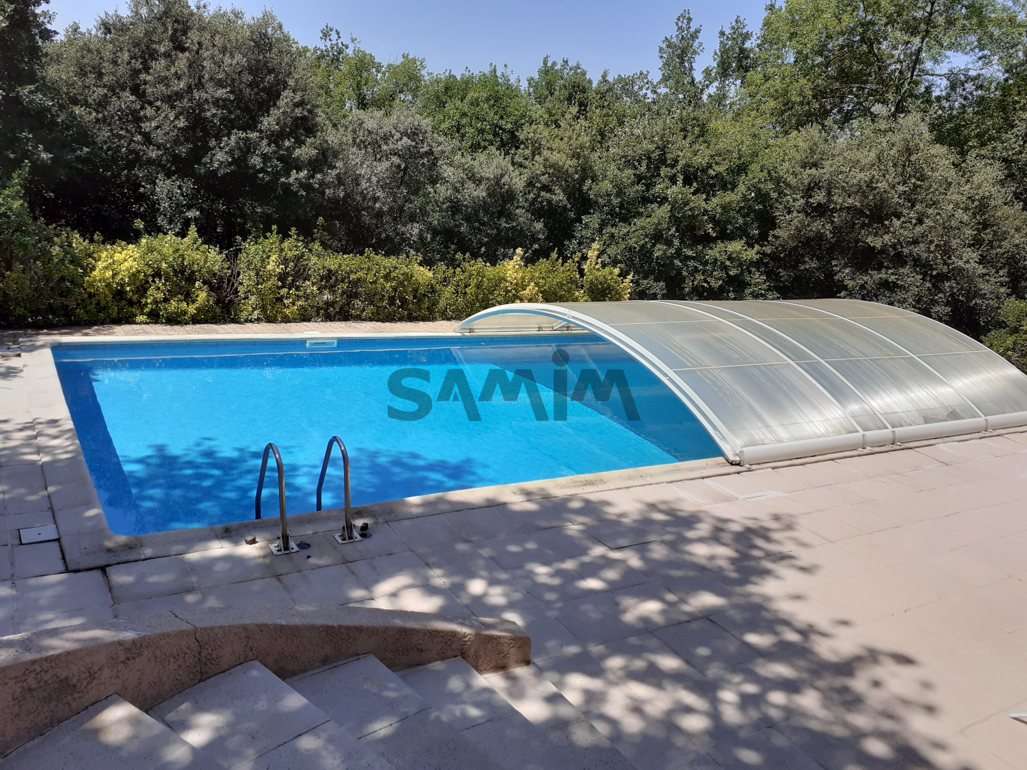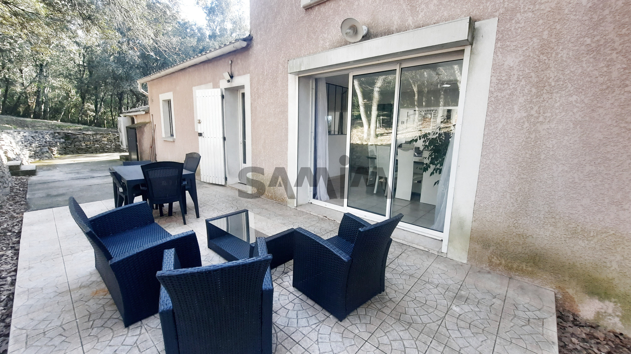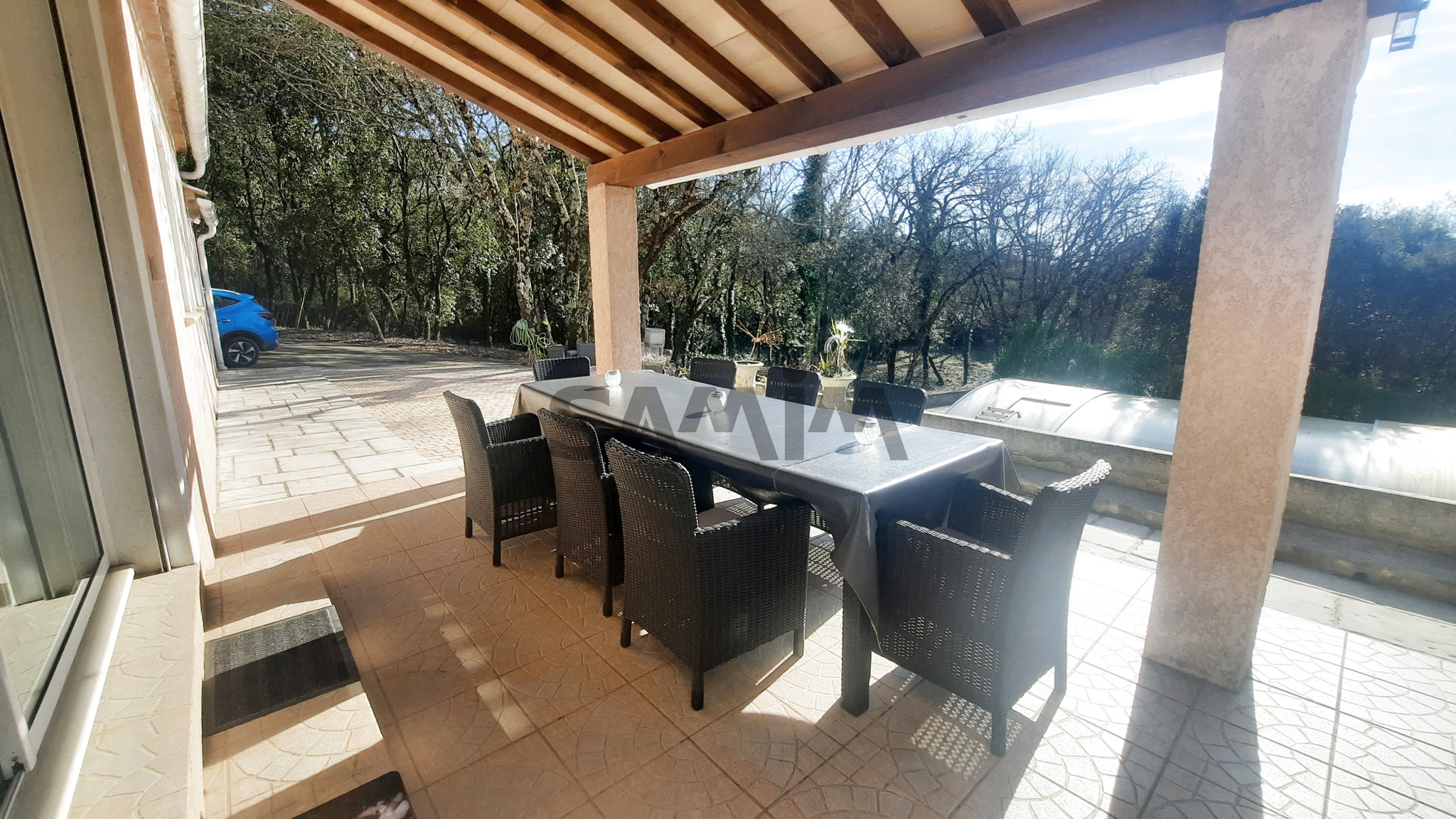 À VENDRE - SECTEUR QUISSAC - SPACIEUSE VILLA sur un grand terrain clos de 3600m2. Elle offre en RdC: Un séjour et un salon donnant sur une terrasse sud, en partie couverte, avec une vue dominante sur la campagne et la piscine. Egalement une terrasse nord pour les déjeuners d'été à l'ombre. Une cuisine indépendante, moderne, entièrement équipée. Trois chambres, une salle d'eau avec large une douche italienne et une option hammam, une buanderie et des toilettes séparées. A l'étage: Deux belles chambres avec placard dont une donne sur un balcon plein sud, une salle d'eau et des toilettes séparées.