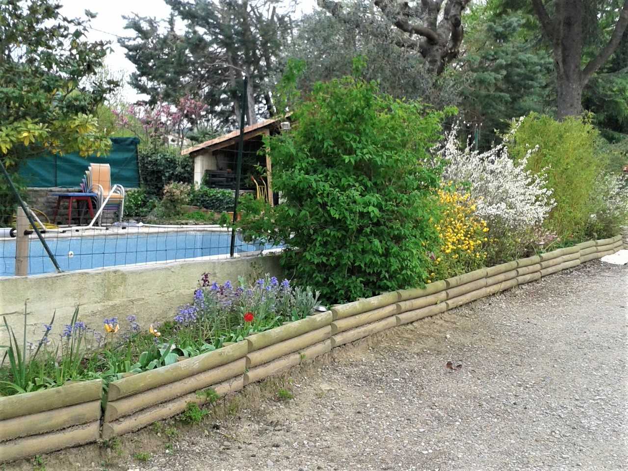 - A l'étage, un appartement spacieux comprenant: Une pièce de vie avec une cheminée et un insert, une cuisine semi-ouverte, une grande terrasse agréable et ensoleillée de 40m2; 3 belles chambres, une salle d'eau avec douche à l'italienne, beaucoup de charme et vue sur la nature...une piscine de 8mx5m