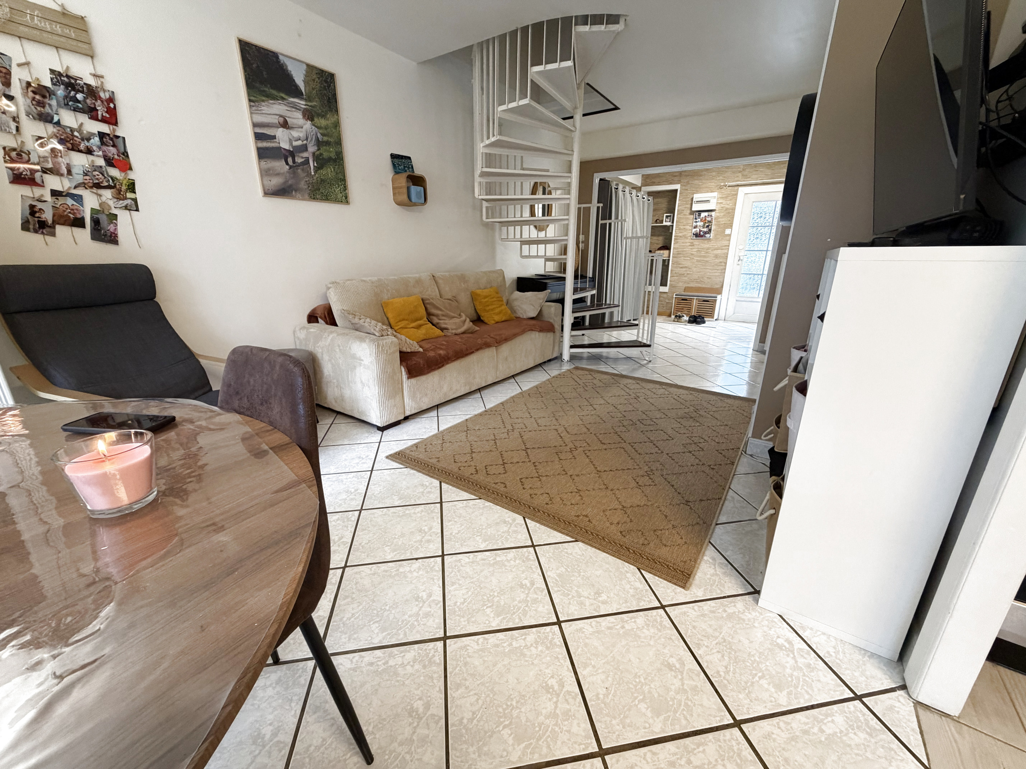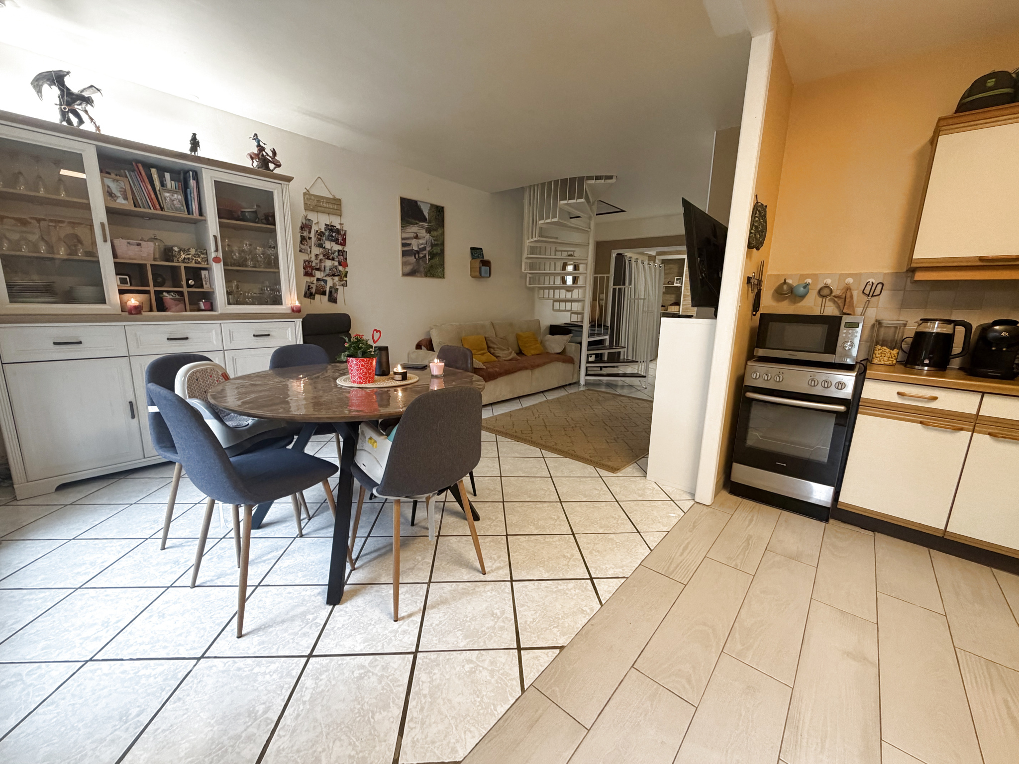 Au rez-de-chaussée, vous trouverez une agréable pièce de vie conviviale, une cuisine pratique et un espace optimisé pour le quotidien.