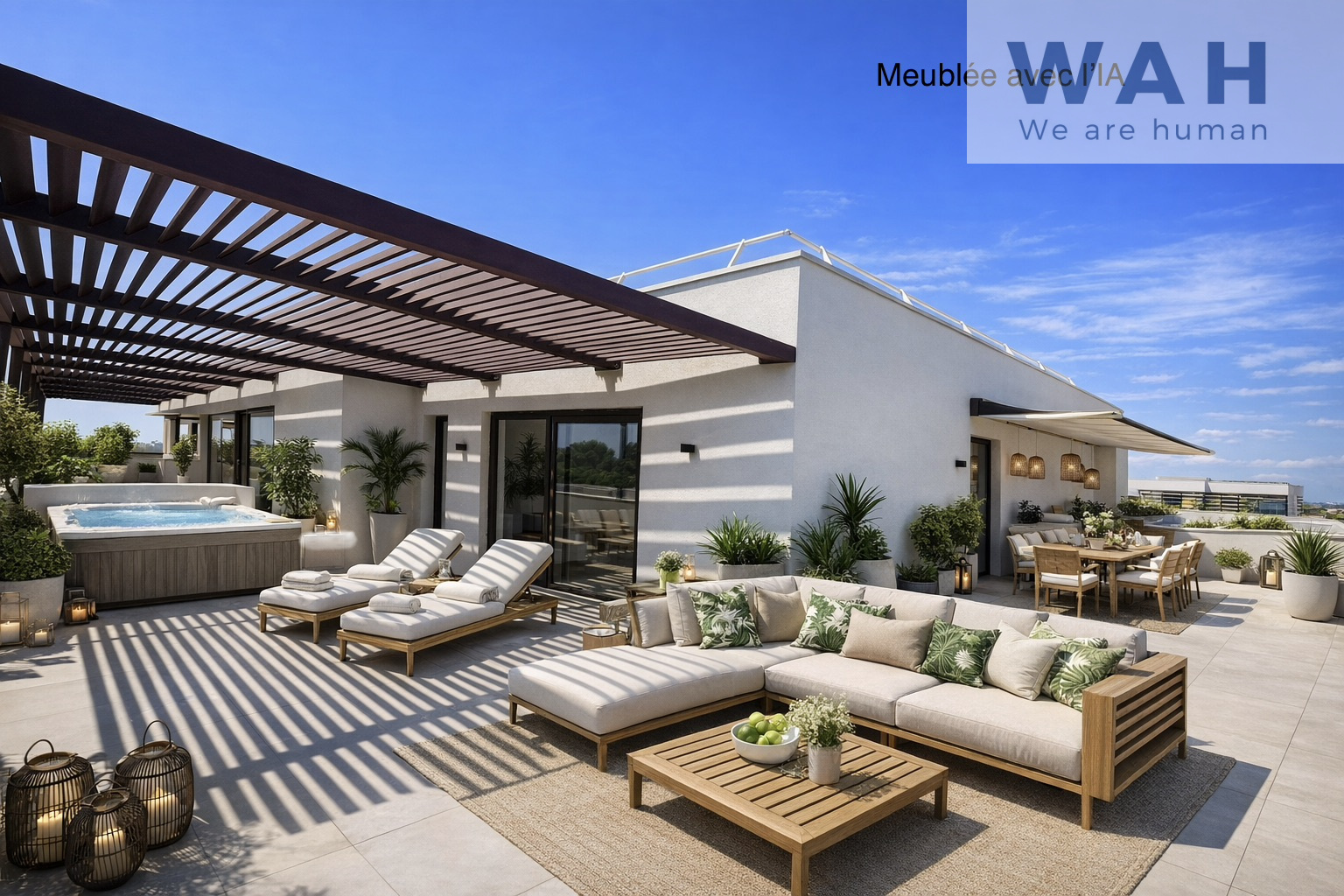 Laura du réseau WAH vous présente, au dernier étage d'une résidence récente livrée en 2025, ce magnifique appartement 4 pièces de 97 m2, baigné de lumière grâce à sa triple exposition et sublimé par une terrasse hors normes de 92,15 m2. Un véritable prolongement du séjour, un espace de vie à ciel ouvert. Dès l'entrée, les volumes et la qualité des prestations séduisent. La cuisine équipée, aux finitions soignées, s'intègre harmonieusement à l'espace salon/salle à manger. La lumière a été particulièrement travaillée : stores et rideaux modulables permettent d'adapter l'ambiance au fil de la journée. Pour un confort optimal au quotidien :cBuanderie indépendante, Grand cellier de 3,50 m2 Prestations haut de gamme Côté nuit L'appartement propose :
