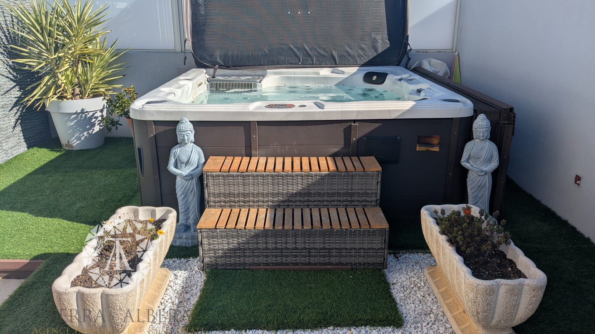 À l'extérieur, une agréable terrasse accueille un SPA six places, invitant à la détente et aux moments privilégiés.