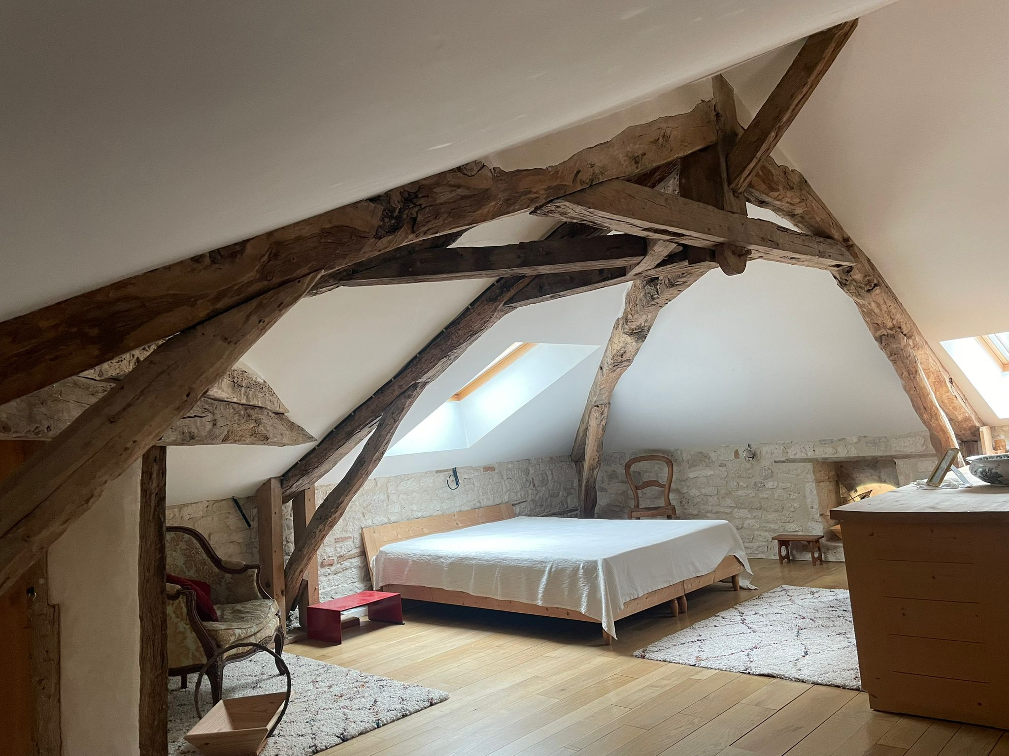 Une grande chambre 16 m2 , une salle de bain , une mezzanine chambre de 33 m2 .