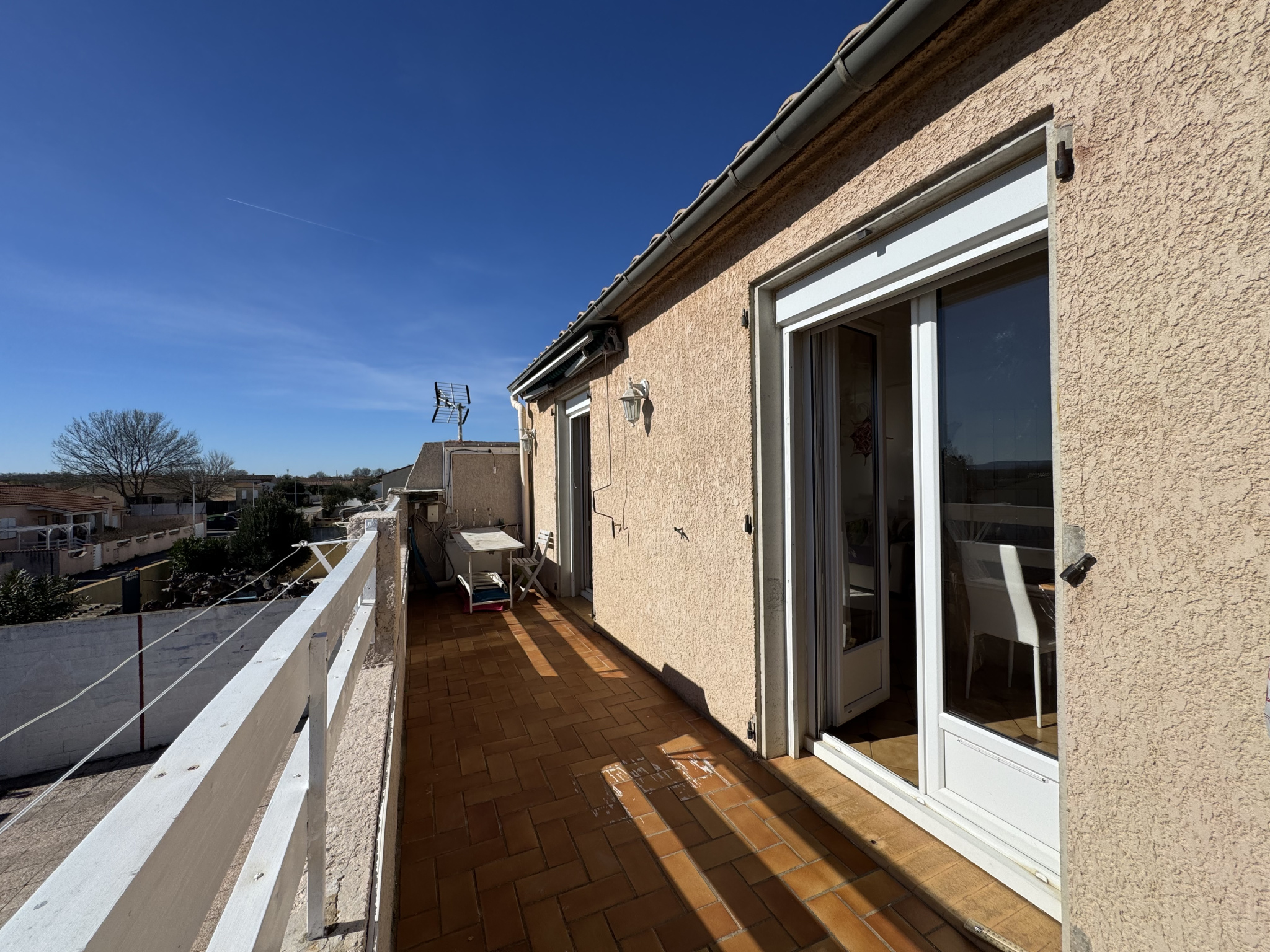Petite annonce immobilière pour un nouveau bien à la vente sur la commune de Coursan située entre Narbonne et Béziers. L'aspect positif de cette maison est qu'elle est composée de 2 logements séparés, au RDC une habitation de type 2: séjour / Cuisine, une chambre, une salle d'eau et une véranda très lumineuse. A l'étage, une habitation de type 6 avec 3 chambres, une cuisine séparée, un cellier, un spacieux séjour avec accès à une terrasse plein sud et une vue dégagée sur la clape et les pyrénées ainsi qu'une salle d'eau. Au niveau des prestations: menuiseries en double vitrage, volets roulants électriques, climatisations réversibles, pas de travaux à prévoir. À l'extérieur, vous disposerez d'un jardin arboré et piscinable occupant 412m2 et 2 terrasses, une en RDC et une au 1er étage. La construction remonte à 1987. Ce bien est composé également d'un garage de plus de 30m2 ainsi qu'une aire de parking pour garer plusieurs véhicules même un camping -car + un carport. Pour organiser une visite de cette villa, votre agence Clap'immo se tient à votre disposition et reste disponilble par rapport à vos emplois du temps.