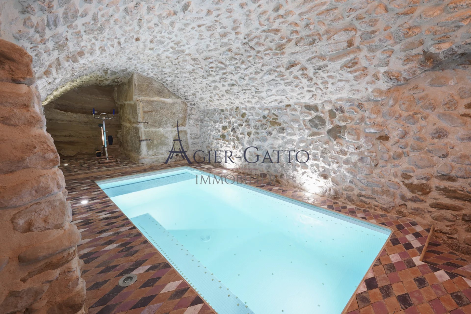 Una piscina interna, situata in una magnifica cantina a volta in pietra, crea uno spazio di relax elegante e intimo, fruibile tutto l’anno.
