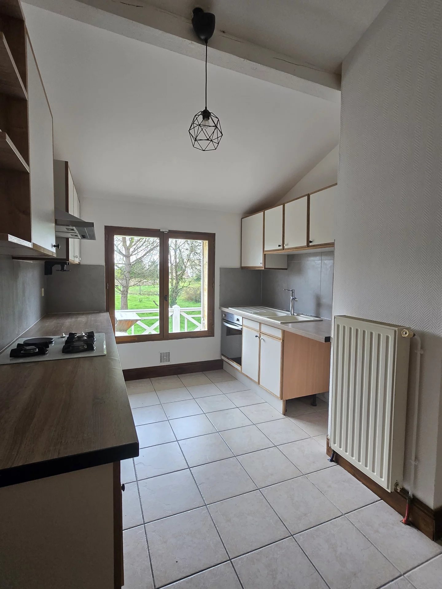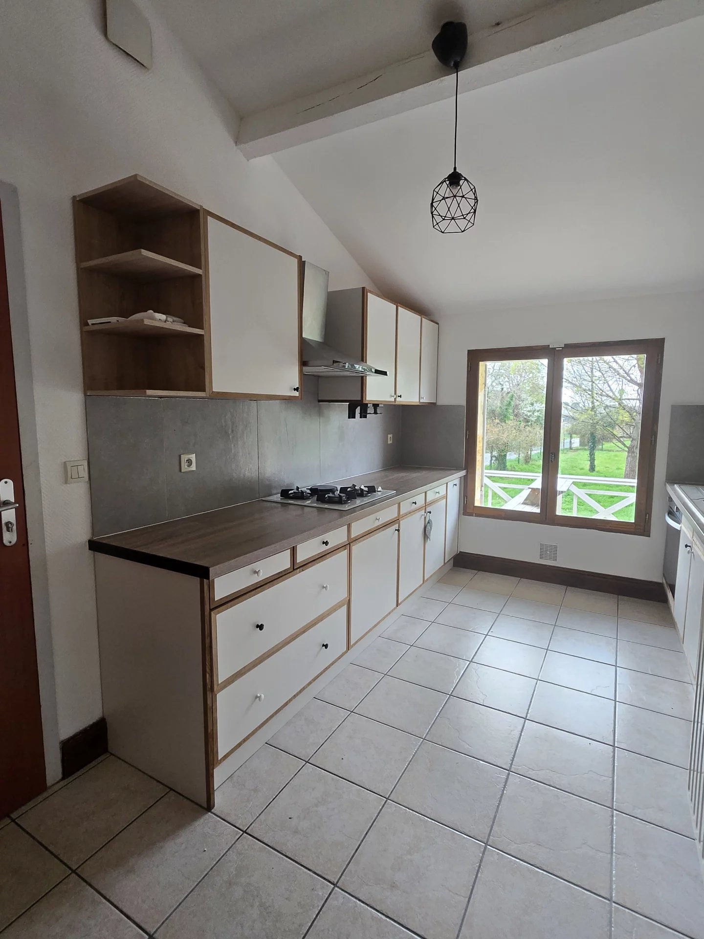 A louer maison comprenant en rez-de-chaussée : une entrée, une cuisine aménagée et équipée, un séjour, une chambre, une salle d'eau et un w-c. A l'étage 2 chambres. Nombreux rangements dans la maison. Garage 2 voitures attenant et communiquant avec cellier. La maison est chauffée au gaz de ville et pompes à chaleur à l étage. Un grand jardin clos complète l'ensemble avec une belle terrasse qui domine le terrain. Les charges comprennent l entretien de la chaudière, les ordures ménagères ainsi que l entretien des pompes a chaleur.