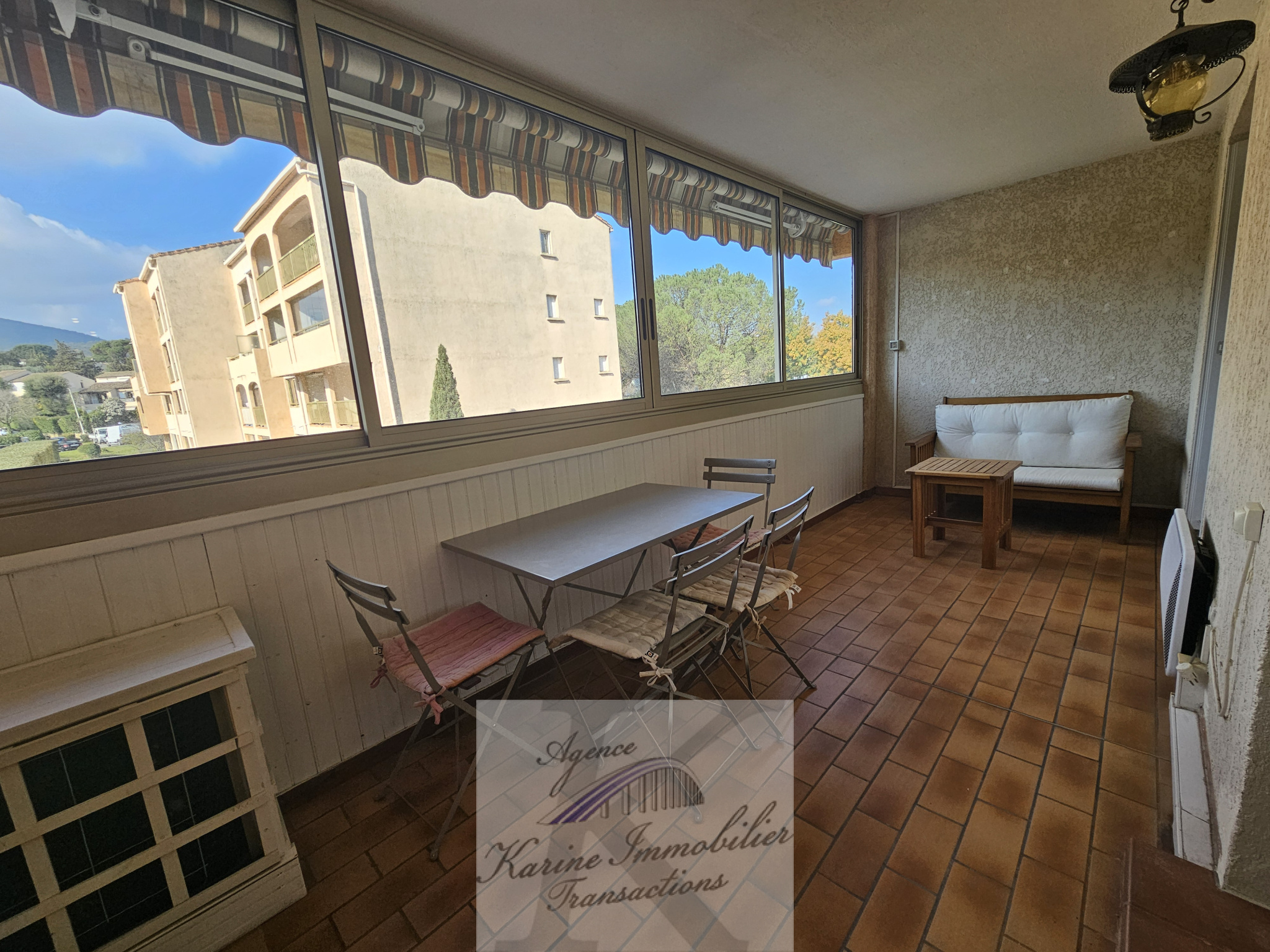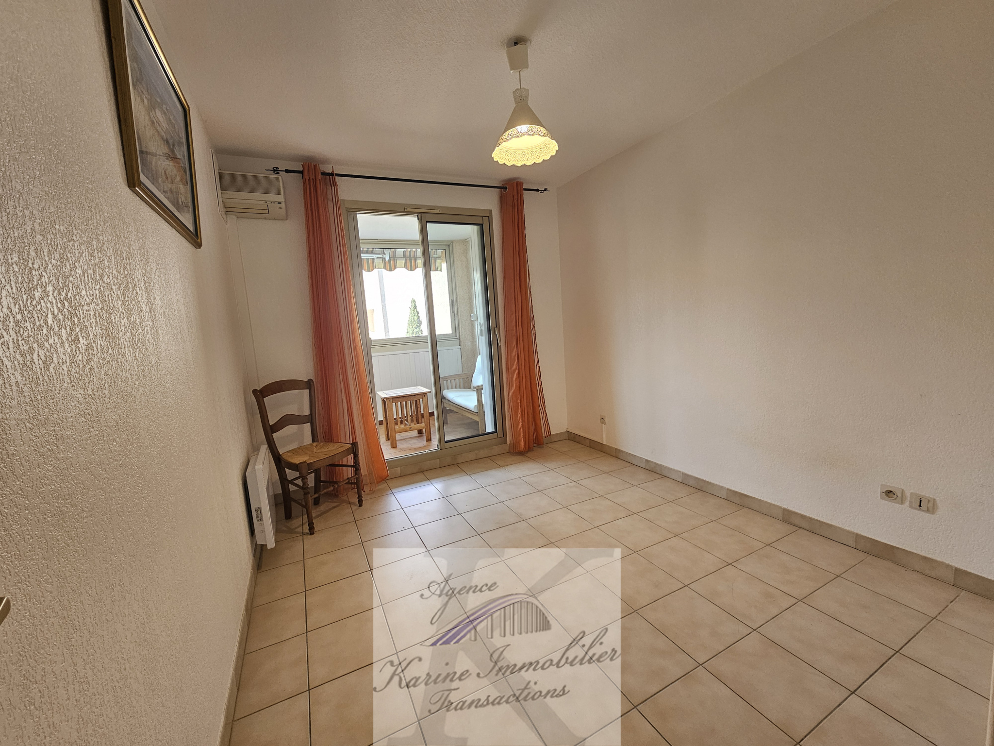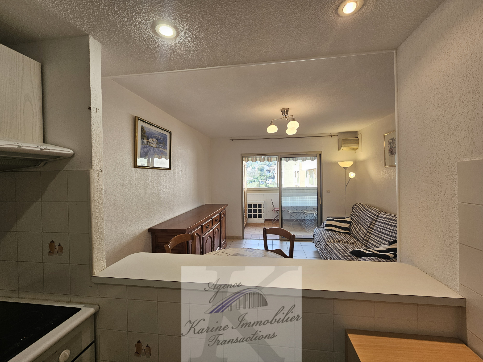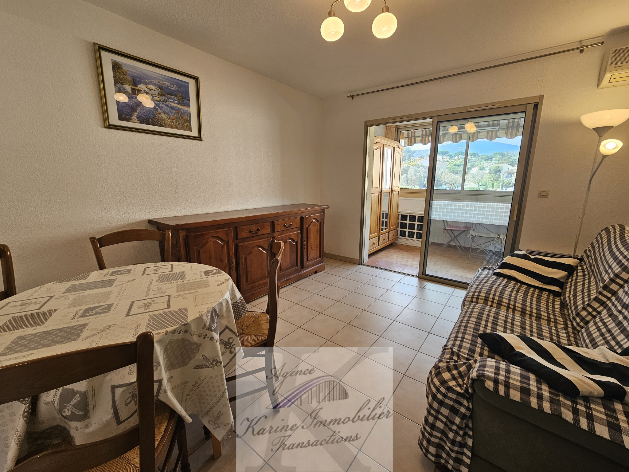 Dans copropriété fermée, sécurisée, gardiennée et boisée avec grande piscine à 1 km de la mer et du centre-ville, appartement au 2ème étage avec ascenseur de 44 m2 environ comprend une entrée avec placard, une cuisine américaine, un salon/séjour donnant sur une loggia fermée de 12 m2, 2 chambres avec placard dont une donnant également sur la loggia, une salle de douche, un wc séparé.