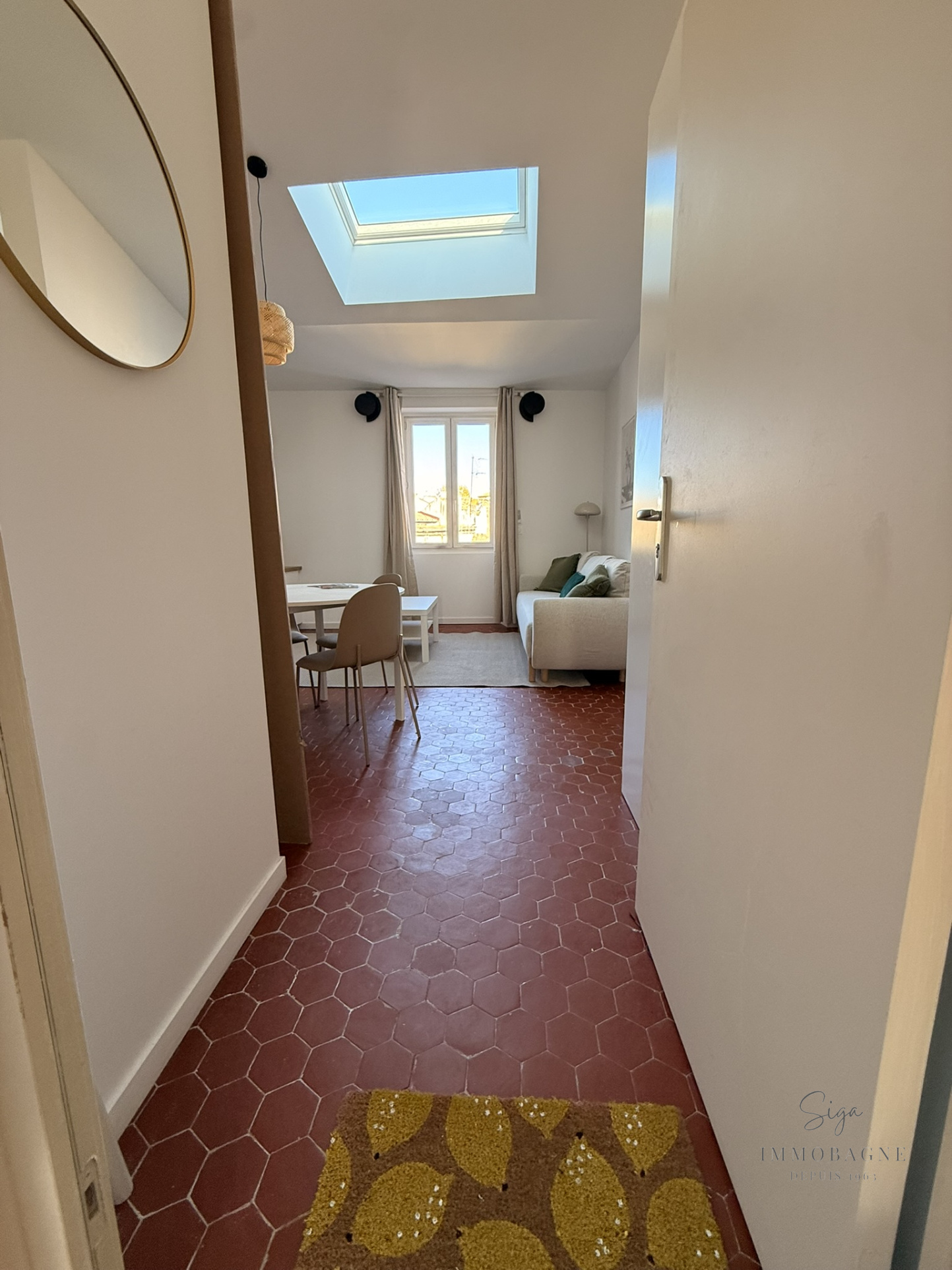 SIGA-IMMOBAGNE vous propose ce T2 entièrement meublé et équipé de 35 m2 situé en dernier étage d'une petite copropriété de 7 lots. Beaucoup de charme, tomettes au sol Il est situé au calme en centre ville près de la place de l'horloge et de la gare avec vue dégagée.Il est composé d'un séjour cuisine ouverte, d'une très jolie salle d'eau avec douche à l'italienne, 1 chambre séparée. L'immeuble à été rénové, aucun travaux à prévoir. PVC double vitrage. Pas de procédure en cours. MDT 1058. GARE SNCF ET ROUTIERE 5 MINUTES A PIEDS.