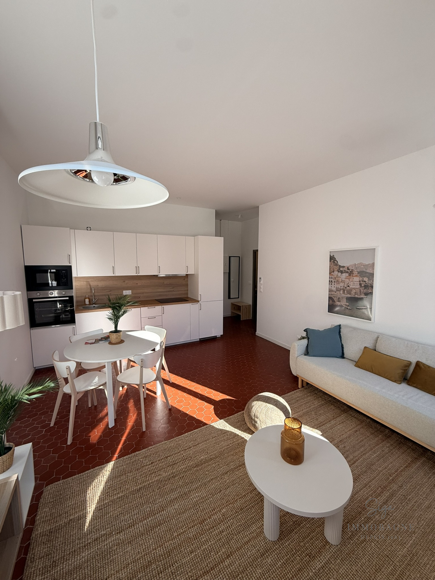 SIGA-IMMOBAGNE vous propose ce bel appartemment T2 de 40 m2 entièrement meublé et équipé dans un bel immeuble ancien. C'est un deuxième étage sans ascenseur quartier de l'horloge à 5 minutes à pieds de la gare. Grand séjour, cuisine ouverte, 1 chambre, 1 salle d'eau avec douche à l'italienne, 1 buanderie. Belles prestations, double vitrage, VMC, tomettes au sol, jolie cuisine intégrée mais à équipée etc... Copropriété de 7 lots. Pas de procédure en cours.mdt exclusif 1056. Gare SNCF et routière 5 minutes à pieds.