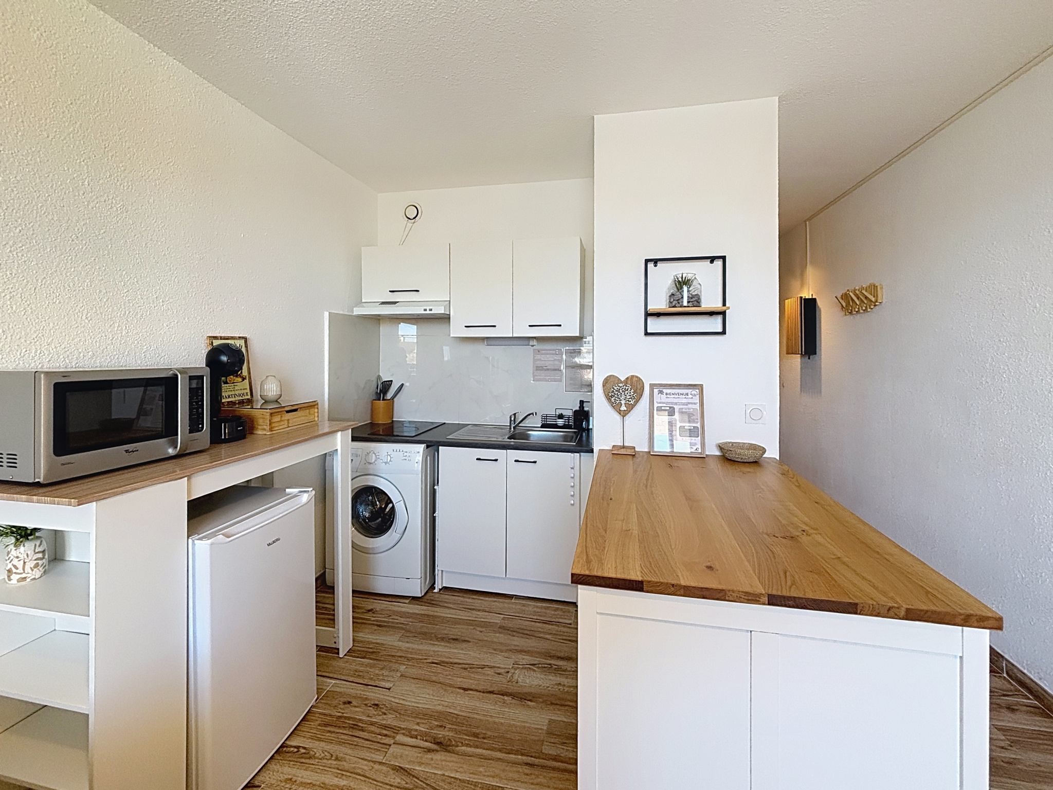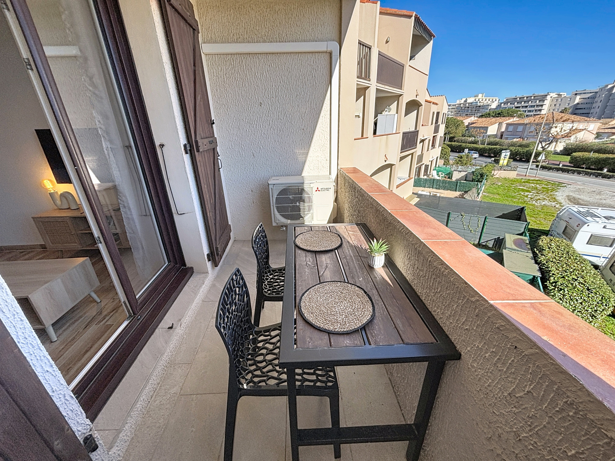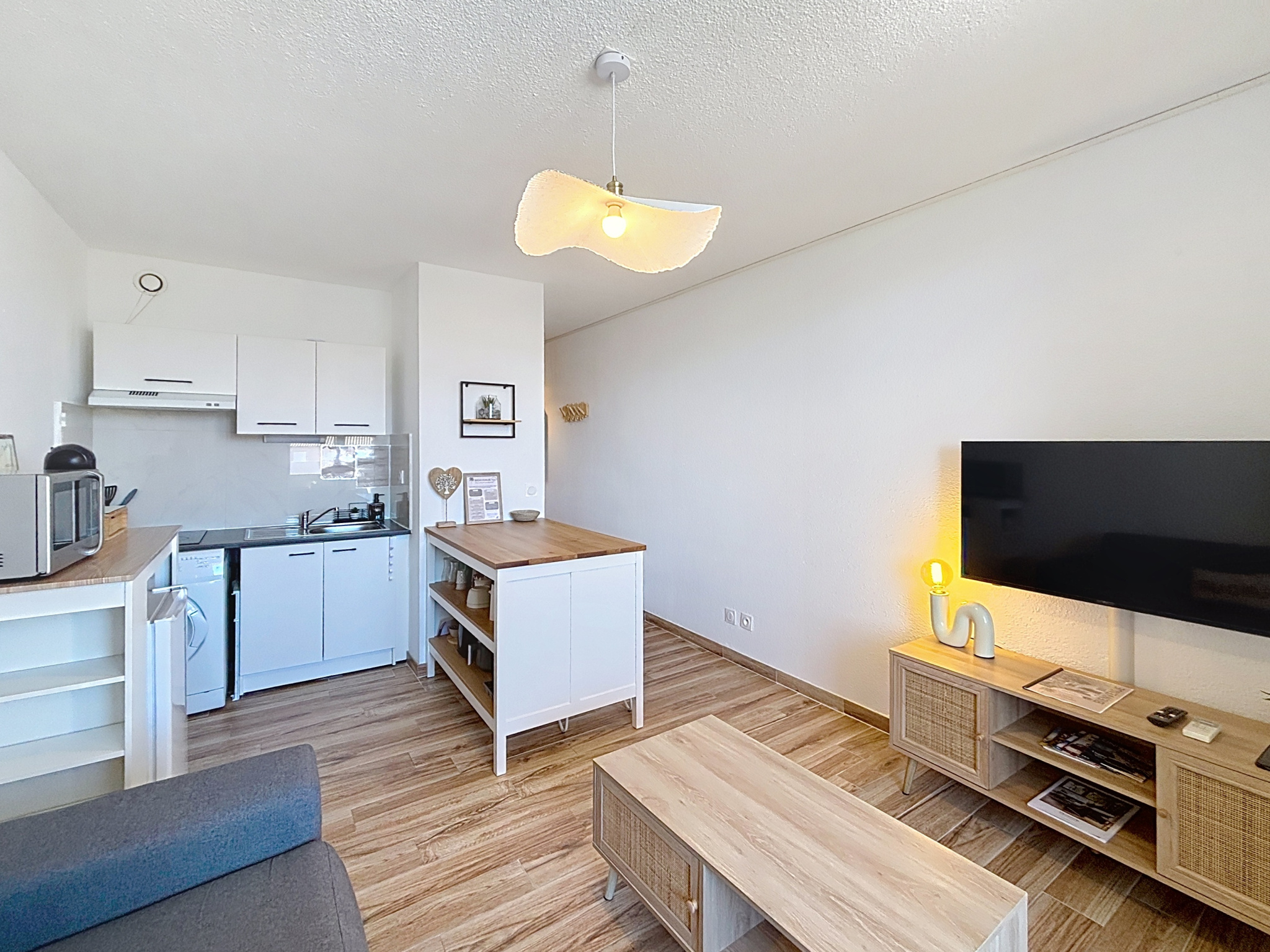 Idéalement situé dans le secteur de Canet Sud, à seulement 2 minutes à pied de la plage, appartement 2 pièces de 24 m2. Il se compose d'une pièce de vie lumineuse avec une cuisine entièrement équipée, ouverte sur une agréable terrasse de 6 m2 offrant une vue dégagée. Le coin nuit comprend une salle d'eau avec WC ainsi qu'une chambre cabine. Le logement peut accueillir jusqu'à 4 personnes grâce à un canapé-lit double dans le séjour et un lit superposé dans la chambre. Pour votre confort, l'appartement dispose de la climatisation réversible, d'une télévision, de plusieurs équipements électroménagers, ainsi que d'une place de parking gratuite pour stationner facilement. Les draps et serviettes de bain sont fournis.