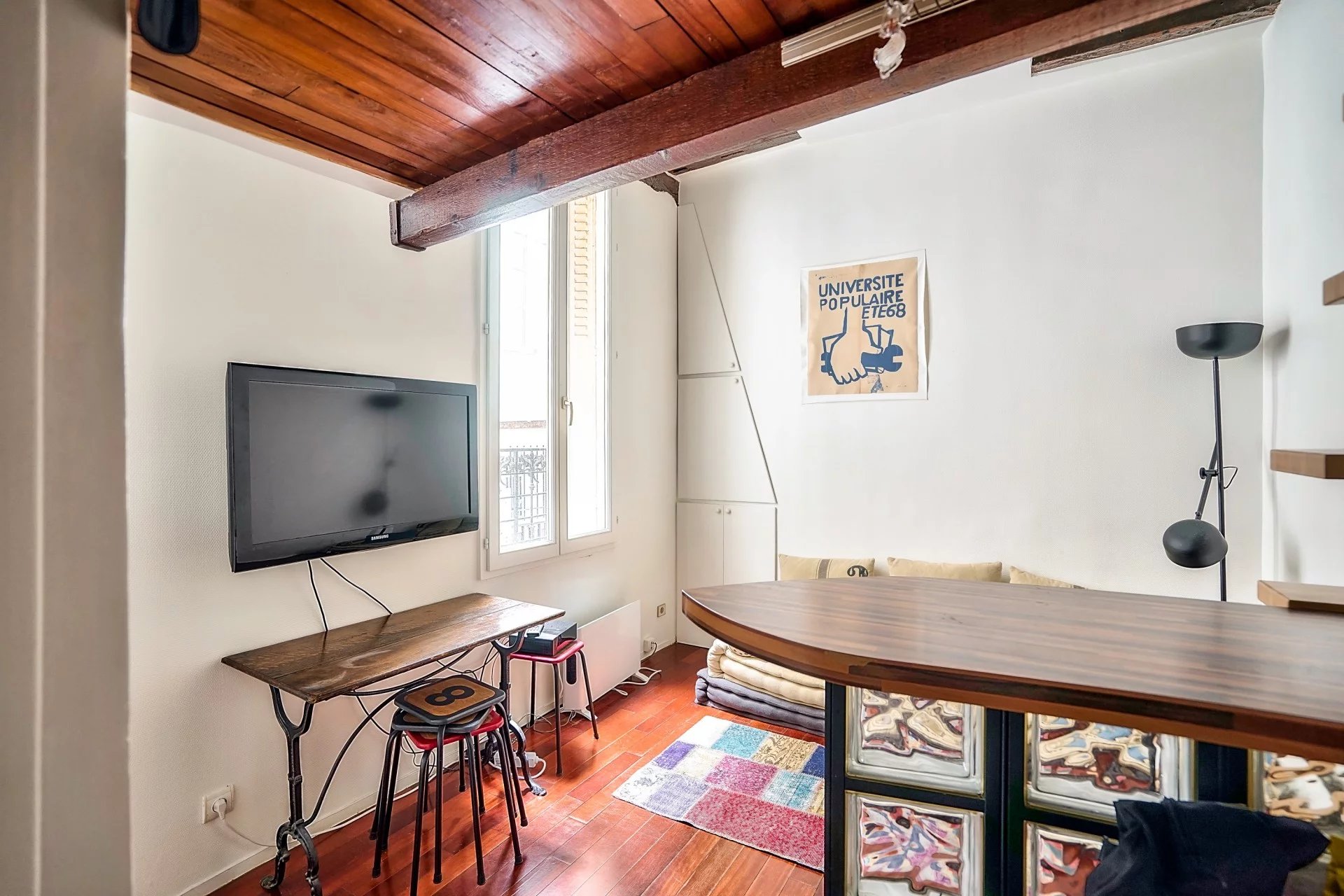 Bel immeuble ancien bien entretenu (façade récemment ravalée), appartement studio pied-à-terre d'une superficie de 20m2 (14m2 loi Carrez) qui se compose comme suit : un séjour optimisé avec très belle hauteur sous plafond offrant un univers cocooning, un coin cuisine équipée ouvert sur l'espace de vie, un coin nuit en mezzanine, une salle de douche ainsi que des toilettes indépendantes.