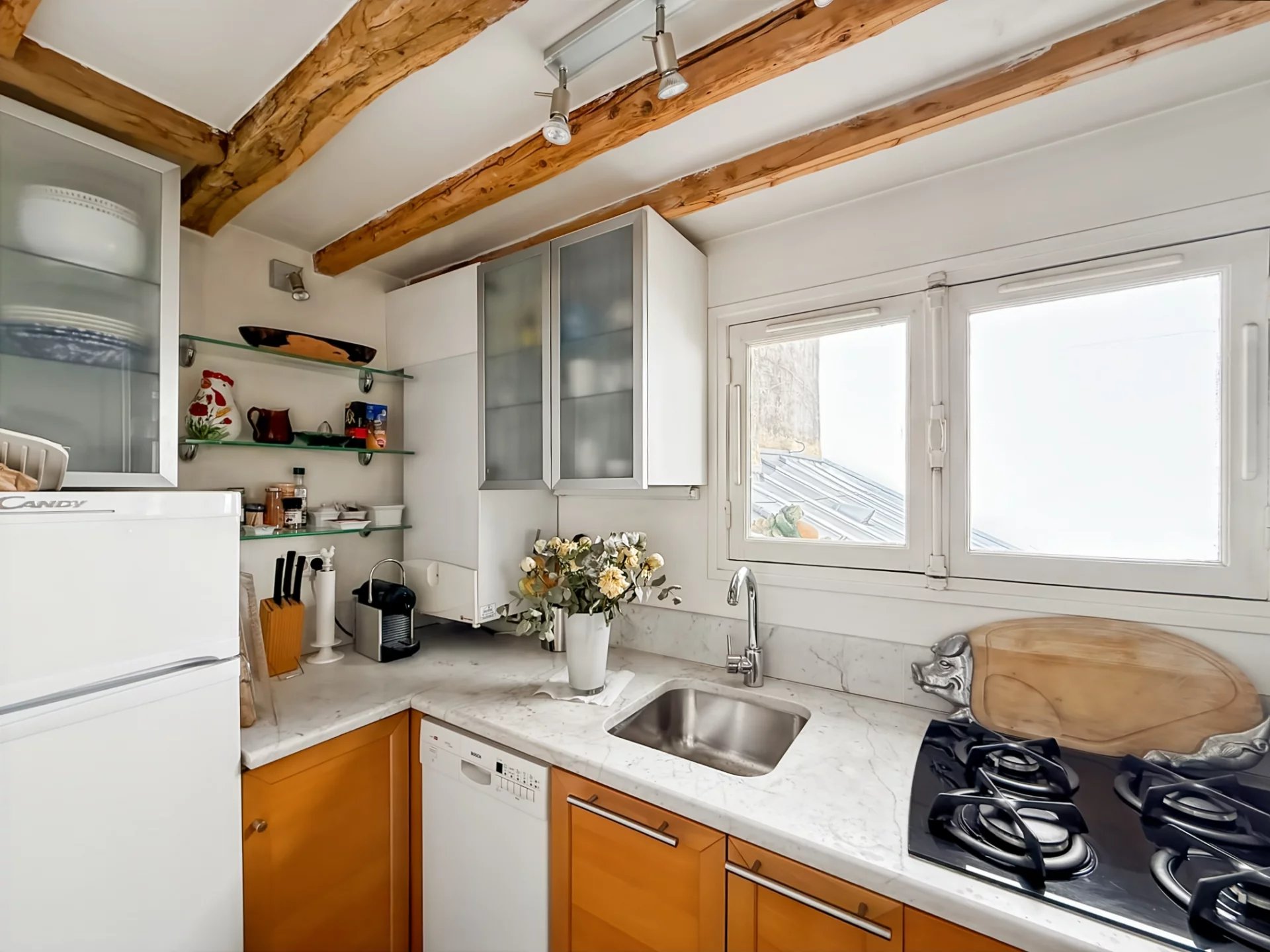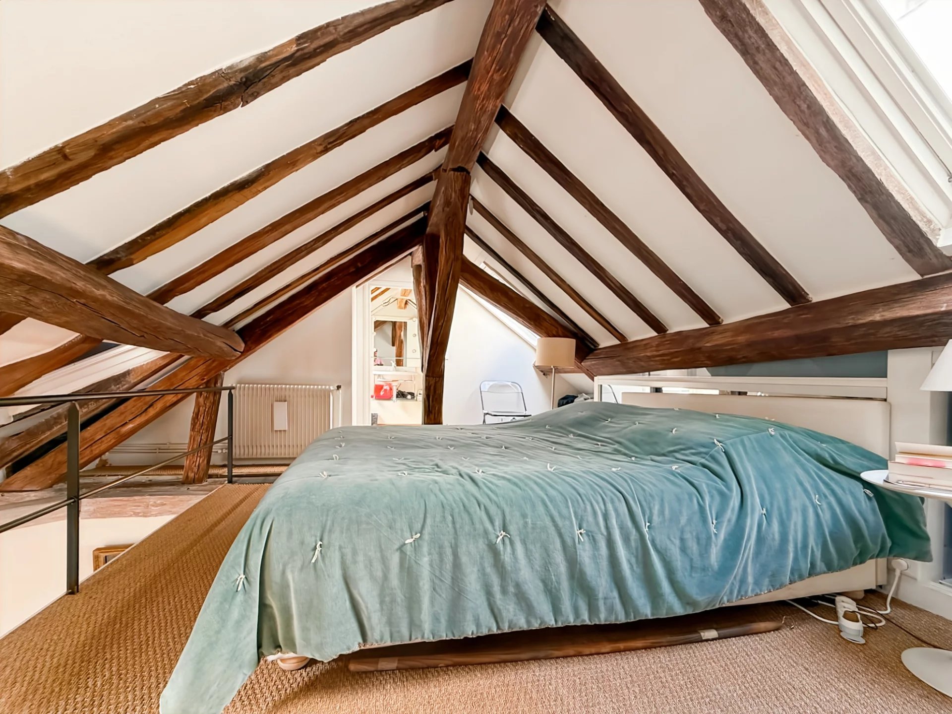 D’une surface de 65,05 m² au sol (dont 41,07 m² Loi Carrez), ce bien atypique se compose d’une pièce de vie lumineuse avec poutres apparentes, d’une cuisine ouverte, d’une chambre en mezzanine et d’un espace bureau ou coin nuit complémentaire.