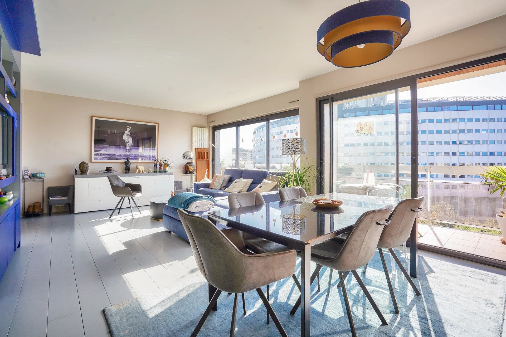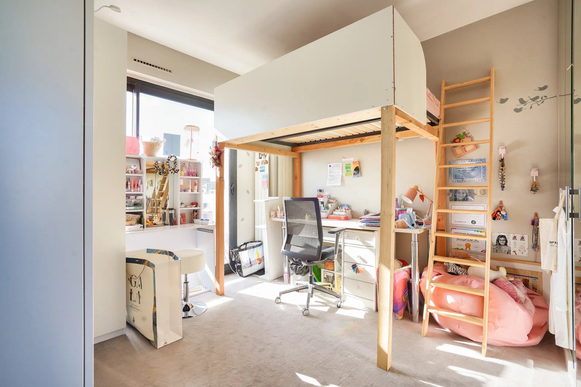 • Au 6ème étage : d’une entrée avec dressing, d’un double séjour baigné de lumière, orienté Sud-Est/Sud et prolongé par une terrasse, d’une cuisine indépendante (pouvant facilement être transformée en 3ème chambre), d’un cellier et des toilettes invités. Une terrasse, accessible depuis l’espace cuisine, complète ce niveau. La surface totale des extérieurs à cet étage est de 13 m²;