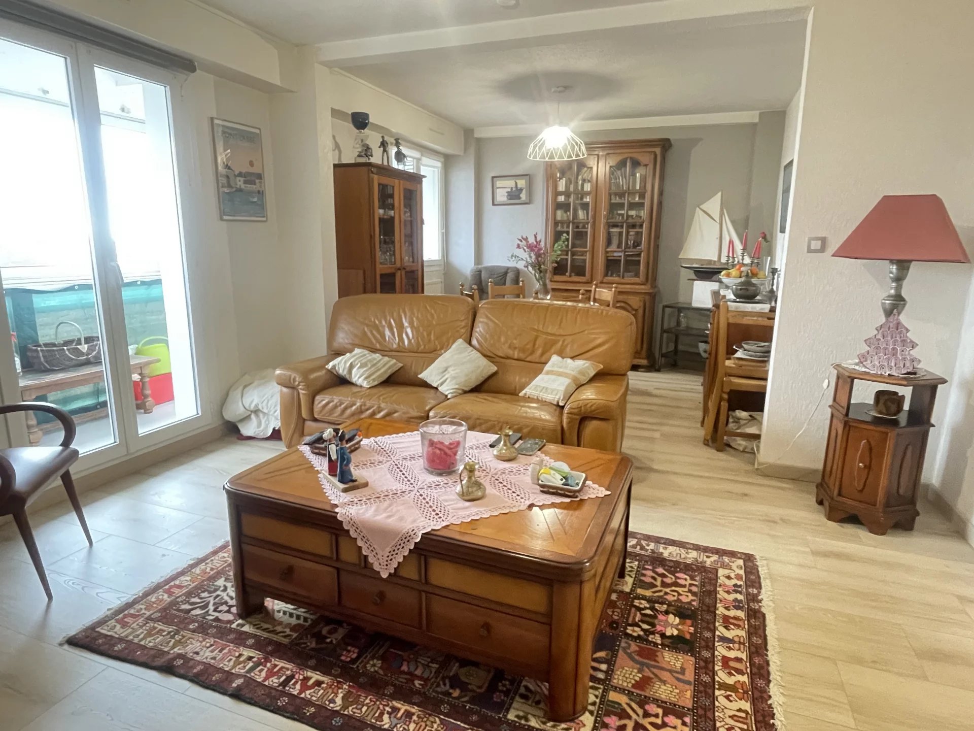 Seul sur son palier, cet appartement est composé d'une entrée avec placards, d'un w-c séparé, d'une cuisine équipée neuve avec son espace repas, d'un séjour-salon donnant sur balcon avec vue mer, de 3 chambres et d'une salle d'eau.