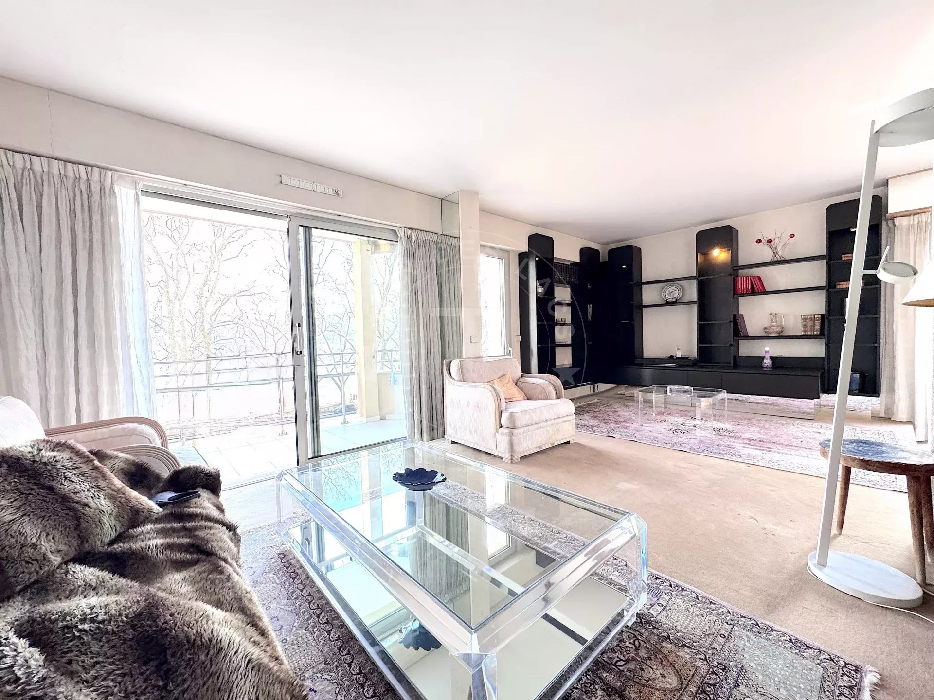 Situé au 3ᵉ étage avec ascenseur, en retrait de l’avenue, il bénéficie d’un environnement privilégié et d’une vue dégagée sur les jardins arborés de la copropriété, avec le lac en toile de fond. Son exposition plein sud inonde les espaces de lumière et sublime les volumes tout au long de la journée.