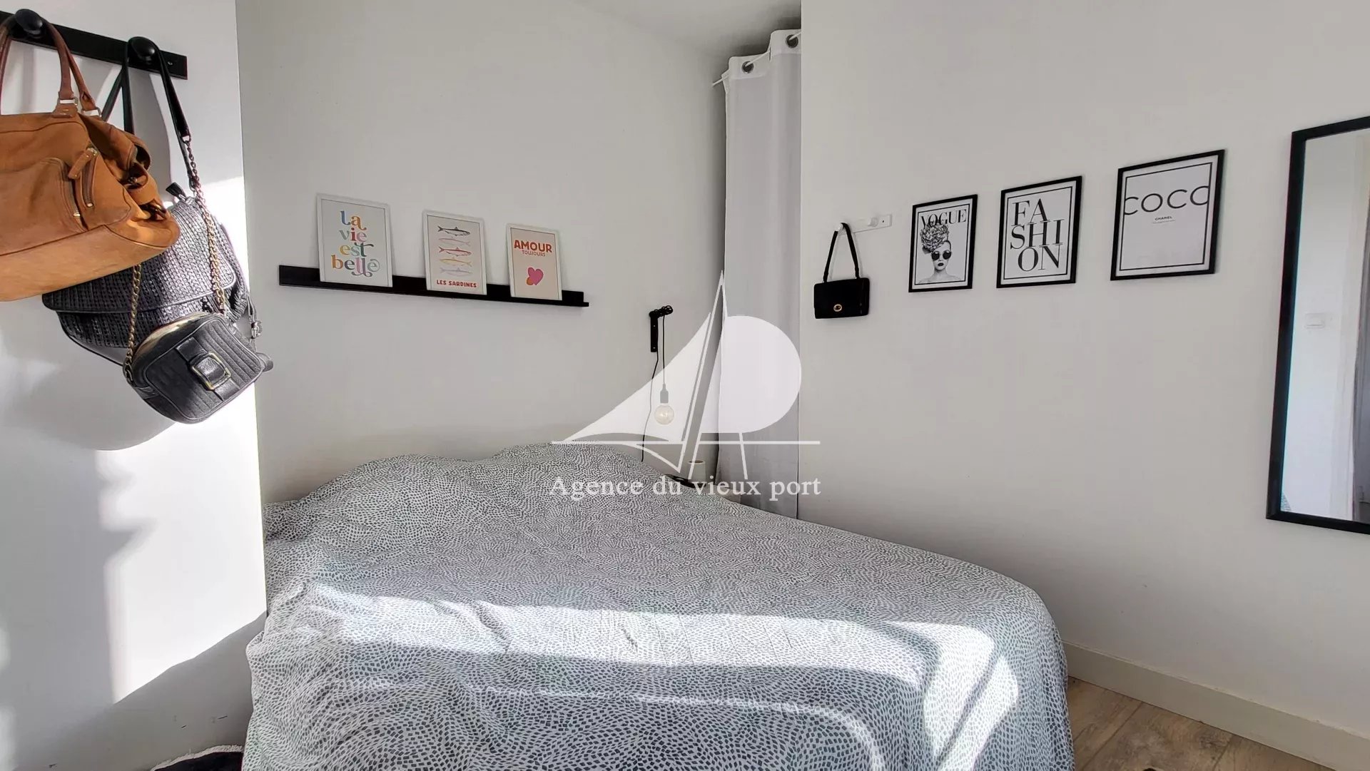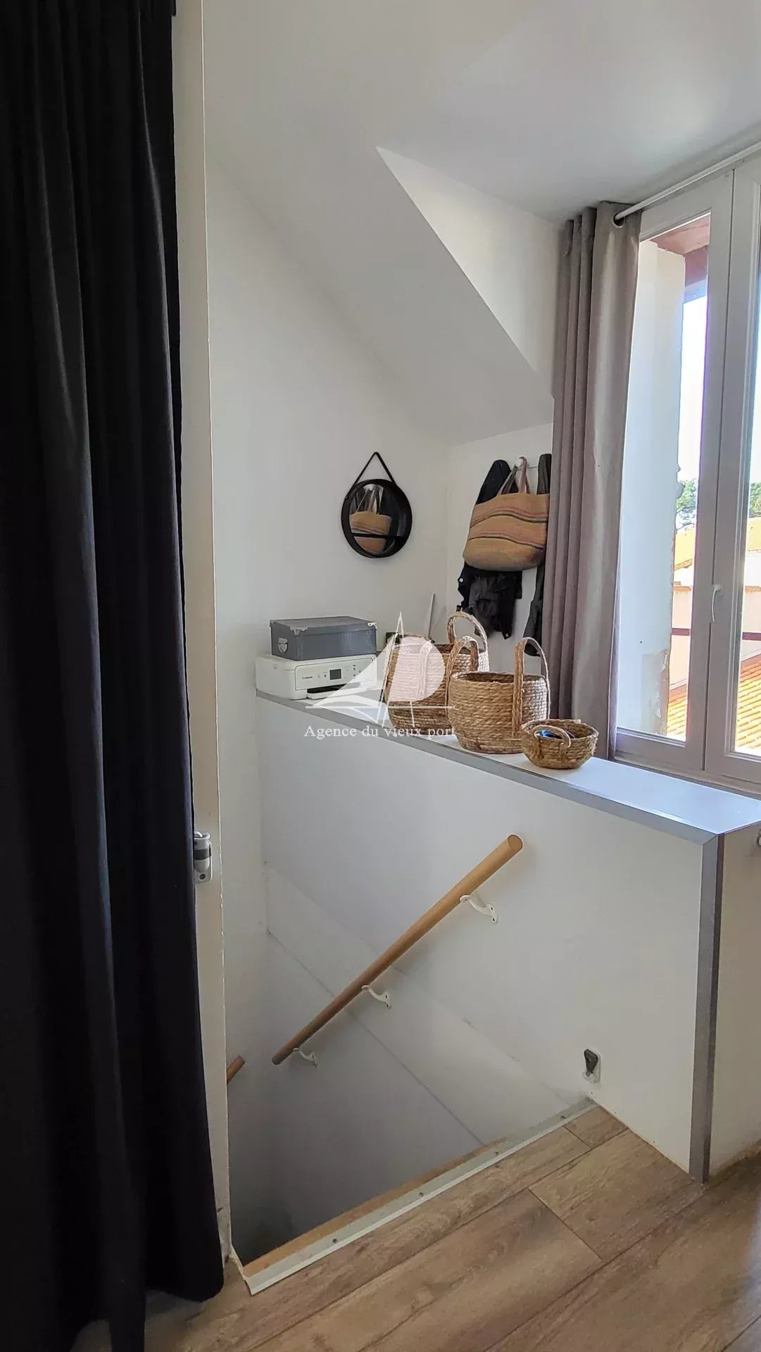 Agence du Vieux Port Pornic. À vendre : Appartement de type 3 situé dans une petite copropriété de 3 lots d'habitation, T3 de caractère au premier étage : entrée sur pièce de vie traversante exposée EST-OUEST, une chambre, une salle d'eau et un WC indépendant. En duplex une chambre sous combles esprit cabane. Emplacement idéal: centre et plage à pied.