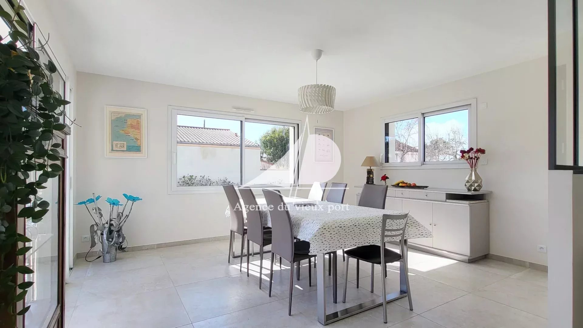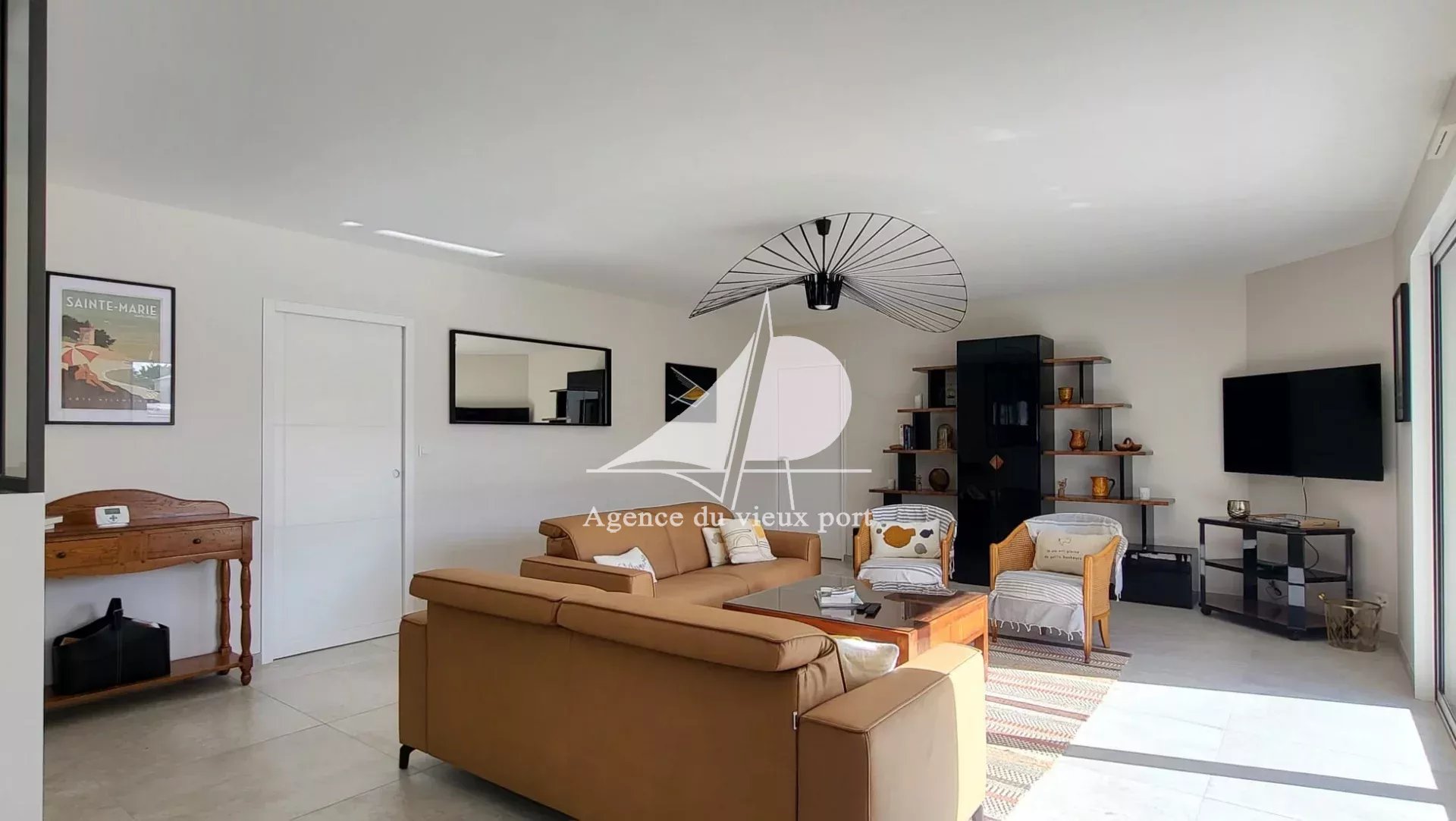 Secteur recherché de Sainte Marie sur Mer à deux pas du bourg et de la plage des Sablons, cette maison lumineuse de 2024 entièrement de plain pied offre un espace à vivre de 158 m2 et de belles prestations de confort. Elle comprend : un hall d'entrée, salon-séjour, une cuisine aménagée et équipée, l'ensemble d'une surface d'environ 73 m2, une buanderie, quatre chambres dont une suite parentale avec dressing, salle de bains et wc privatifs, deux salles d'eau, deux wc. Terrasse sud d'environ 46 m2 avec banne motorisée.