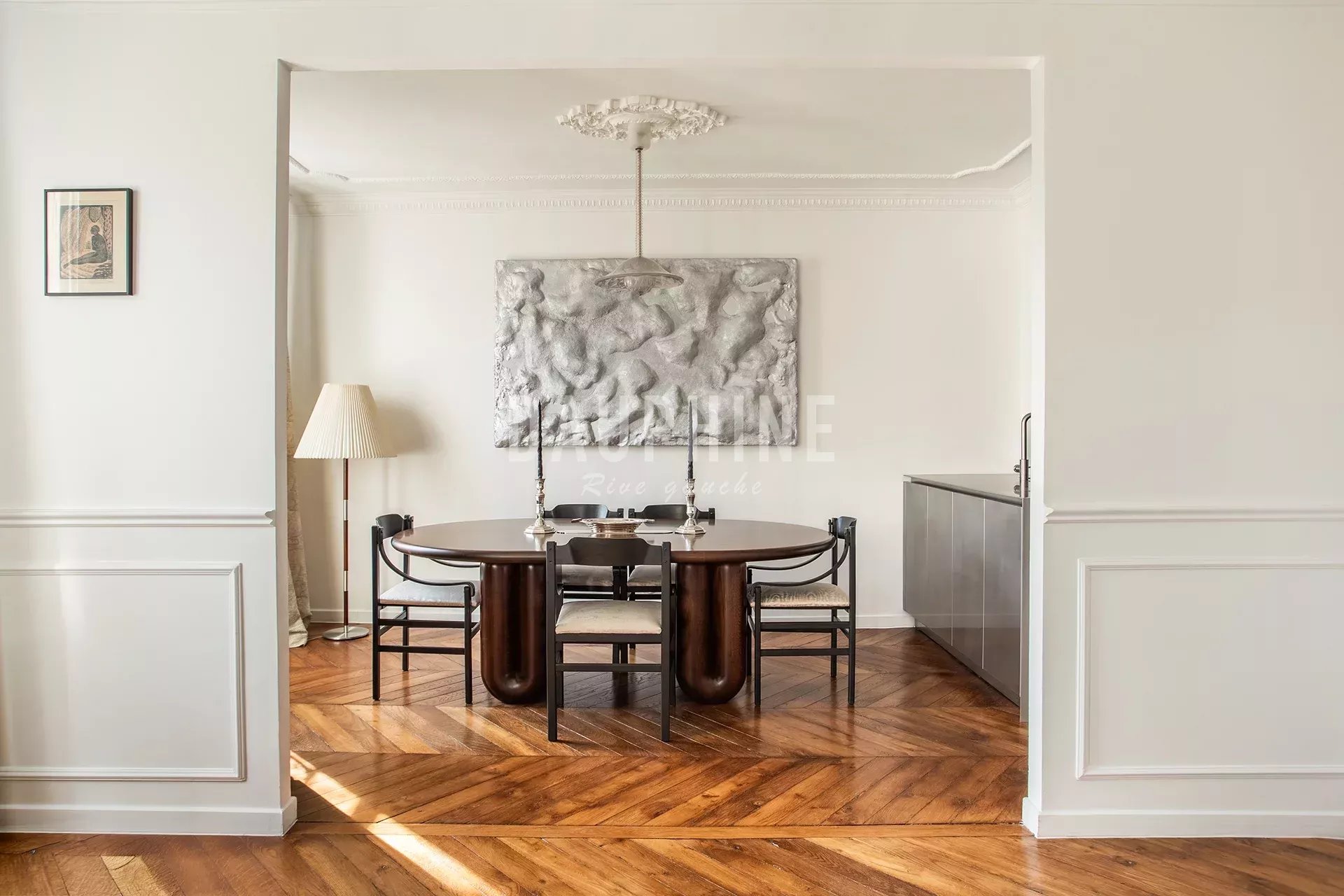 Entièrement repensé à l’issue d’une rénovation complète, l’appartement conjugue charme de l’ancien et écriture contemporaine, avec une attention particulière portée aux matières et aux finitions. Moulures, parquet en point de Hongrie d’époque et cheminée en marbre dialoguent avec un mobilier choisi avec justesse, dans un esprit libre et intemporel.