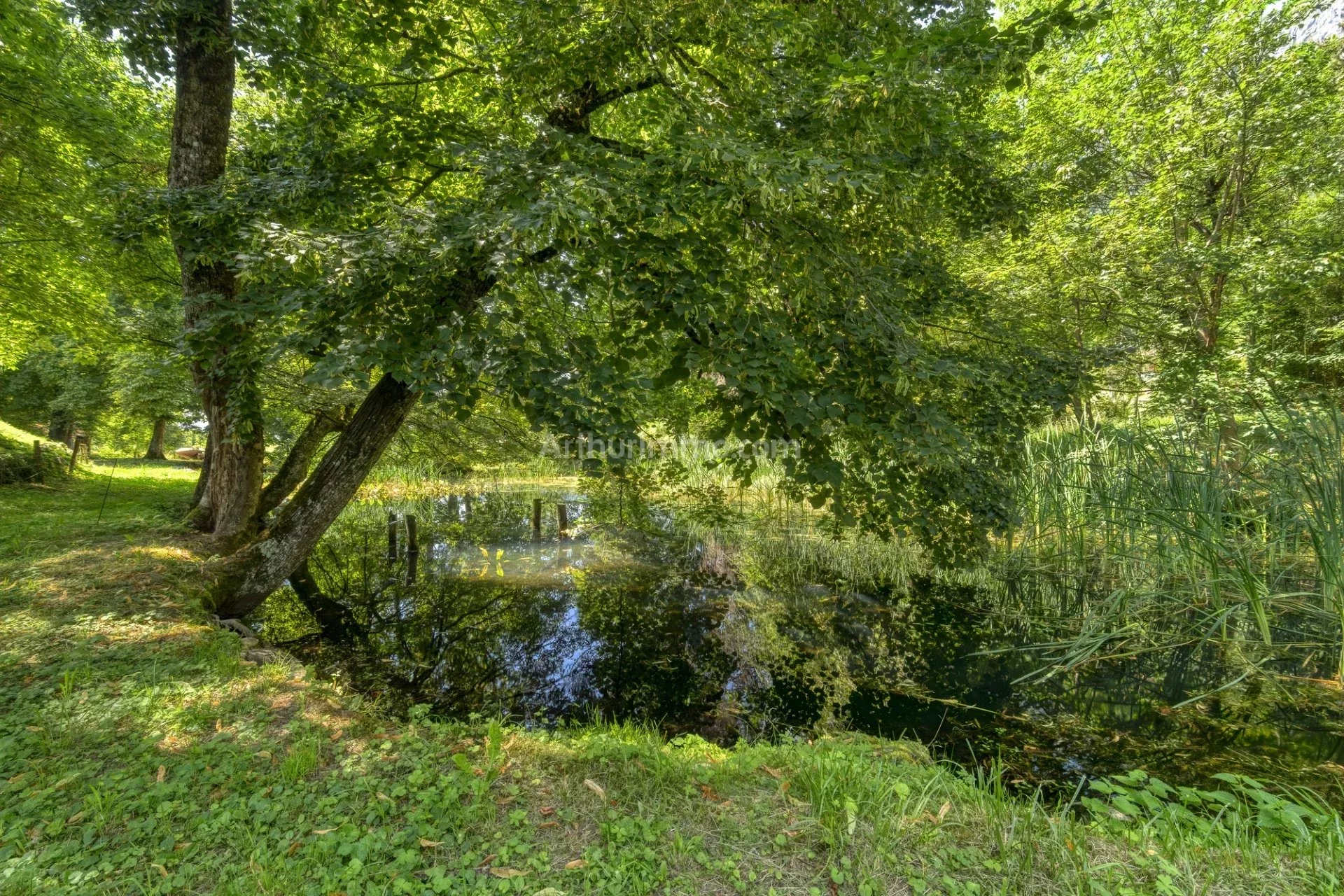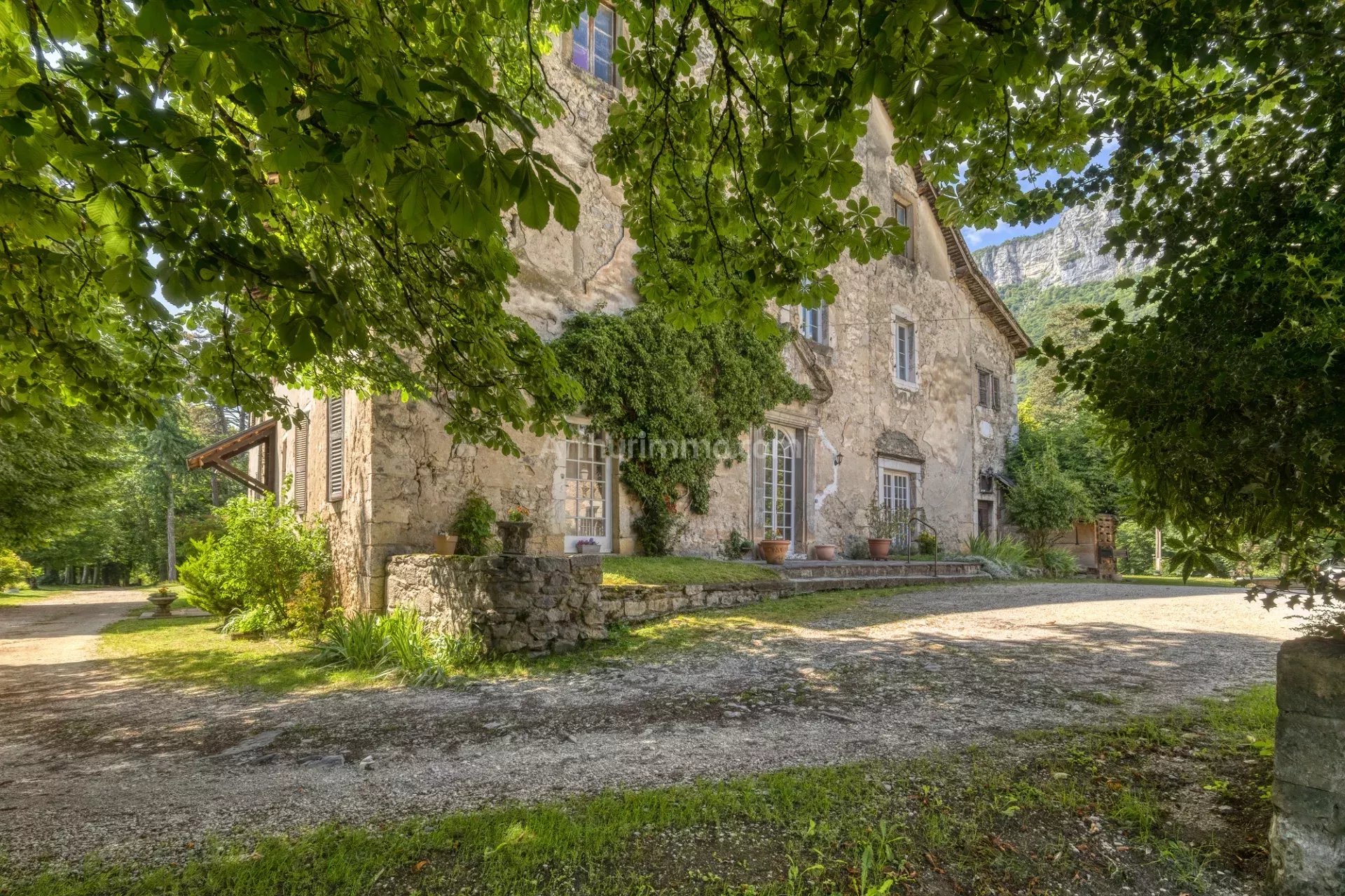 Une fois passé au delà des grilles du château, une allée ombragée sous les platanes fera encore planer le suspens avant de pouvoir découvrir la propriété. Le parc de 1.3ha est aménagé autour d'un chemin qui vous permet de circuler autour de la bâtisse, desservant l'habitation, l'annexe de 150m², l'étang et la piscine, et les nombreux espaces extérieurs aménagés et ombragés.