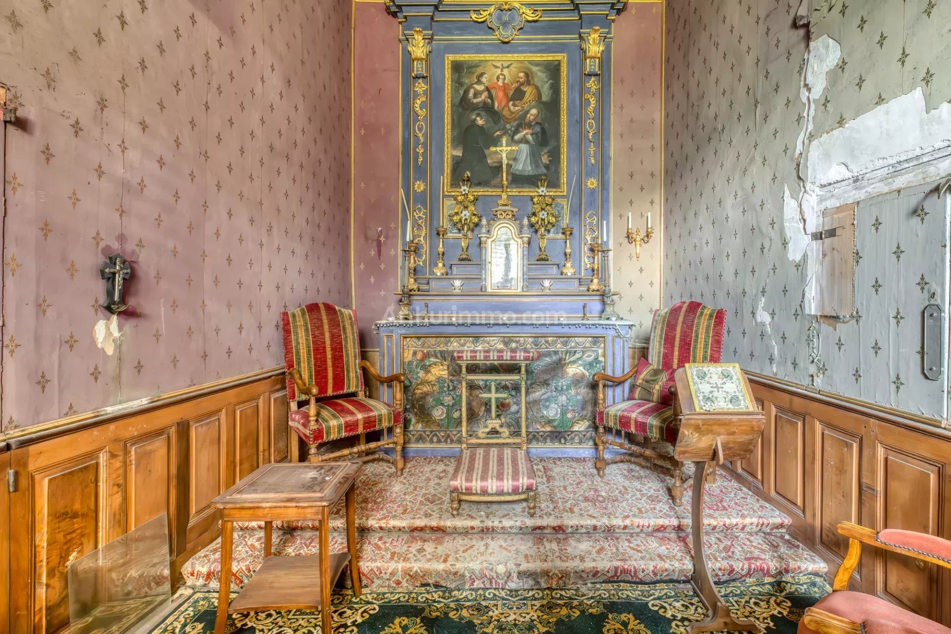 En montant les 31 marches pour accéder au 2ème étage, un palier accueille une chapelle, dont les vestiges sont toujours en place.