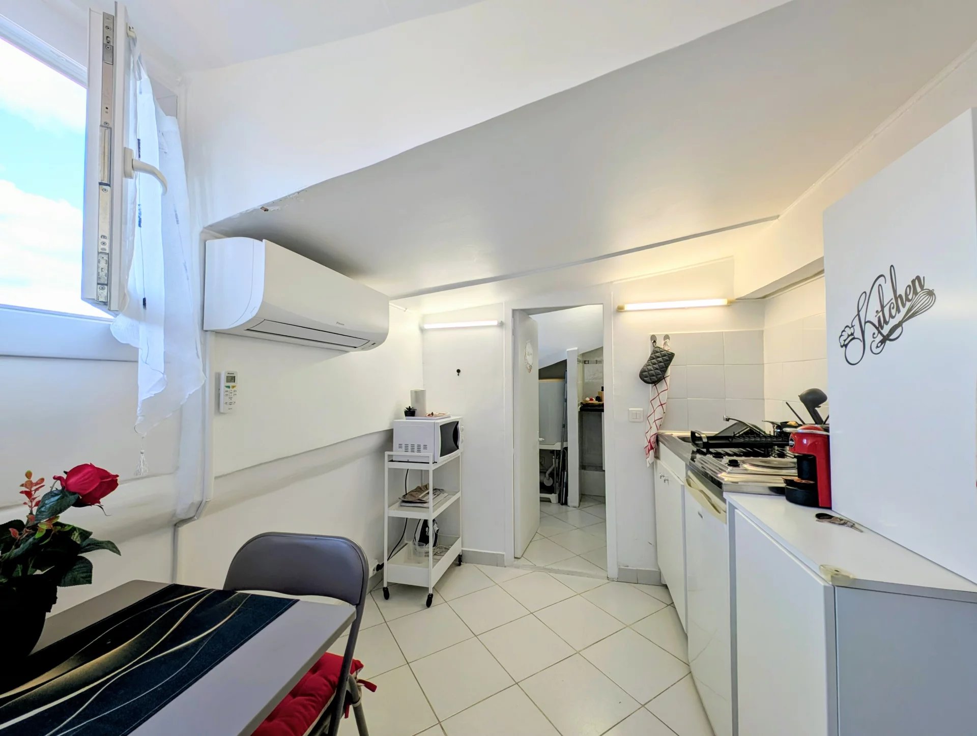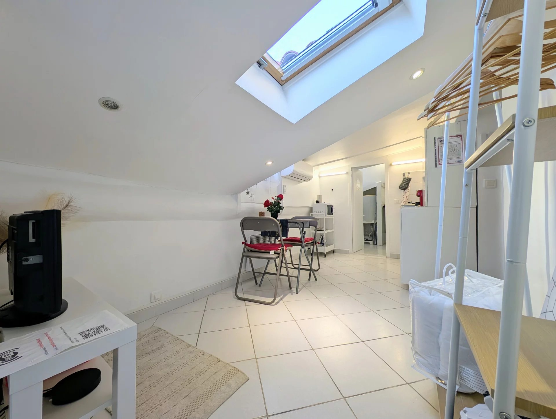 D’une surface carrez de 6 m² et de 19.50 m² de surface totale, elle bénéficie d'une agréable vue sur les toits du Vieux-Nice et d’un environnement calme, rare dans ce quartier recherché..
