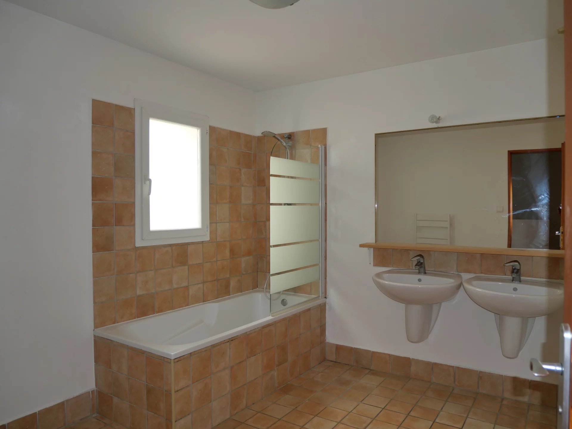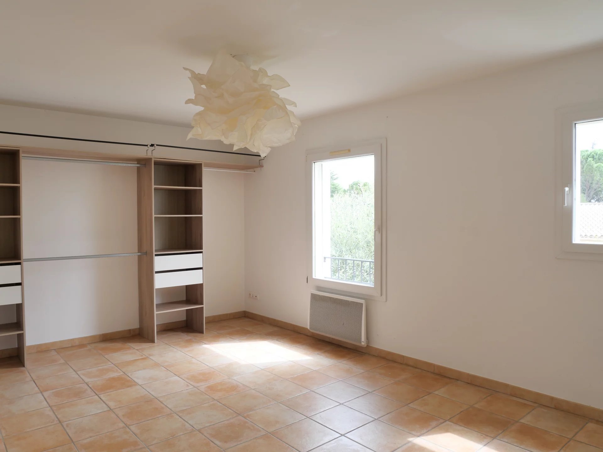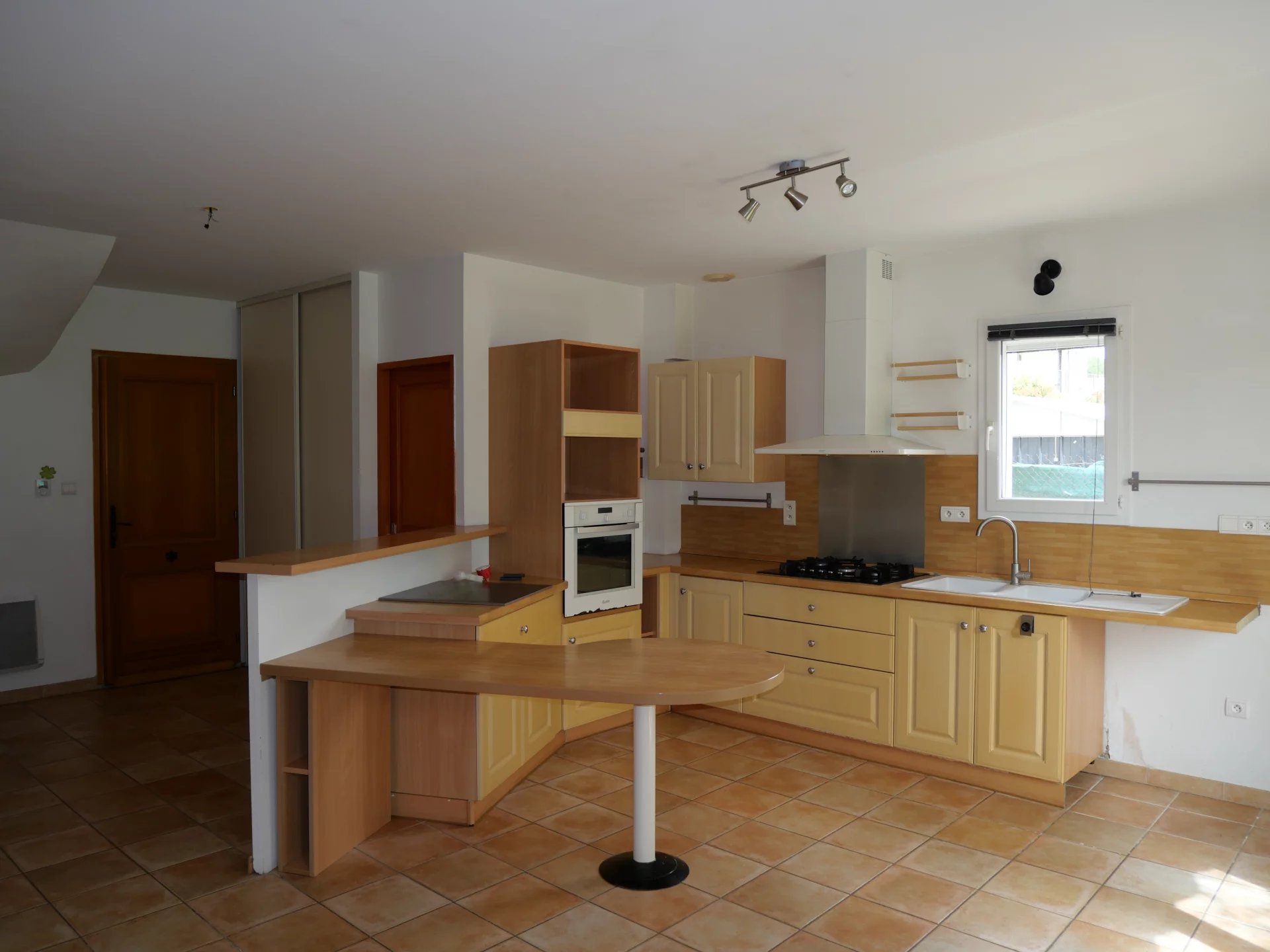 Dans le village de Saint-Hilaire-d'Ozilhan, villa d'environ 135m² à louer sur 2 niveaux se composant : d'un rez-de-chaussée avec entrée et placard, salon/cuisine aménagée et équipée (plaque 4 feux gaz, hotte, four, placards). À l'étage, 3 chambres avec placard, salle de bain/WC, placard. Jardin clos d'environ 450 m² avec garage indépendant équipé d'une porte automatique.