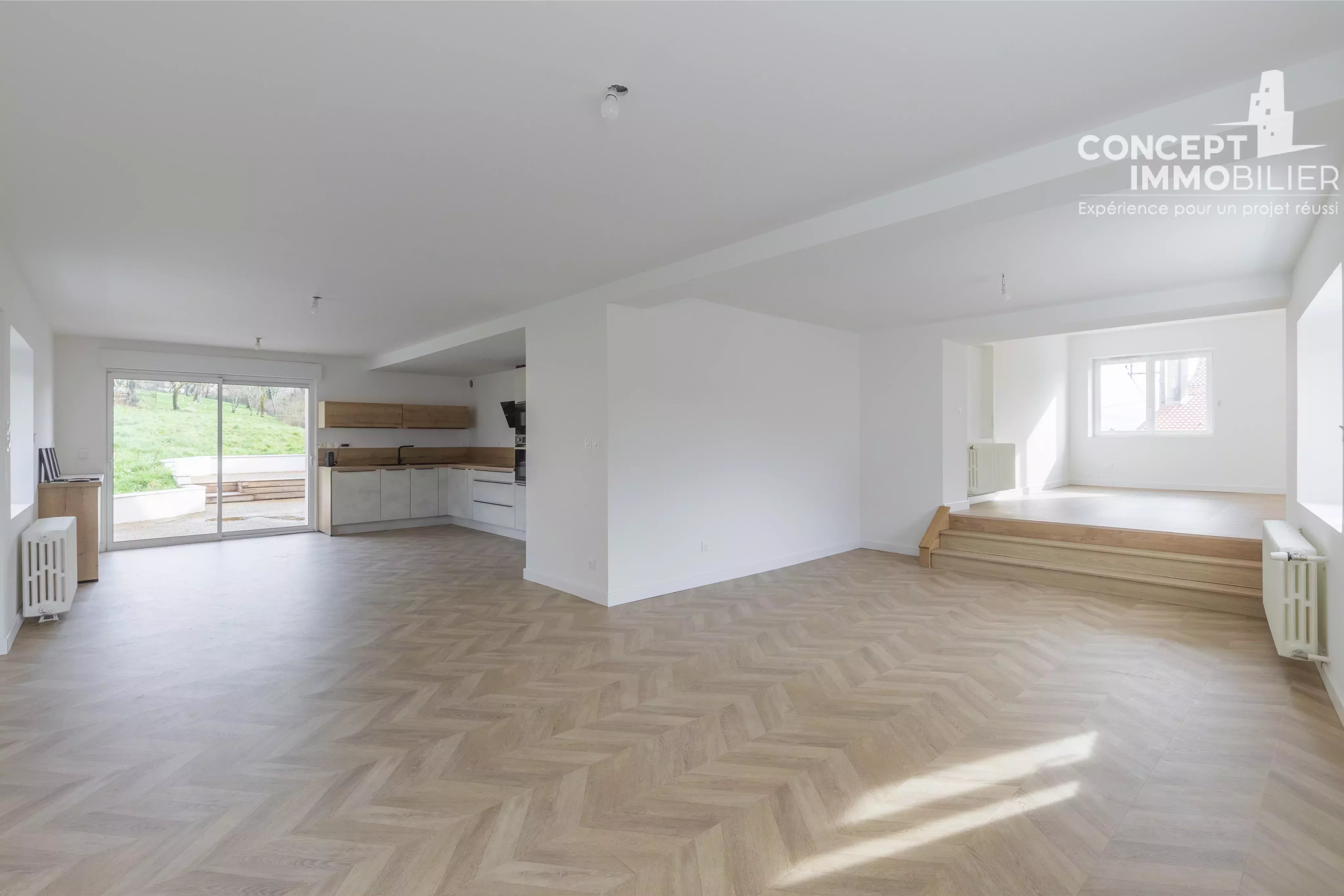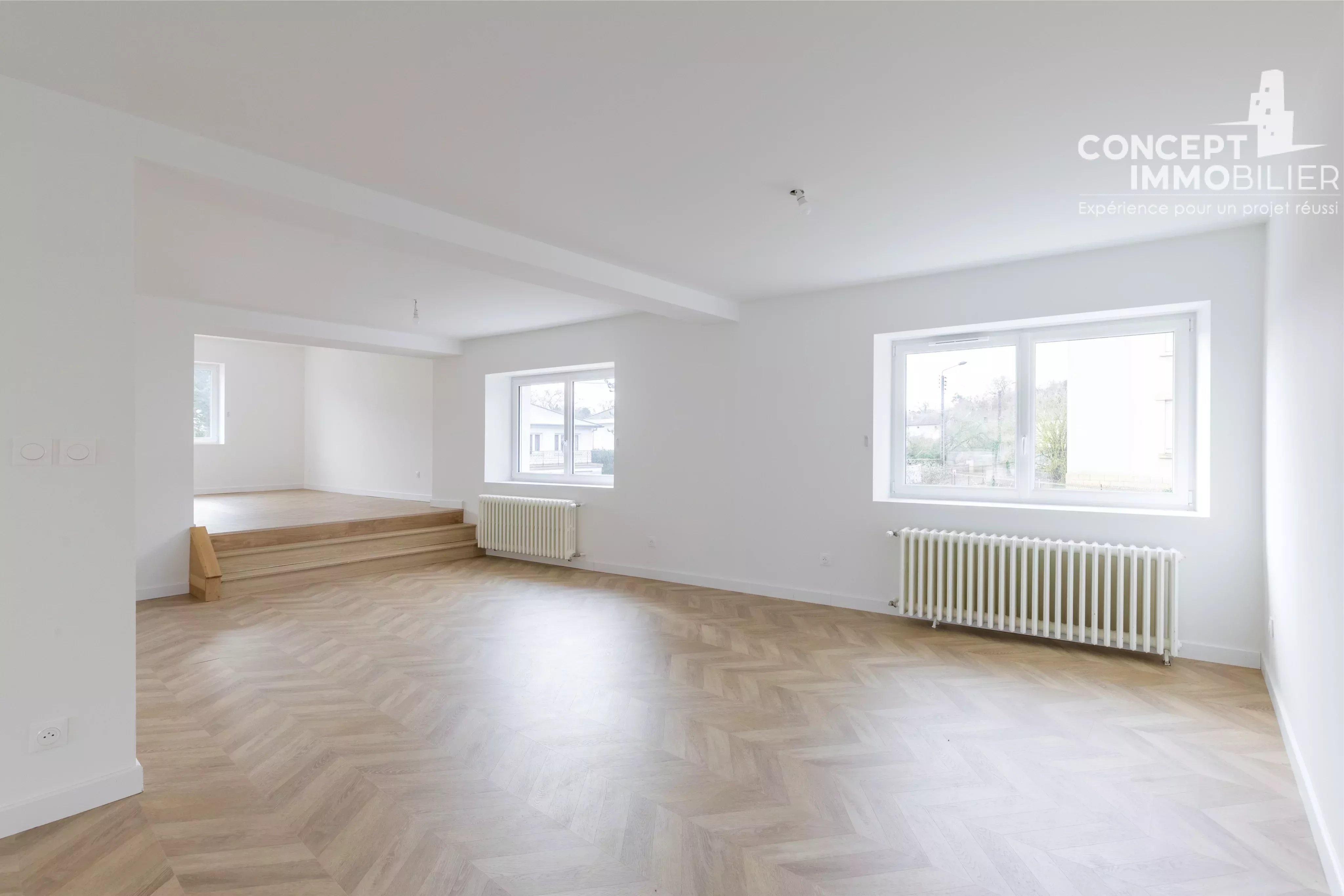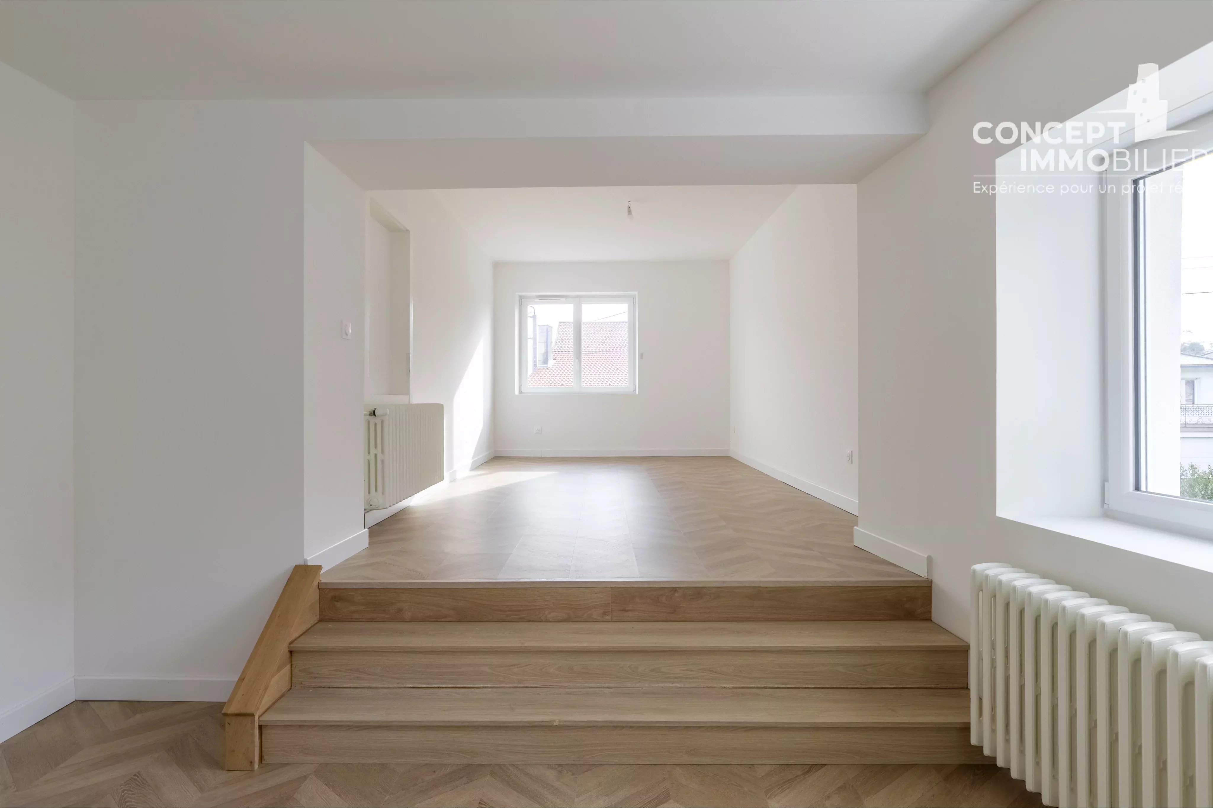 COUP DE CŒUR – Maison contemporaine 148 m² – DPE A – Thionville Situé à Guentrange, dans un environnement résidentiel calme et privilégié, découvrez cette superbe maison, entièrement rénovée de 148 m², aux prestations haut de gamme et à la performance énergétique exceptionnelle (DPE A). Dès l’entrée, la maison révèle une magnifique pièce de vie aux volumes généreux, sublimée par un élégant sol en chevrons et une luminosité naturelle remarquable grâce aux larges ouvertures donnant sur l’extérieur. La cuisine contemporaine entièrement équipée, aux finitions soignées et au design épuré (four, plaque, hotte, lave-vaisselle, réfrigérateur, nombreux rangements), s’intègre harmonieusement à l’espace salon / salle à manger, créant un lieu de vie convivial et raffiné. L’ensemble s’ouvre sur une spacieuse terrasse et un jardin, offrant un cadre idéal pour vos moments de détente en toute tranquillité. Distribution : - 3 belles chambres - 1 salle de bain avec baignoire et douche - 1 suite parentale avec salle de bain privative et accès terrasse - 1 chambre sous combles avec coin bureau/dressing et salle d’eau - 1 espace grenier Prestations complémentaires : Garage sous la maison Place de stationnement extérieure Double vitrage Rénovation complète récente Matériaux et finitions de qualité DPE : A – Performance énergétique remarquable Estimation des coûts énergétiques annuels : entre 520 € et 750 € Charges mensuelles : 50 € (taxe enlèvement ordures ménagères et entretien PAC) Disponibilité : de suite Bien rare sur le secteur, alliant élégance, confort moderne et sobriété énergétique.