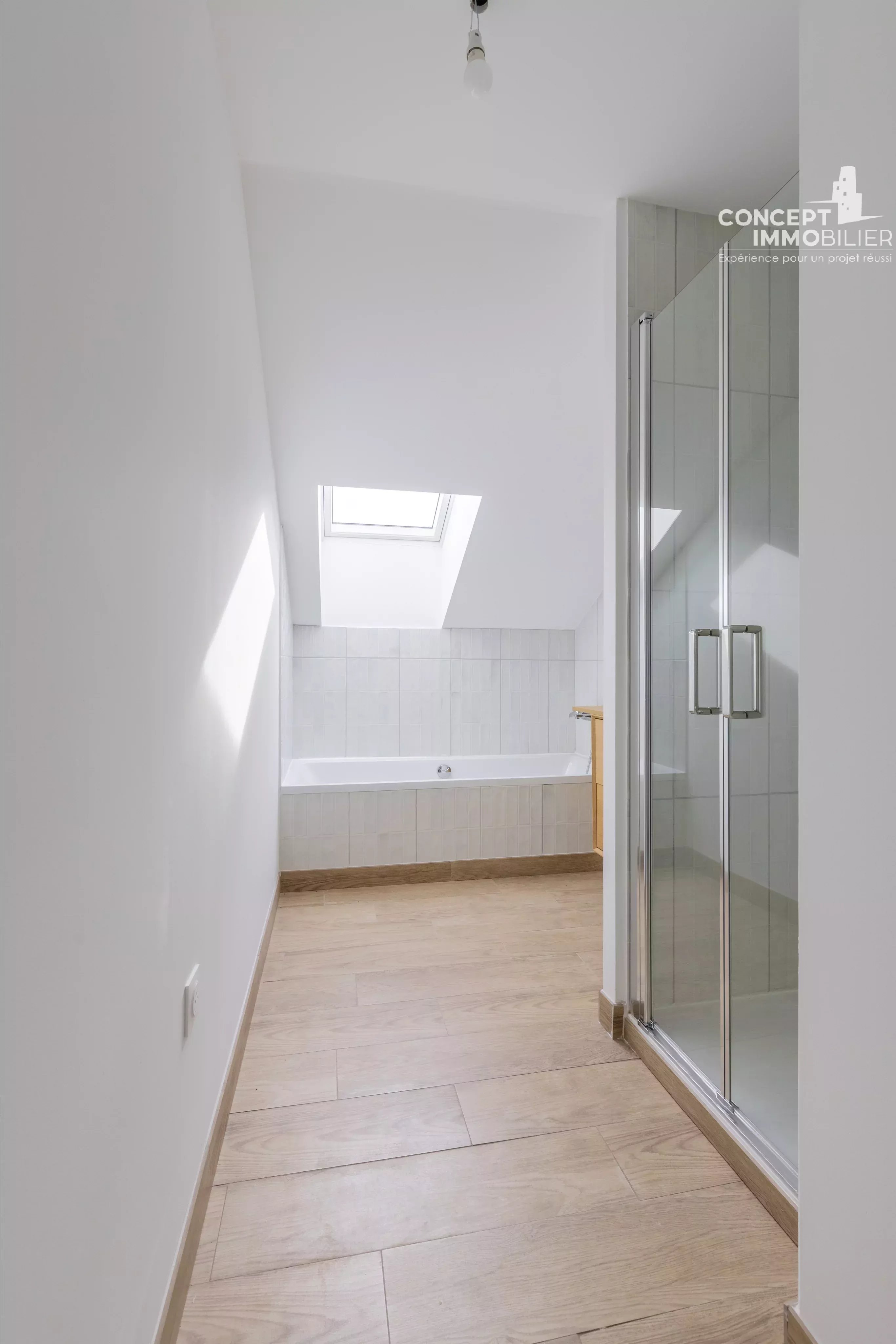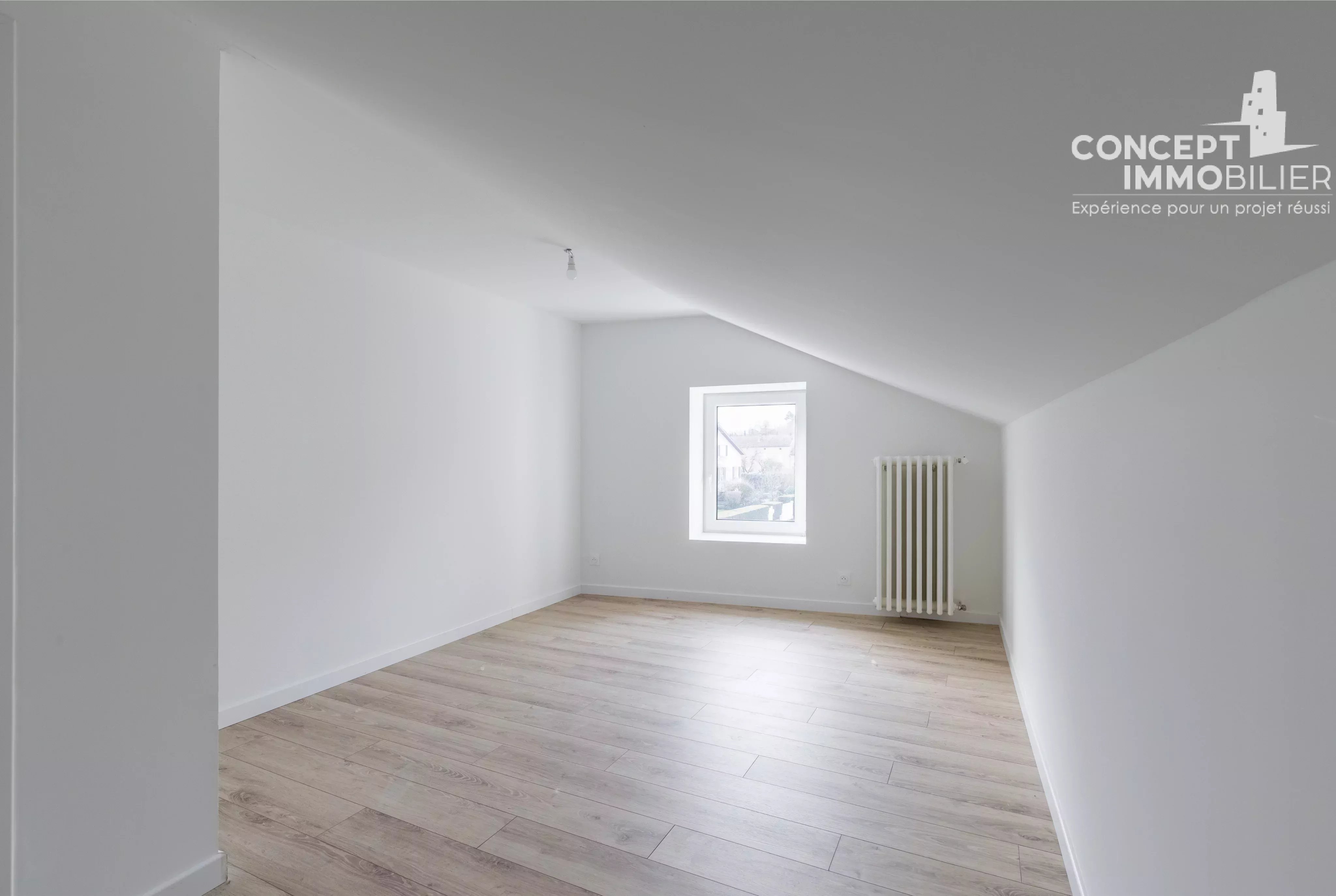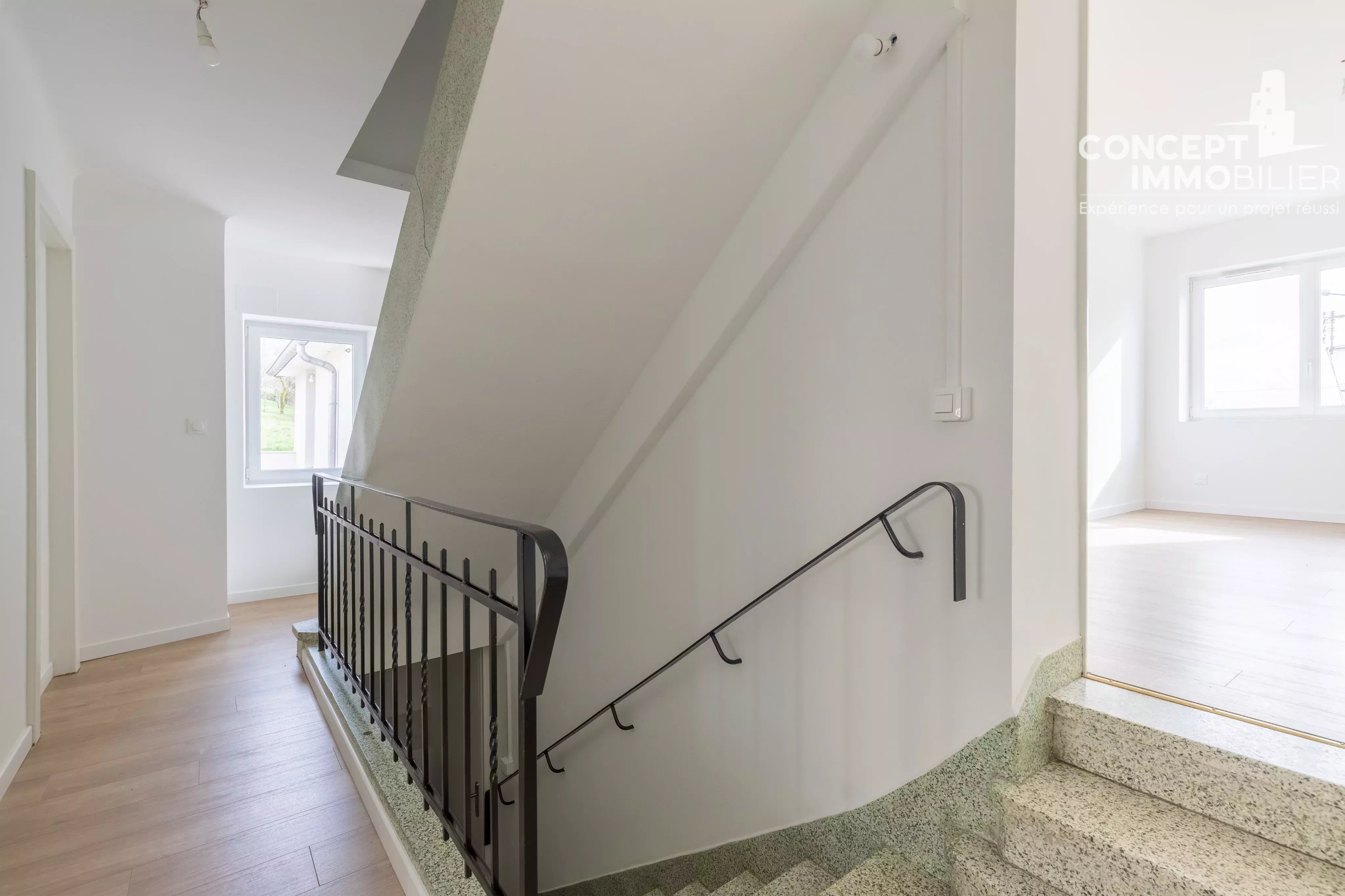 COUP DE CŒUR – Maison contemporaine 148 m² – DPE A – Thionville Situé à Guentrange, dans un environnement résidentiel calme et privilégié, découvrez cette superbe maison, entièrement rénovée de 148 m², aux prestations haut de gamme et à la performance énergétique exceptionnelle (DPE A). Dès l’entrée, la maison révèle une magnifique pièce de vie aux volumes généreux, sublimée par un élégant sol en chevrons et une luminosité naturelle remarquable grâce aux larges ouvertures donnant sur l’extérieur. La cuisine contemporaine entièrement équipée, aux finitions soignées et au design épuré (four, plaque, hotte, lave-vaisselle, réfrigérateur, nombreux rangements), s’intègre harmonieusement à l’espace salon / salle à manger, créant un lieu de vie convivial et raffiné. L’ensemble s’ouvre sur une spacieuse terrasse et un jardin, offrant un cadre idéal pour vos moments de détente en toute tranquillité. Distribution : - 3 belles chambres - 1 salle de bain avec baignoire et douche - 1 suite parentale avec salle de bain privative et accès terrasse - 1 chambre sous combles avec coin bureau/dressing et salle d’eau - 1 espace grenier Prestations complémentaires : Garage sous la maison Place de stationnement extérieure Double vitrage Rénovation complète récente Matériaux et finitions de qualité DPE : A – Performance énergétique remarquable Estimation des coûts énergétiques annuels : entre 520 € et 750 € Charges mensuelles : 50 € (taxe enlèvement ordures ménagères et entretien PAC) Disponibilité : de suite Bien rare sur le secteur, alliant élégance, confort moderne et sobriété énergétique.