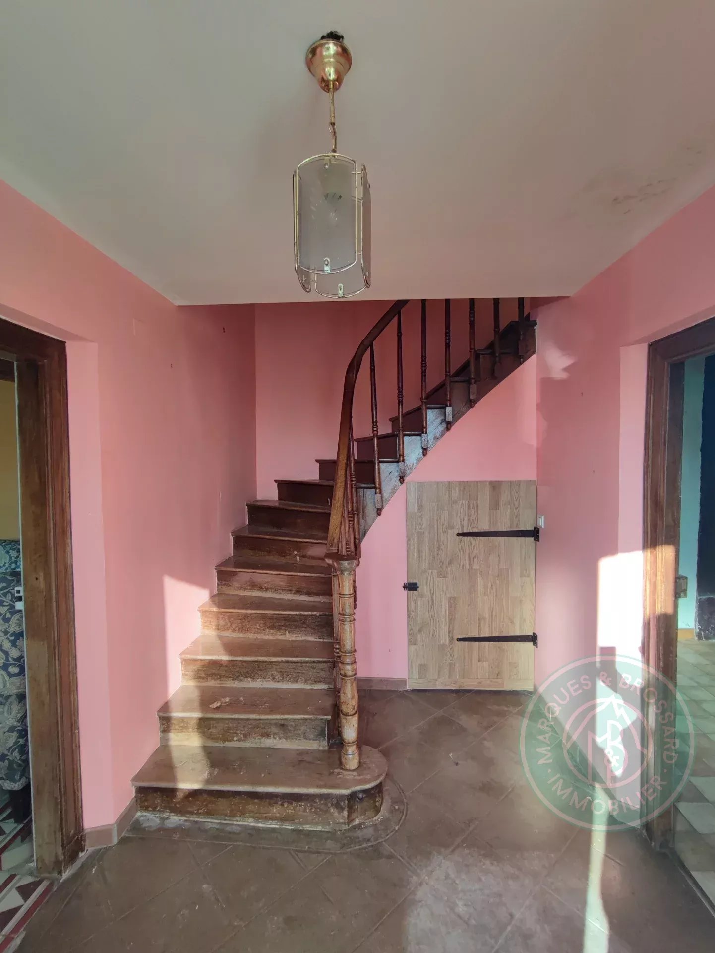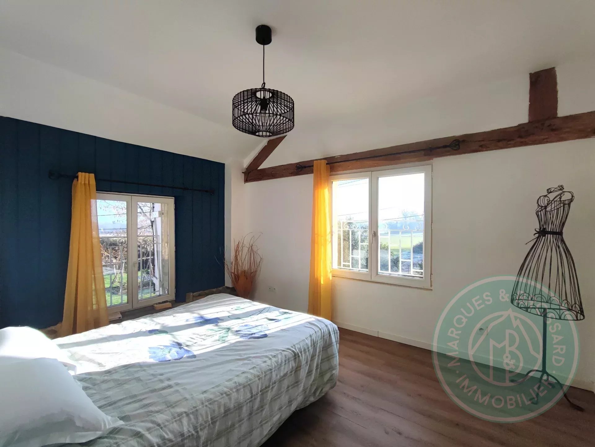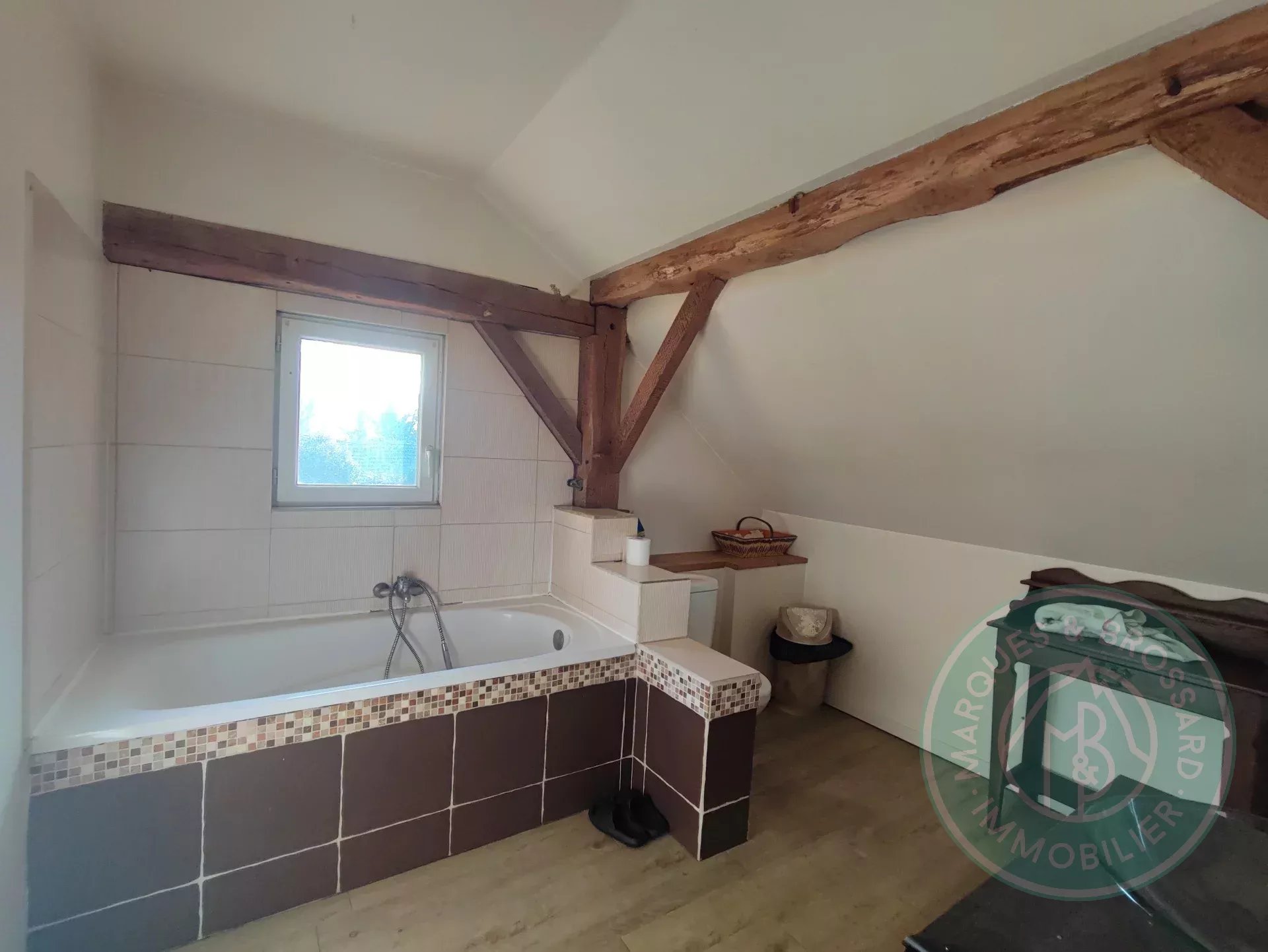 En montant les marches en chêne massif du magnifique escalier, vous arrivez sur un palier très confortable qui dessert 2 autres chambres et une salle de bains avec WC.