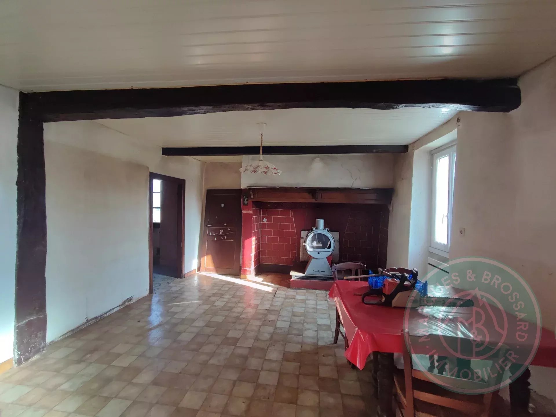 Concernant la deuxième maison d'environ 122 m², vous pourrez trouver en RDC un vaste séjour / cuisine de plus de 47 m², un cellier buanderie de 21.5 m², une salle d'eau, un WC, ainsi qu'une chambre (aujourd'hui utilisée en bureau).
