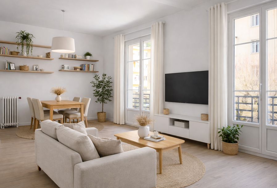 Très bel appartement de 3 pièces de 60m2 entièrement rénové. Situé à proximité de la place de l'horloge à Nice Nord, dans un quartier en évolution et très proche des commodités, commerces et services. Accessibilité facilité par la proximité de l'autoroute Nice Nord et voie rapide, du réseau de bus et du tramway à 10 minutes à pied. Le bien est agencé comme ceci : - Une entrée de 2,5m2 - Une grande chambre de 12m2 avec grande fenêtre - Une grande pièce de vie lumineuse avec séjour et cuisine ouverte de 28m2 donnant sur 2 grandes portes fenêtres reliées par un balcon - Un couloir d'accès pour la seconde partie de l'appartement - Une chambre ou bureau de 9m2 avec grande fenêtre - Une petite salle de bain avec douche à l'italienne, Wc, meuble vasque et fenêtre - Une cave dans l'immeuble L'appartement a été entièrement rénové avec soin : - Electricité - Murs/plafonds - Sols avec parquet - Fenêtres double vitrage - Volets roulants - Cuisine équipée - Salle de bain (Douche, Wc, fenêtre, meuble, cumulus) L'immeuble est en cours de ravalement, toutes les échéances sont réglées. Il n'y a donc aucun frais à prévoir sur l'appartement et pour la copropriété. Charges trimestrielles de 516 euros comprenant : - Charges générales - Ascenseur - Chauffage - Eau froide - Prestations particulières Taxe foncière : 1044 euros ATTENTION : Le DPE affiché n'est pas actualisé, le diagnostic immobilier est en cours et sera bientôt disponible.
