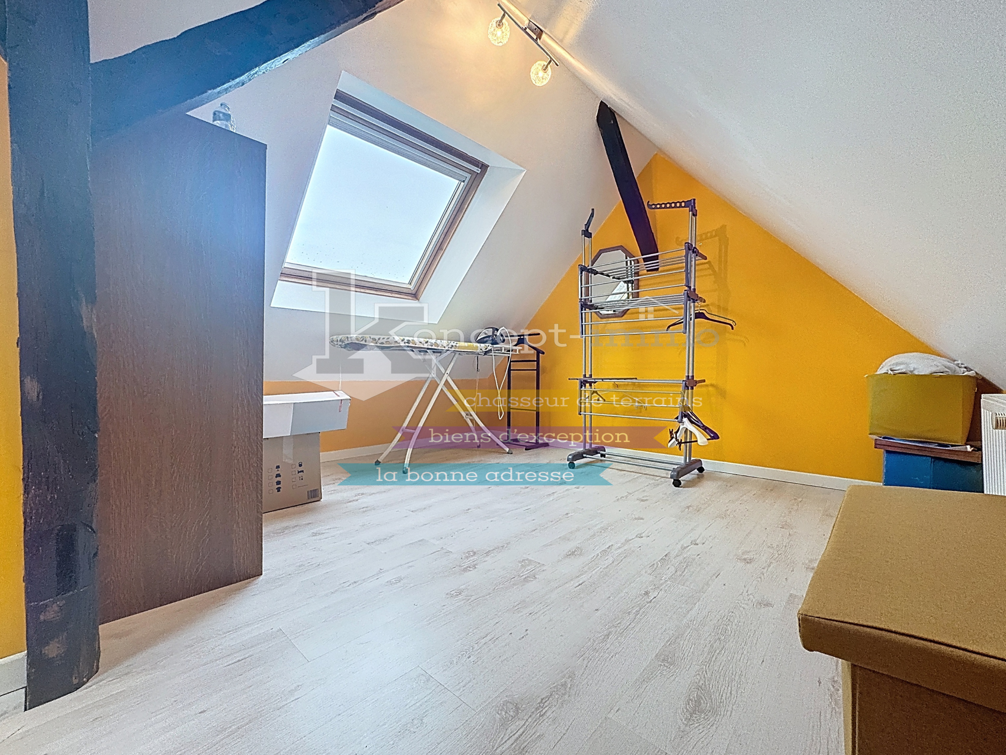 À l'étage, un palier dessert une pièce pouvant servir de chambre, bureau ou autres ainsi qu'une salle de bains avec WC.