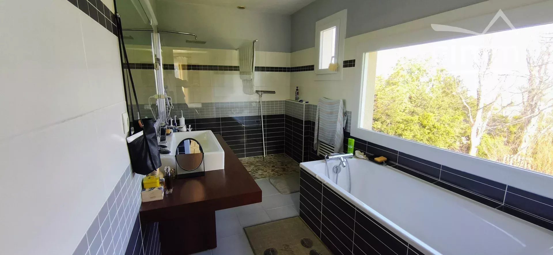 L'espace nuit est composé de 3 chambres avec 3 salles de bain toilette l'espace de vie de plus de 50 m² s'ouvre sur une vaste véranda de 25 m² , véritable trait d'union entre le confort intérieur et la nature.