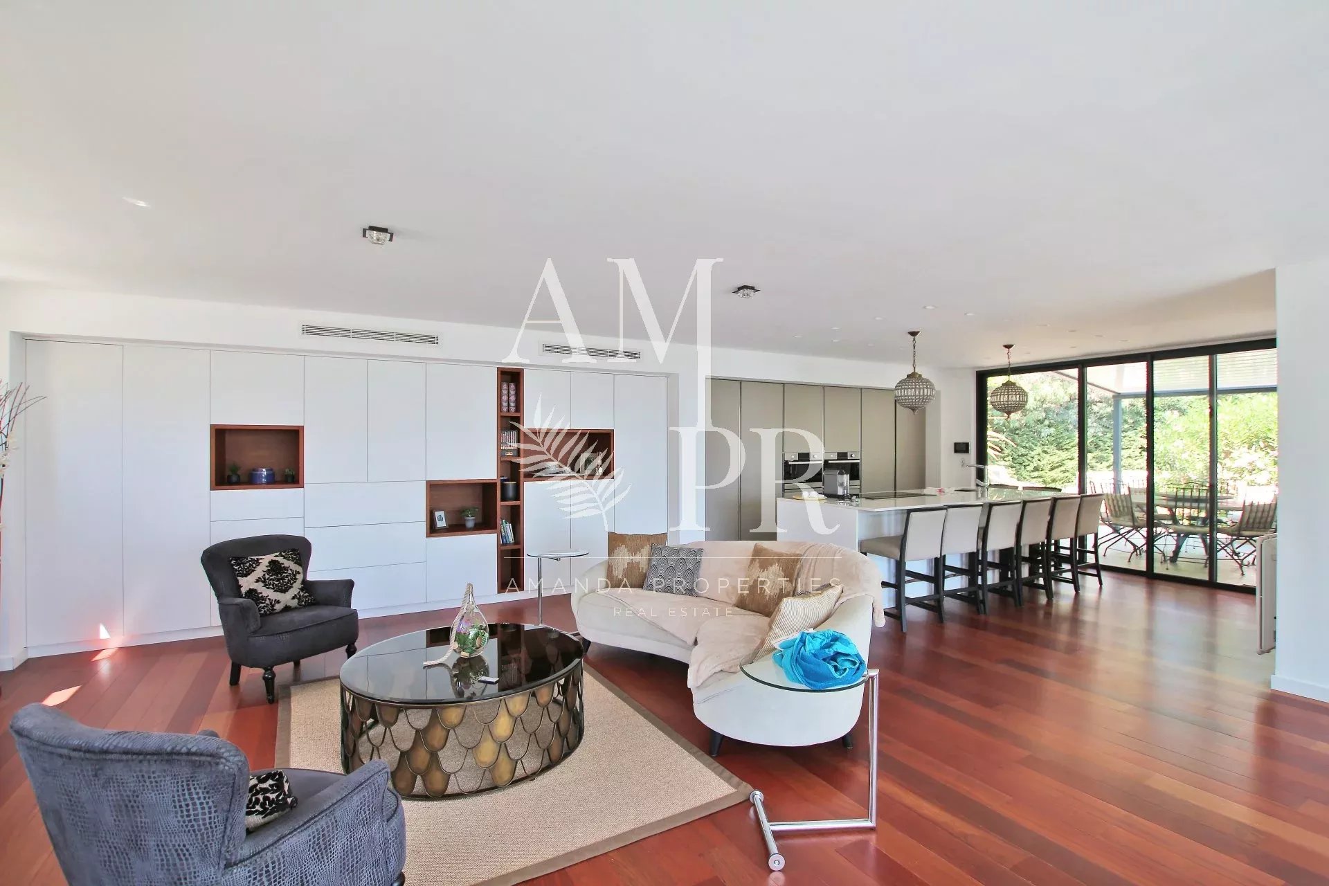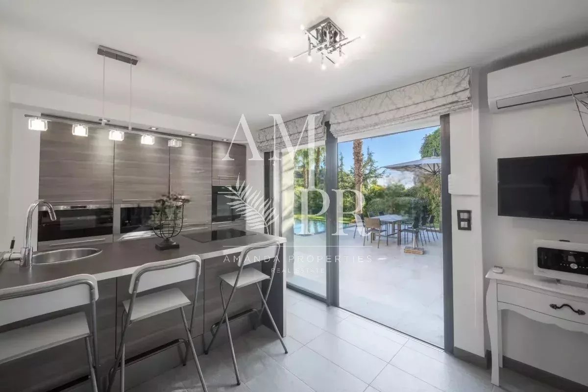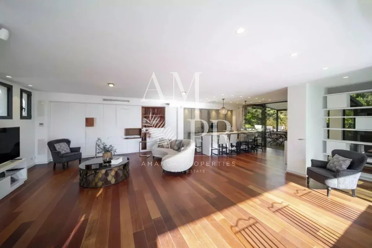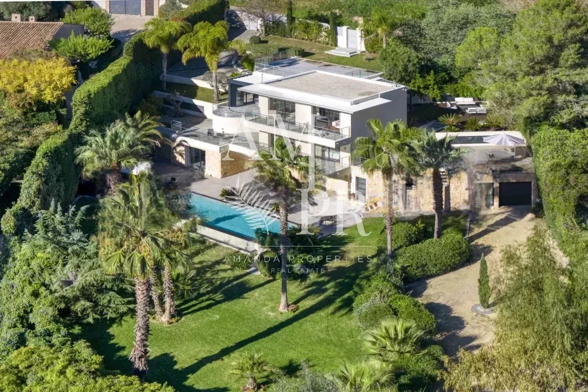 Amanda Properties propose à Cannes dans un secteur résidentiel au calme, cette magnifique villa d'architecte confortablement équipée avec des prestations de standing et piscine chauffée, offrant une belle vue sur la mer et les îles de Lérins. Nichée sur la prestigieuse colline de Super Cannes, cette villa d'architecte offre de beaux volumes intérieurs ainsi que de beaux espaces extérieures qui enchanteront vos vacances à Cannes! D'une surface de 230m², elle se compose de; - un spacieux séjour/salle à manger avec sa cuisine américaine entièrement équipée - une chambre parentale avec sa salle de bains et son dressing - une seconde chambre avec sa salle de douche - une troisième chambre avec sa salle de douche - deux studios indépendants d'une surface de 25m² Un jardin plat paysagé avec sa piscine chauffée et de nombreuses terrasses vous permettront de vous détendre et profiter pleinement du soleil de la Côte d'Azur! Grand Garage Parking pour 10 voitures Belle rentabilité locative!