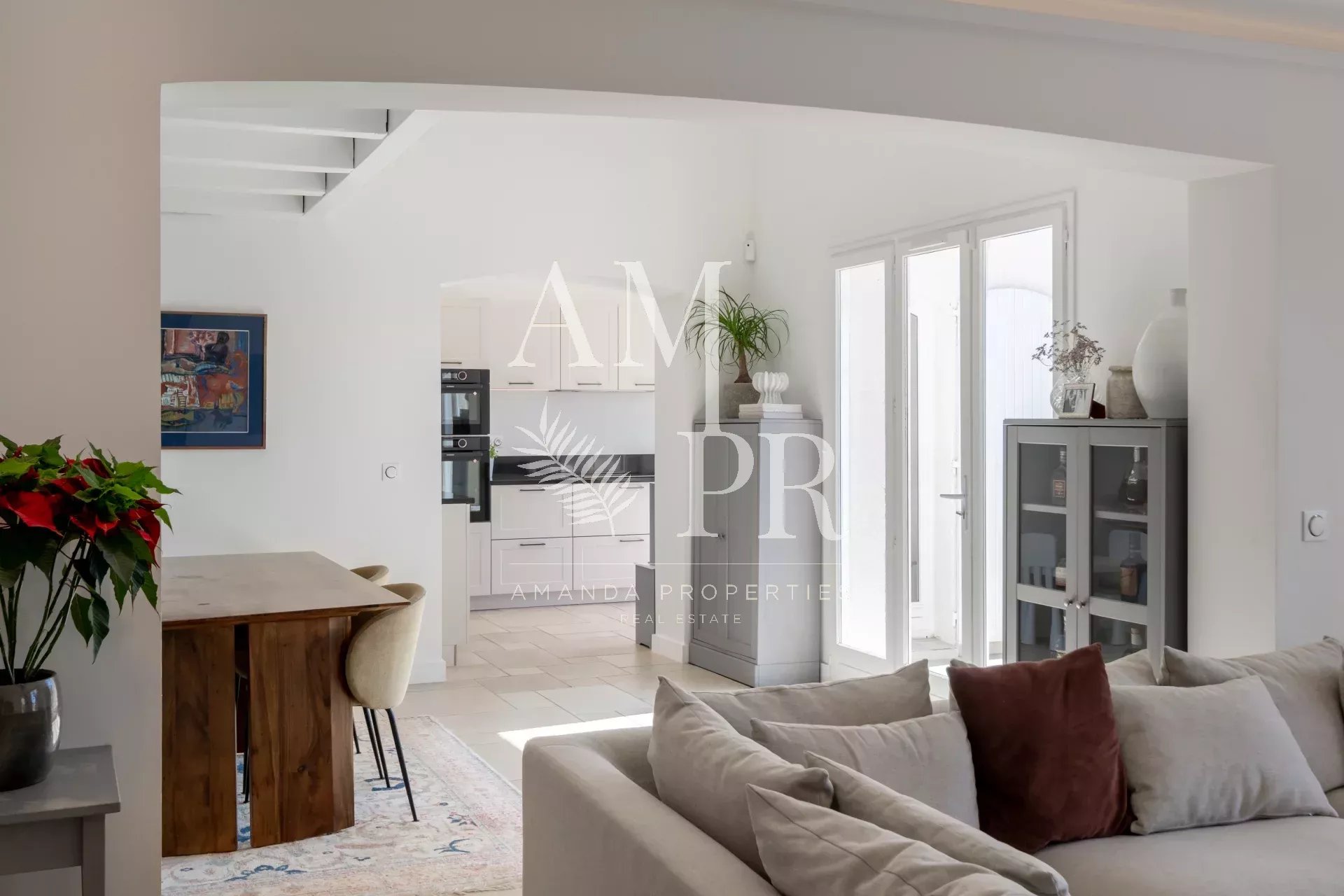 Nichée au cœur de l’un des quartiers les plus prestigieux de la Californie à Cannes, au sein d’un domaine fermé et sécurisé, Amanda Properties vous présente cette sublime villa-appartement entièrement rénovée, mêlant prestige, confort moderne et vue mer époustouflante. Située dans une copropriété intimiste de seulement 4 villas, cette propriété de 173 m² Loi Carrez offre un cadre de vie rare, à la fois exclusif et confidentiel. L’espace de vie, baigné de lumière, s’ouvre sur une magnifique terrasse de 96 m² avec une vue panoramique sur la Méditerranée. La cuisine haut de gamme entièrement équipée s’intègre harmonieusement au salon raffiné, idéal pour recevoir. Côté nuit, la villa dispose de quatre chambres, dont deux superbes suites avec salles de bains privatives et dressings, alliant élégance et fonctionnalité. Un garage privatif, de nombreux rangements ainsi que l’accès à une piscine au sein de la copropriété complètent ce bien rare. Un bien d’exception, parfait pour une résidence principale ou secondaire, dans l’une des adresses les plus recherchées de la Riviera.