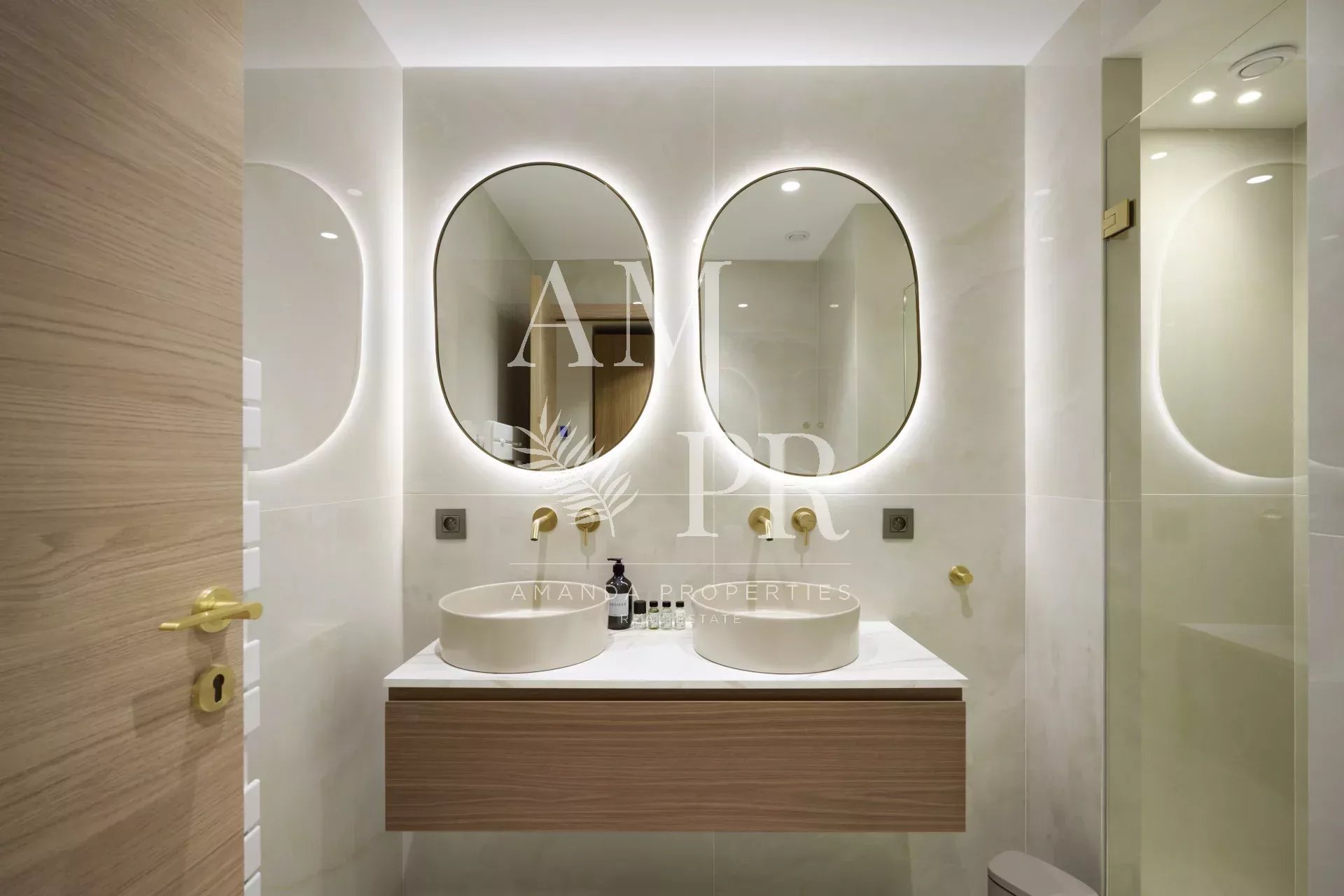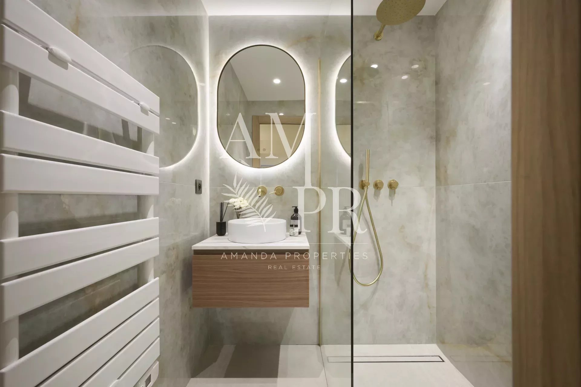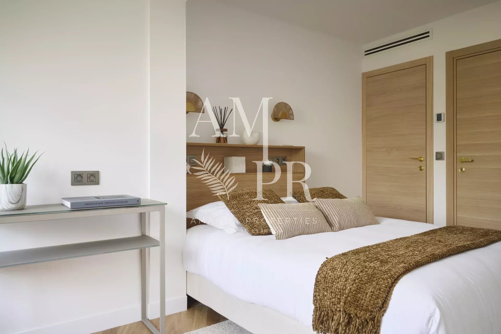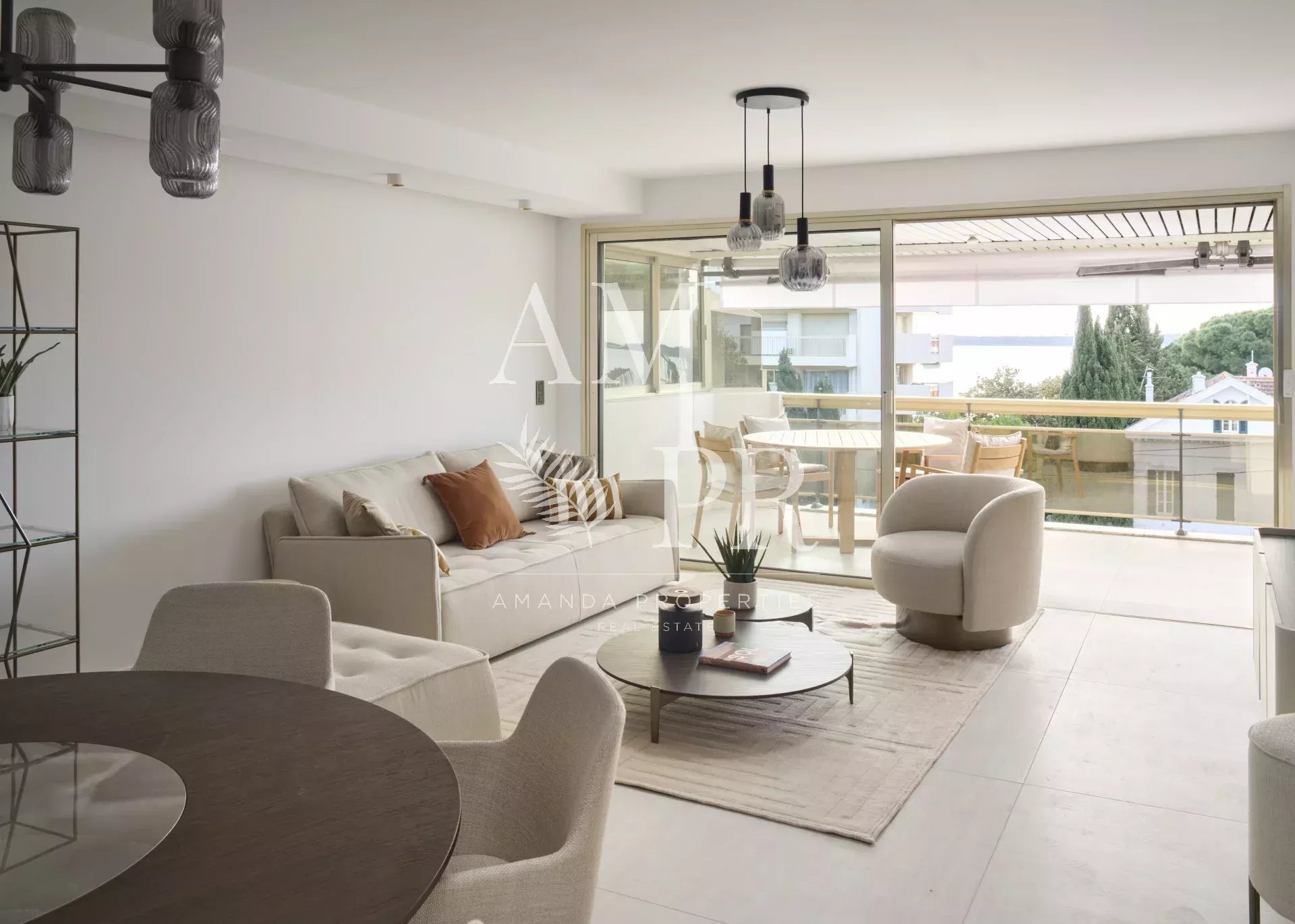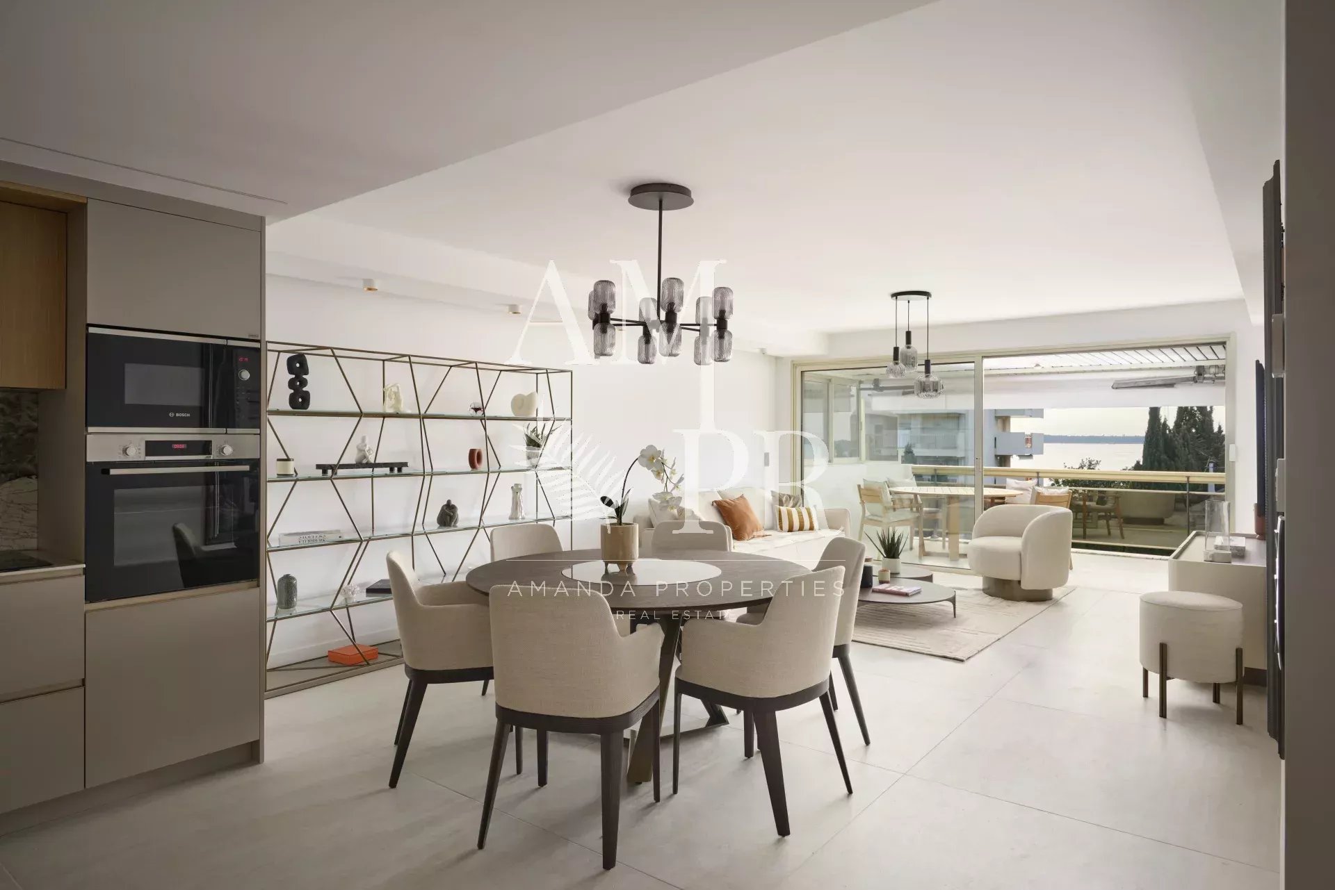 Amanda Properties vous propose dans une résidence de standing du Palm Beach, avec piscine. Ce luxueux appartement de 100m2 entièrement rénové avec des prestations de grandes qualités. L'appartement se compose d'un vaste séjour, avec une cuisine ouverte entièrement équipée, une chambre de maitre avec dressing, salle de douche, vous pouvez bénéficier de cette ravissante vue mer, deux autres chambres en suite, un toilette invité. L'appartement est vendu avec une cave une place de parking. Une place de parking en supplément du prix