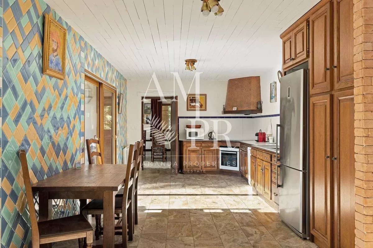 Belle et agréable propriété de style provençal comprenant une villa principal ainsi qu'une villa d'invités d'environ 520m² sur un terrain de 2500m² située dans une palmeraie, au calme absolu et offrant une vue imprenable sur la colline. La maison principale, 334m², se compose d'un vaste séjour avec cheminée, une grande cuisine entièrement équipée, six chambres dont une chambre d'enfants mansardée, une salle de bain/toilette, quatre salle de douche/toilette, deux belles terrasses à l'étage, un dressing, et une buanderie, un abri voiture et un garage. La maison d'invités, 184m², se compose d'un séjour, une salle de réception, une cuisine avec sa salle à manger, deux chambres avec chacune sa salle de douche/toilette, et une buanderie. Agréable piscine et son solarium, grands espaces et jardin arboré, vue panoramique sur les collines environnantes. Nombreux espaces de stationnement au sein de la propriété.