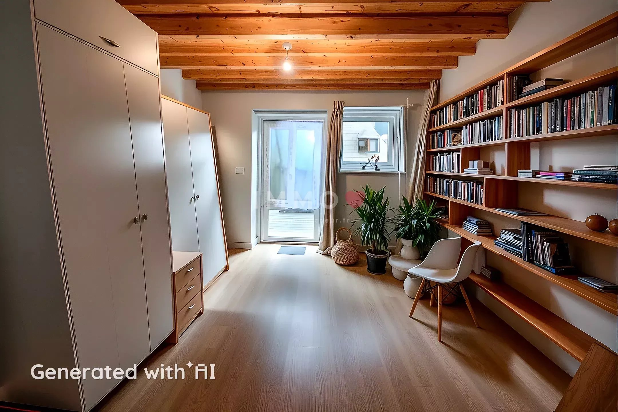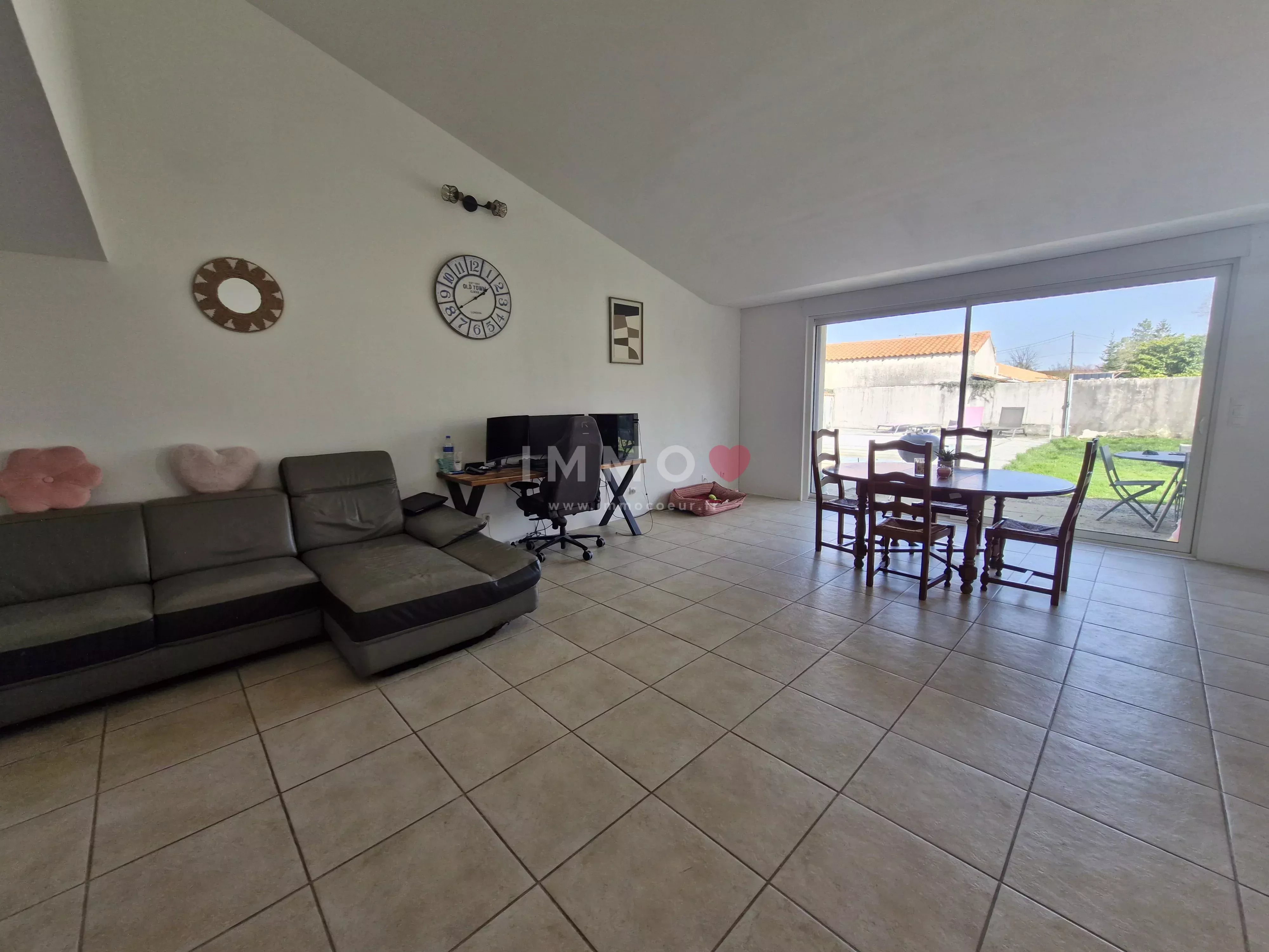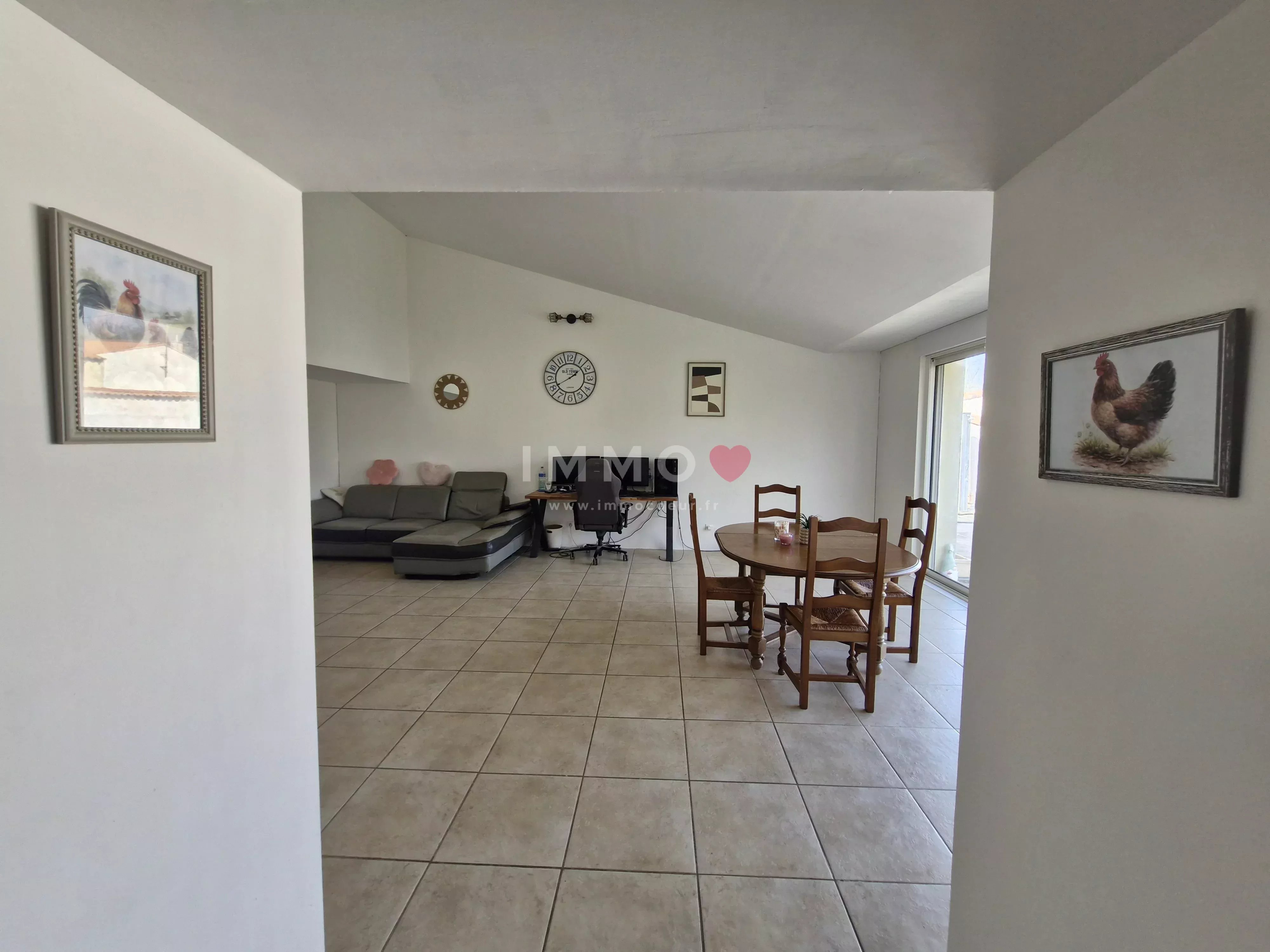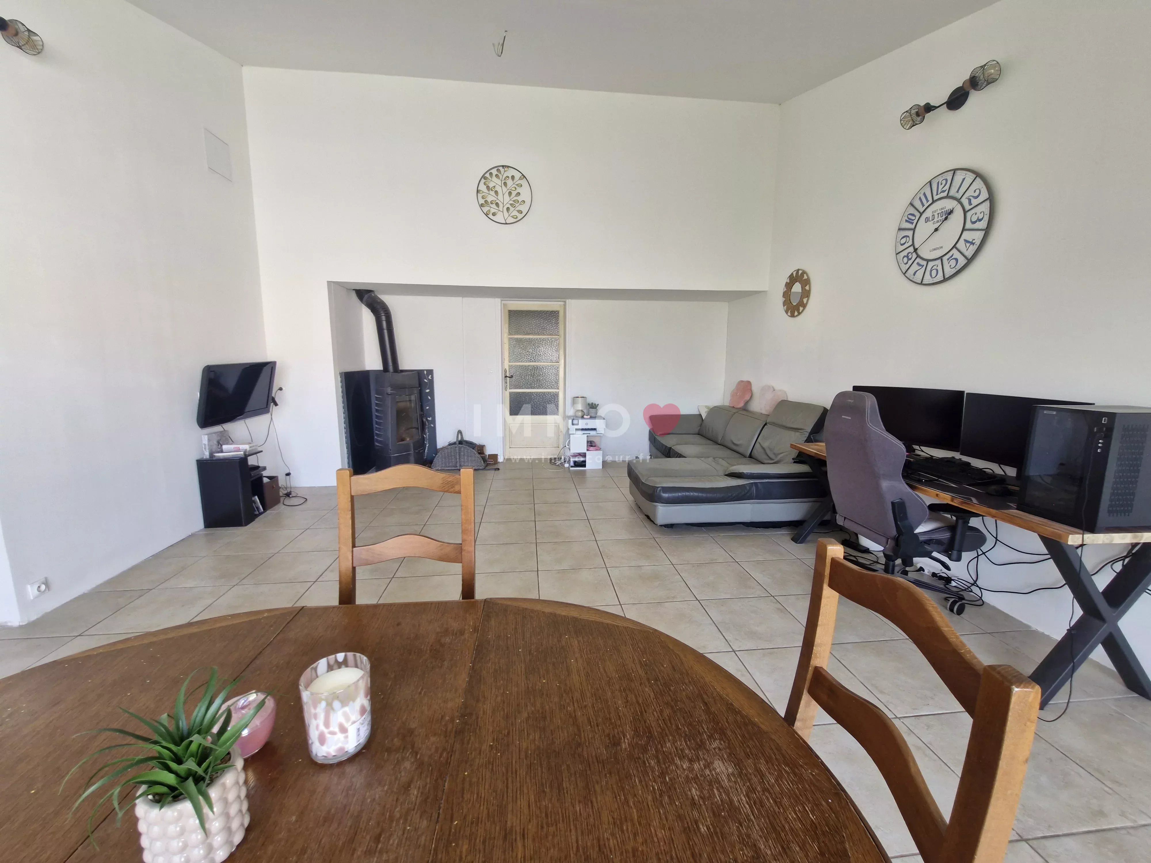 Chauffage électrique avec radiateurs à inertie, poêle à bois, ouvertures PVC double vitrage avec volets roulants électrique.