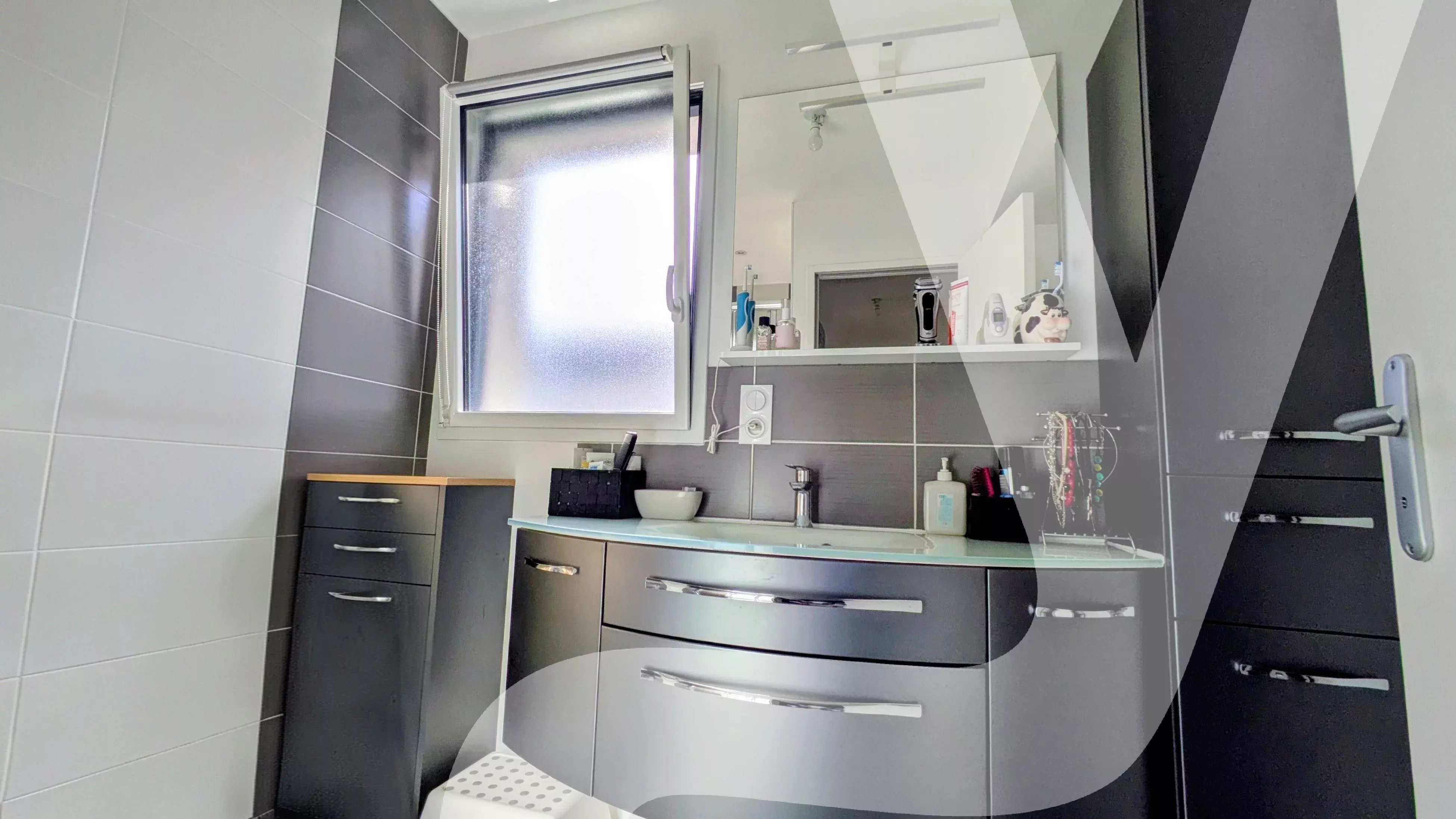 CITYLIFE vous propose en EXCLUSIVITÉ cette maison contemporaine de 108 m² construite en 2019, 5 pièces, 3 chambres, classée DPE A/A, entièrement de plain-pied, en parfait état, située au calme absolu et sans vis-à-vis à seulement 10 minutes à pied du bourg. Elle séduit par sa vaste pièce de vie baignée de lumière de 54 m² (triple exposition) avec cuisine ouverte aménagée et équipée. Un cellier attenant complète l’espace. L’espace nuit propose trois belles chambres, dont une avec placard intégré et une avec dressing, une salle d’eau moderne avec douche à l’italienne et des WC indépendants. Implantée sur une parcelle de 472 m², la maison bénéficie d’une triple exposition Sud-Est-Ouest, offrant une luminosité optimale tout au long de la journée. Le jardin avec terrasse plein Sud de 33 m² invite à la détente. Dans le grand garage de 29 m² avec porte motorisée vous trouverez un espace cuisine (plaques, hotte et évier) ainsi qu’un grenier facilement accessible depuis le garage viennent parfaire l’ensemble. Les + : ✔ Excellente performance énergétique (A/A) ✔ Pompe à chaleur ✔ Maison non mitoyenne et de plain-pied ✔ Volets roulants électriques ✔ Menuiseries aluminium ✔ Proximité immédiate des commerces, transports et écoles Une maison récente, fonctionnelle et économe en énergie, prête à accueillir votre projet de vie.