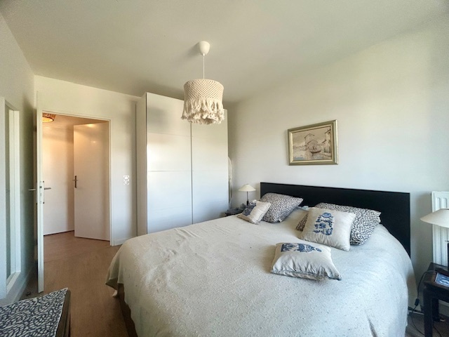Une entrée avec placard, une pièce de vie lumineuse d'env. 21 m2, avec cuisine ouverte aménagée et équipée, le tout donnant sur un balcon, Un dégagement, deux chambres agréables de 11.6 m2 et 10.1 m2 avec placards, une salle de bains spacieuse, et un WC séparé.
