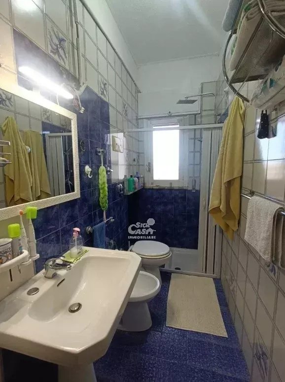 APPARTAMENTO - 150 MQ.CA., L'appartamento sito in un edificio condominiale nella via delle Sirene, piano alto, lato est, è composto da 4 vani, oltre gli accessori (cucina, un ripostiglio, due bagni, due vani ingresso e un corridoio) ed è servito da due ingressi prospicienti il vano scala con pianerottolo. L'appartamento, ampio mq 160, è molto arieggiato e soleggiato in quanto esposto a sud-est e provvisto di ampie terrazze, sia sul lato cucina con vista sul centro storico, sia sul lato soggiorno-salotto da dove si gode un bel panorama sul lungomare e sul porto. E' dotato di impianto di riscaldamento autonomo, con caldaia a gas che alimenta anche l'acqua sanitaria (classe energetica G ). E' dotato anche di un posto per auto di media cilindrata, ubicato nel piano seminterrato dello stesso edificio condominiale. .APE Classe di prestazione energetica G Rif. 8022