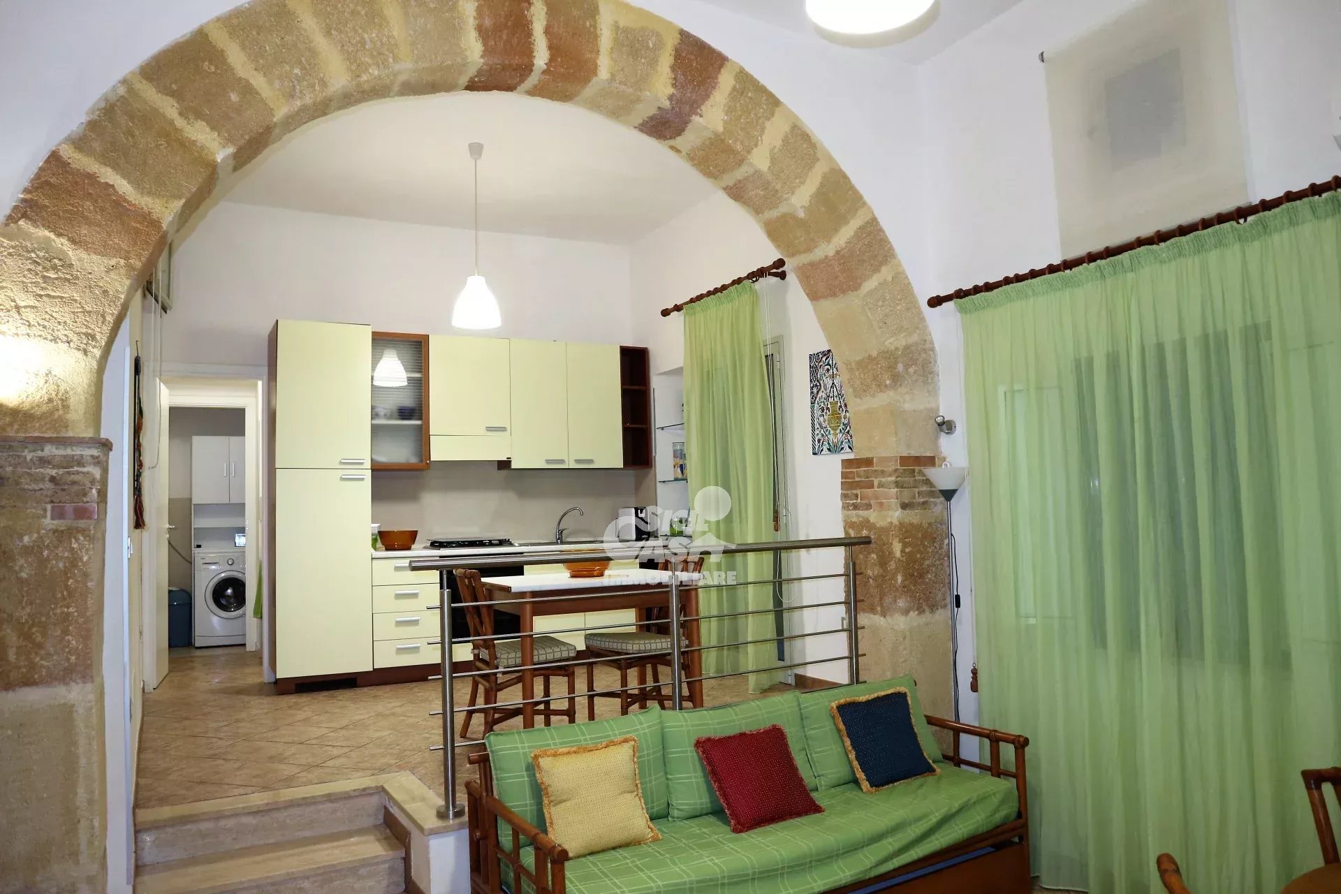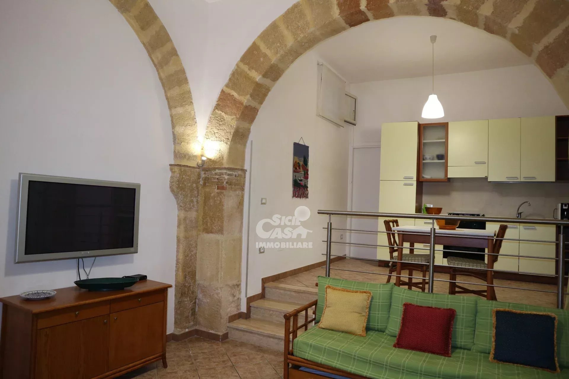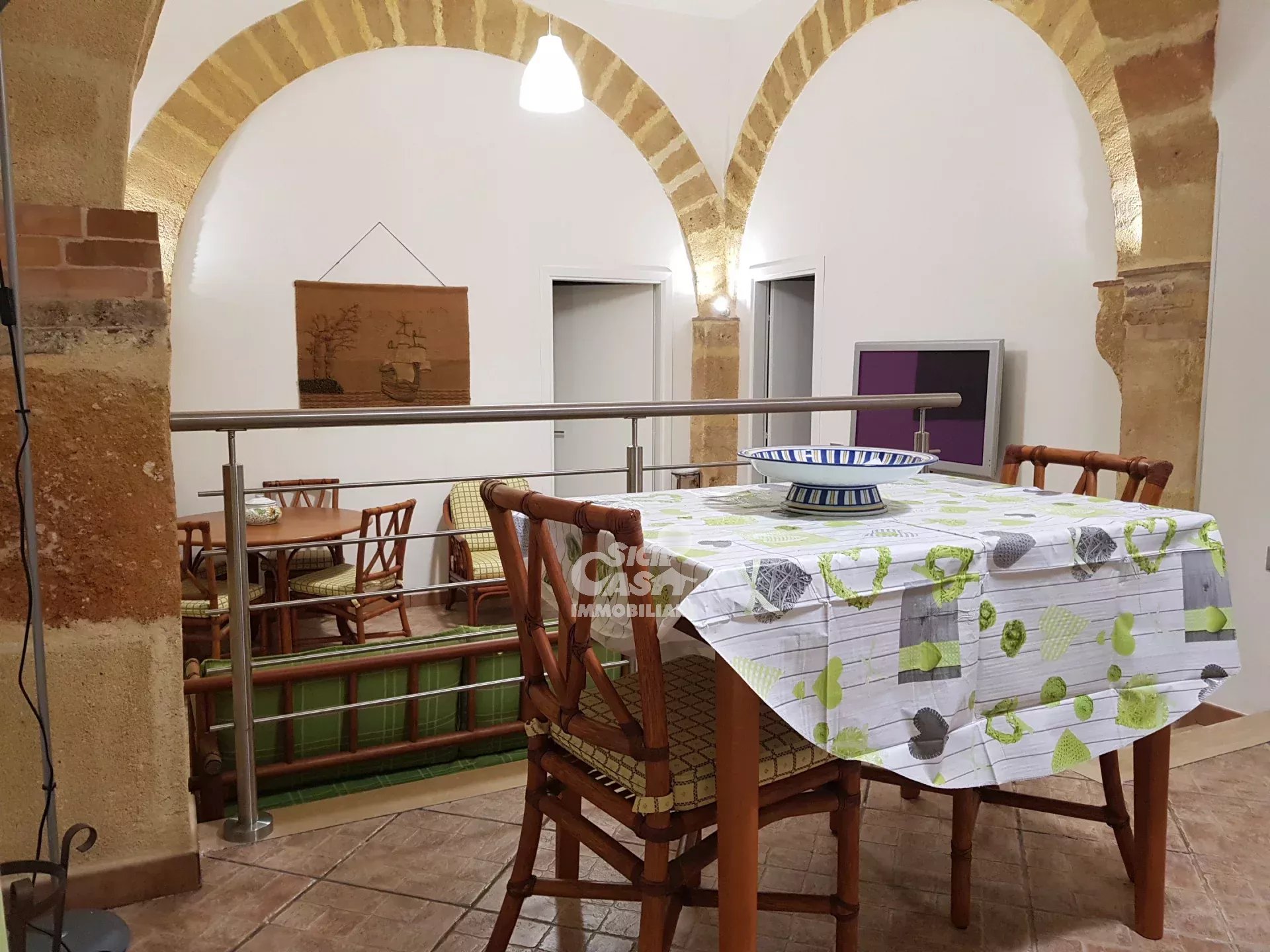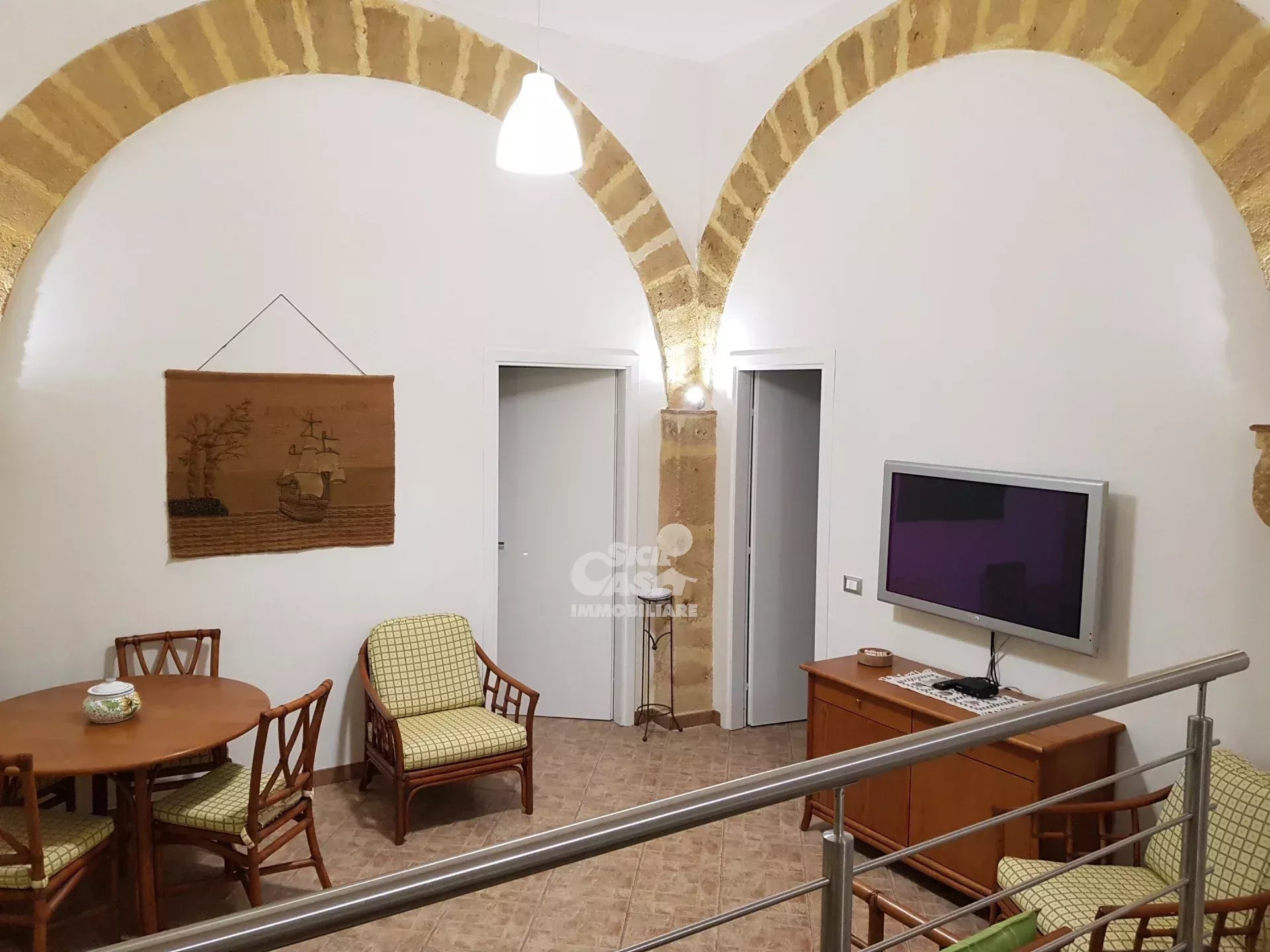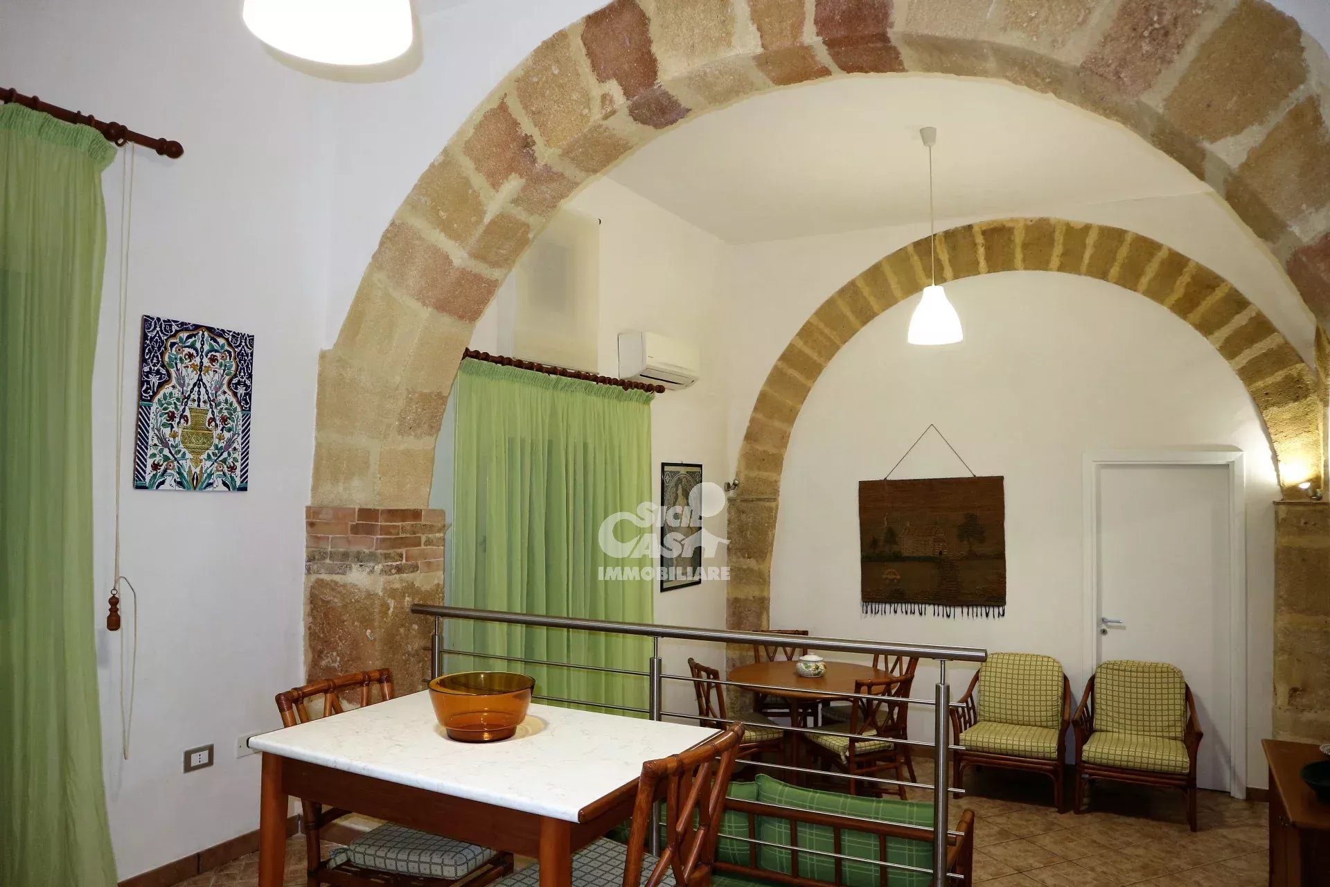 QUADRILOCALE TILDE - VIA PIPITONE MARSALA Nel pieno centro storico di Marsala a pochi metri dalla chiesa del collegio dei gesuiti, fa parte di un edificio d'epoca, si accede al trilocale attraverso un androne privato e lo stesso è composto da cucina abitabile, ampio soggiorno con comodo divano letto, due camerette e una camera matrimoniale, bagno con ampio box doccia, lavanderia e garage per bici o moto. Casa "TILDE" è arricchito da suggestivi archi in tufo a vista, da tetti alti, è arredato con ottimo mobilio, è dotato di aria condizionata. ristrutturato per renderlo più vicino alle esigenze degli ospiti senza perdere però le sue caratteristiche originali. Casa "TILDE" non è un piccolo hotel , ma una vera e propria casa dove gli ospiti possono vivere la loro permanenza residenziale o vacanza a contatto con la realtà locale del centro storico, dove possono rilassarsi e godere di un po’ di relax nella privacy. Gli ambienti rifiniti con stucchi bianchi, archi in tutto, bagno in marmo con ampio box doccia, lavanderia. Il soggiorno dispone di divano letto, l'arredamento tiene in considerazione l’ambiente elegante e il comfort. Alcuni cenni sulle dotazioni: cucina attrezzata con elettrodomestici.
