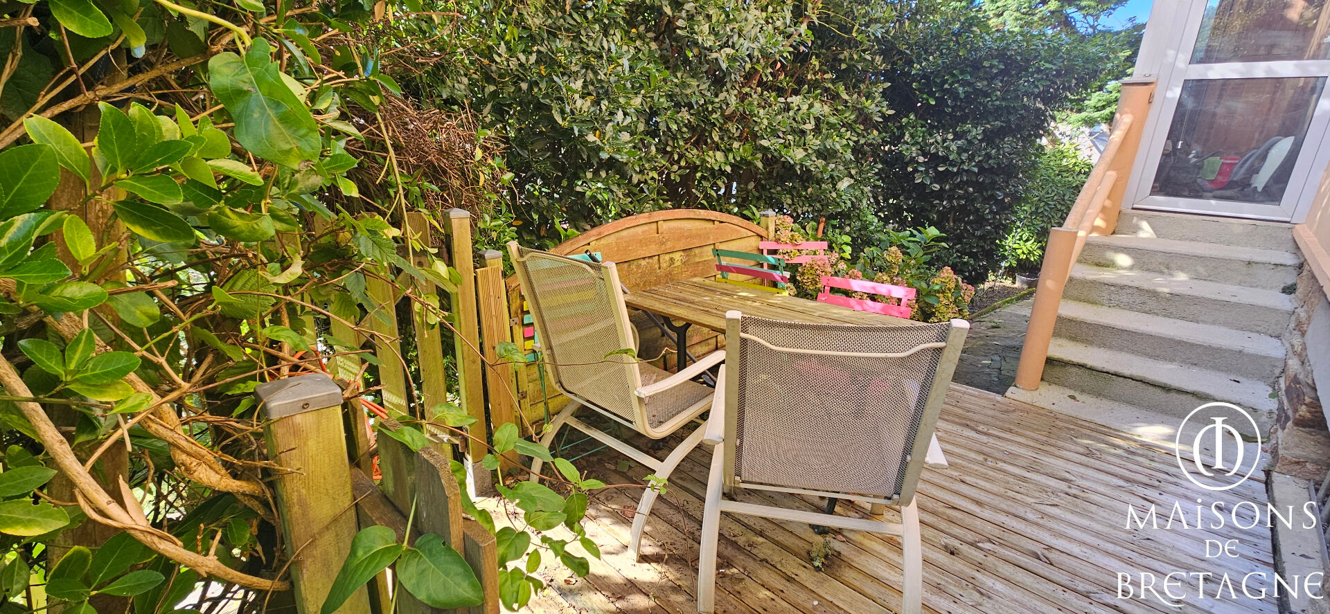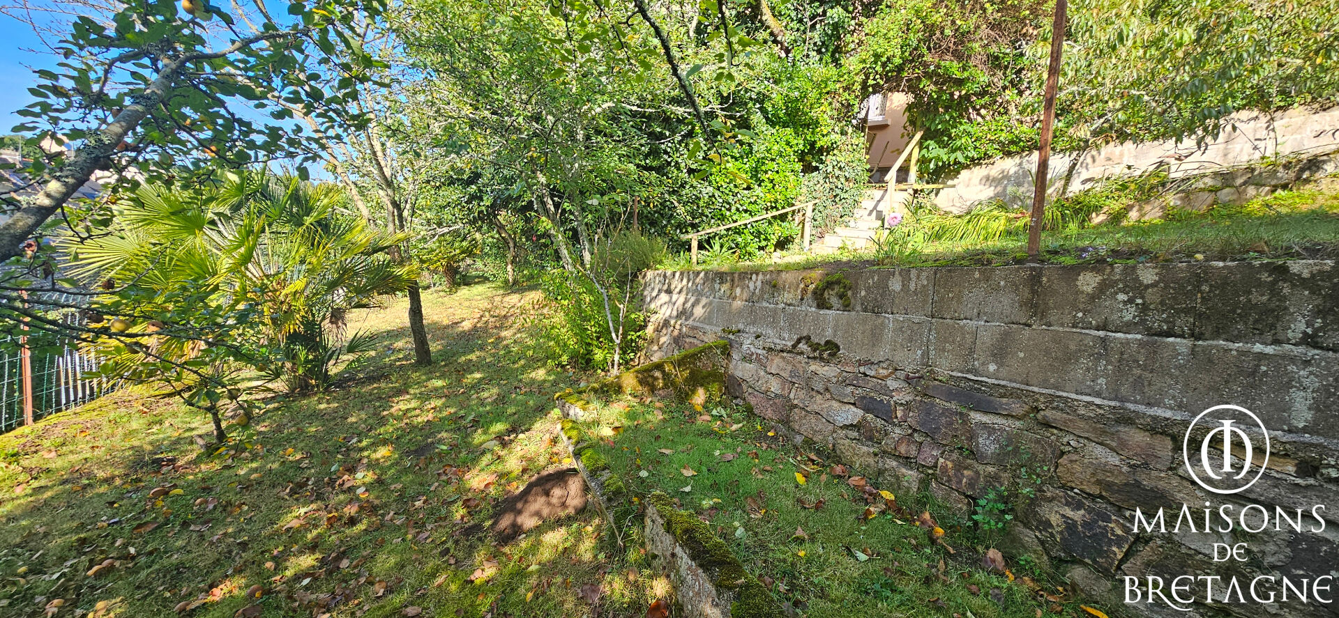 Seulement chez Maisons de Bretagne. A 500 mètres du centre-ville et des commodités, dans un environnement calme et recherché, cette maison en pierres sur sous-sol total offre un beau potentiel après travaux. L'accès se fait par une entrée véranda ouvrant sur une cuisine-salle à manger ainsi qu'un salon-séjour. A l'étage, le palier dessert une salle de bains avec WC et deux chambres avec placards. En rez-de-jardin, le sous-sol comprend une salle d'eau avec WC ainsi qu'une petite extension aménagée en chambre avec sanibroyeur. Le jardin arboré et aménagé en terrasses propose un agréable aperçu sur Pont-Aven. Bien adapté à un projet de résidence principale, secondaire ou locatif, à proximité immédiate des services accessibles à pied. A découvrir ! (5.00 % honoraires TTC à la charge de l'acquéreur.)