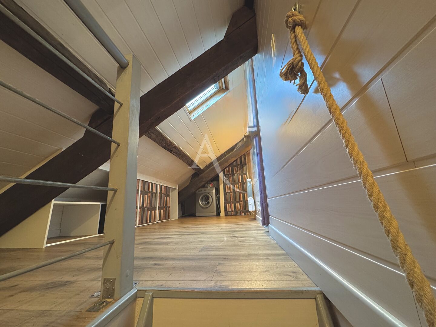 A proximité immédiate de l'Eglise Notre-Dame-de-Bon-Port, rue Mazagran, au 4ème et dernier étage d'un immeuble ancien, ce T2 de 53 m² habitables (32 m2 Carrez) offre de beaux volumes parfaitement exploités. Il se compose d'une entrée, d'un salon-séjour, d'une cuisine équipée séparée avec possibilité d'ouverture, d'une salle de bains, d'une chambre en duplex, et d'un WC. (8.00 % honoraires TTC à la charge de l'acquéreur.) Copropriété de 9 lots (Pas de procédure en cours). Charges annuelles : 725 euros. Aurélia LE GUELLEC (EI) Agent Commercial - Numéro RSAC : - .