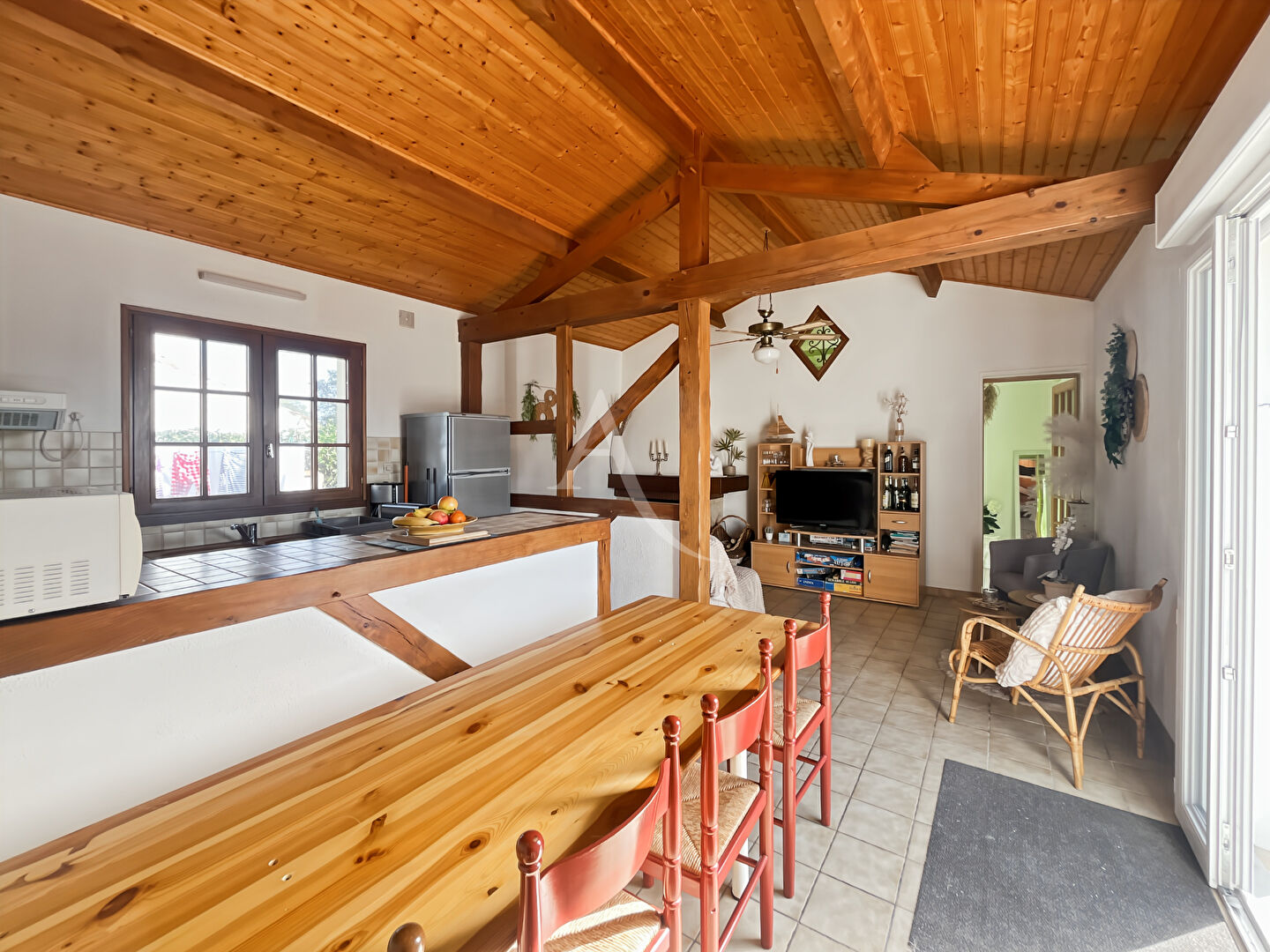 UNE EXCLUSIVITÉ LADRESSE Bienvenue dans cette maison de plain pied, de 3 pièces, dans le quartier du Bois Giraud à Notre-Dame-de-Monts, en Vendée. Avec ses 2 chambres dont une avec mezzanine et d'environ 58 mètres carrés de surface habitable, elle offre un espace de vie lumineux et accueillant, avec espace cuisine et coin salon avec une cheminée. Vivez au coeur de la nature, entouré par la forêt domaniale des Pays de Monts, à seulement quelques minutes à pied des plages de sable fin. Imaginez-vous prendre votre café du matin sur la terrasse, bercé par le chant des oiseaux et le parfum des pins maritimes. Les amoureux de la nature seront comblés par les promenades en forêt et les activités nautiques à proximité. Les commodités locales sont accessibles en quelques minutes à pied, offrant un équilibre parfait entre la tranquillité de la campagne et la commodité de la ville. Rejoignez les commerces, les restaurants et les écoles en un rien de temps. Ne manquez pas l'occasion de vous installer dans cette communauté accueillante et charmante cette propriété est à découvrir. Contactez-nous dès maintenant pour organiser une visite ! Le tout sur un terrain 315 m² clos. Réf : 10964. Les informations sur les risques auxquels ce bien est exposé sont disponibles sur le site Géorisques : www.georisques.gouv.fr (C. envir art. R 125-25, I modifié) Pour toute information complémentaire ou visite, contactez-nous au 02.52.700.116 ou par mail notredame@ladresse.com. (5.57 % honoraires TTC à la charge de l'acquéreur.)