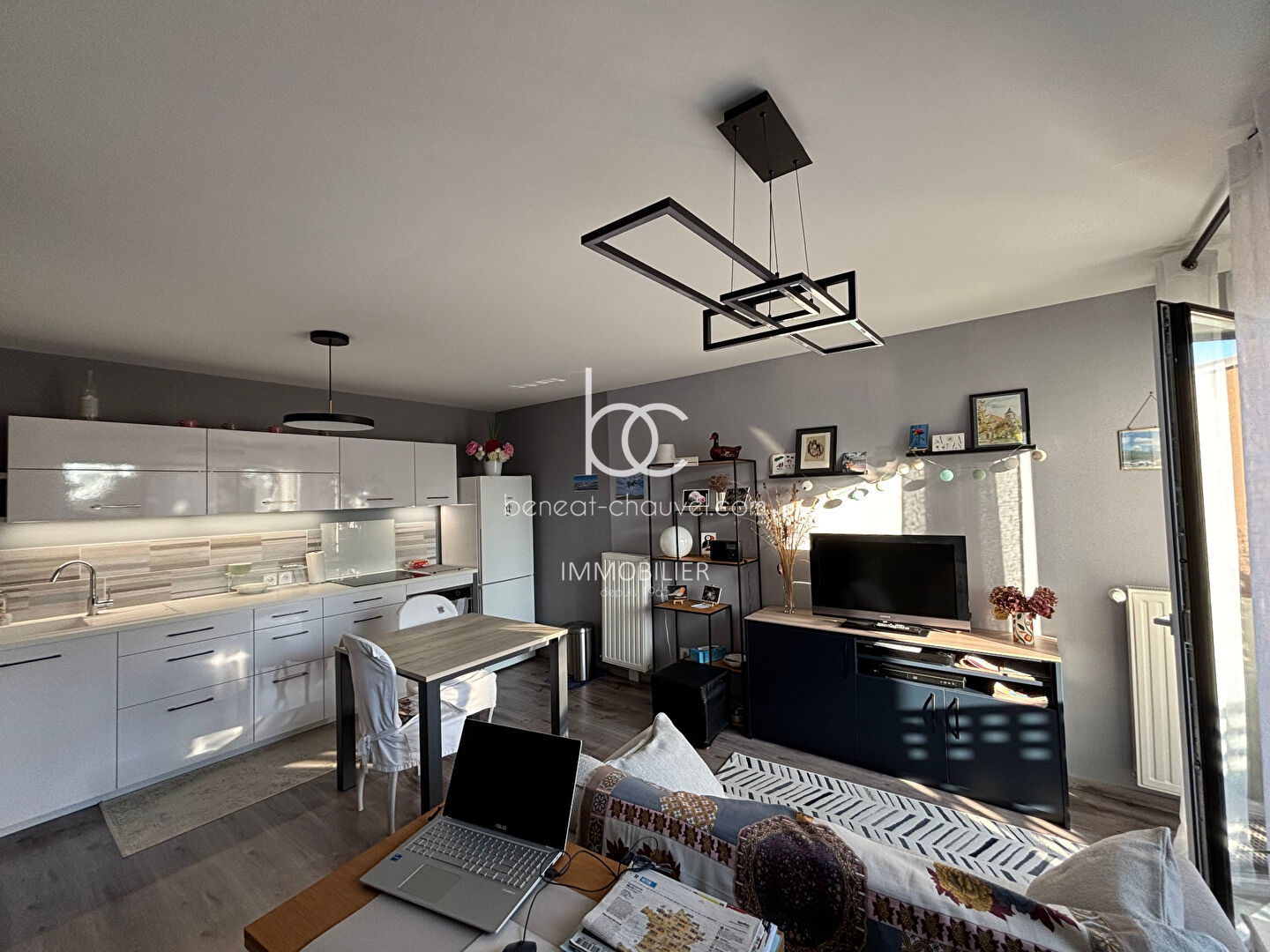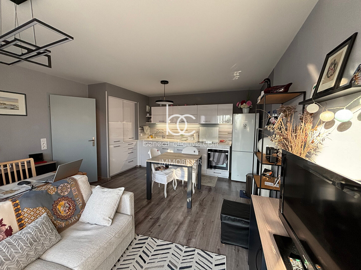 Situé dans le quartier de l'Étang aux Ducs à Vannes, ce bel appartement de trois pièces représente une réelle opportunité sur le marché immobilier local. Proposé en exclusivité par l'agence Bénéat-Chauvel, ce bien de 64,24 m² se situe au troisième étage d'une résidence de grand standing sécurisée et parfaitement entretenue avec ascenseur. Son emplacement stratégique, à mi-chemin entre l'effervescence du centre-ville historique et la praticité de la gare TGV, en fait un lieu de vie idéal pour les citadins en quête de confort et de sérénité au quotidien. Dès l'entrée, un hall accueillant distribue avec intelligence les différents espaces de l'appartement. La pièce de vie principale, baignée de lumière, s'ouvre directement sur une agréable terrasse privative. Cet espace extérieur constitue un véritable prolongement du salon, parfait pour profiter des journées ensoleillées. La pièce de vie intègre une cuisine moderne entièrement aménagée et équipée. Côté nuit, l'appartement dispose de deux chambres spacieuses de plus de 13 m² chacune, offrant des volumes généreux rarement égalés dans cette catégorie de bien. Une salle de bains soignée et un toilette indépendant complètent cet ensemble aux finitions irréprochables. Le confort de ce bien est accentué par ses prestations annexes, notamment un grand emplacement de parking en sous-sol d'une longueur de plus de sept mètres. Cette surface généreuse offre la possibilité technique d'être fermée en garage sécurisé (box), apportant une valeur ajoutée considérable pour le stationnement ou le stockage. Entre ses volumes optimisés, sa terrasse et sa situation géographique privilégiée, cet appartement "Coup de Coeur" est une invitation à poser ses valises sans aucun travaux à prévoir. Prix FAI : 425 000 euros dont 4.94 % honoraires TTC à la charge de l'acquéreur.